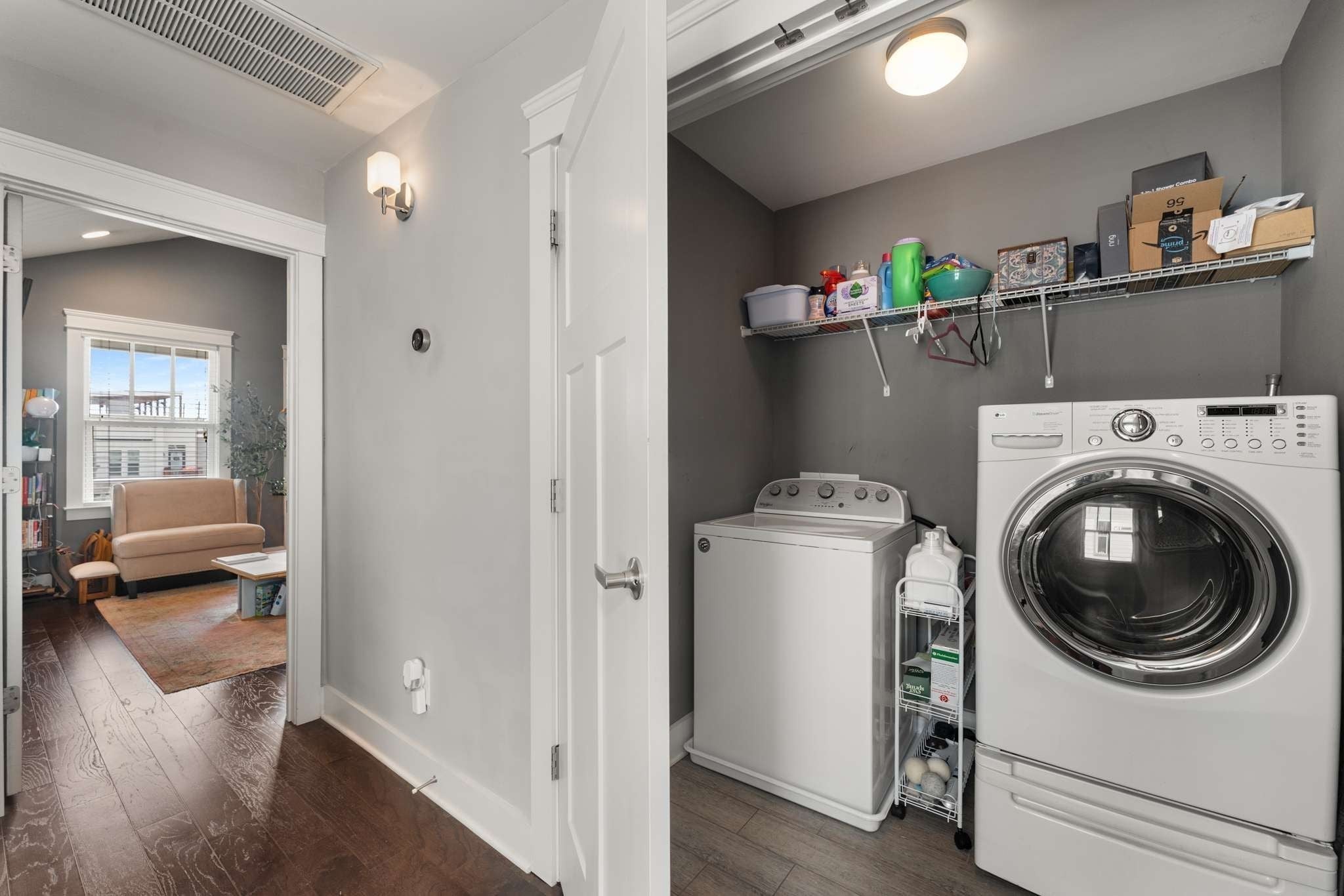 - Gas Range, Dishwasher, Disposal, Dryer, Microwave, Refrigerator, Stainless Steel Appliance(s), Washer