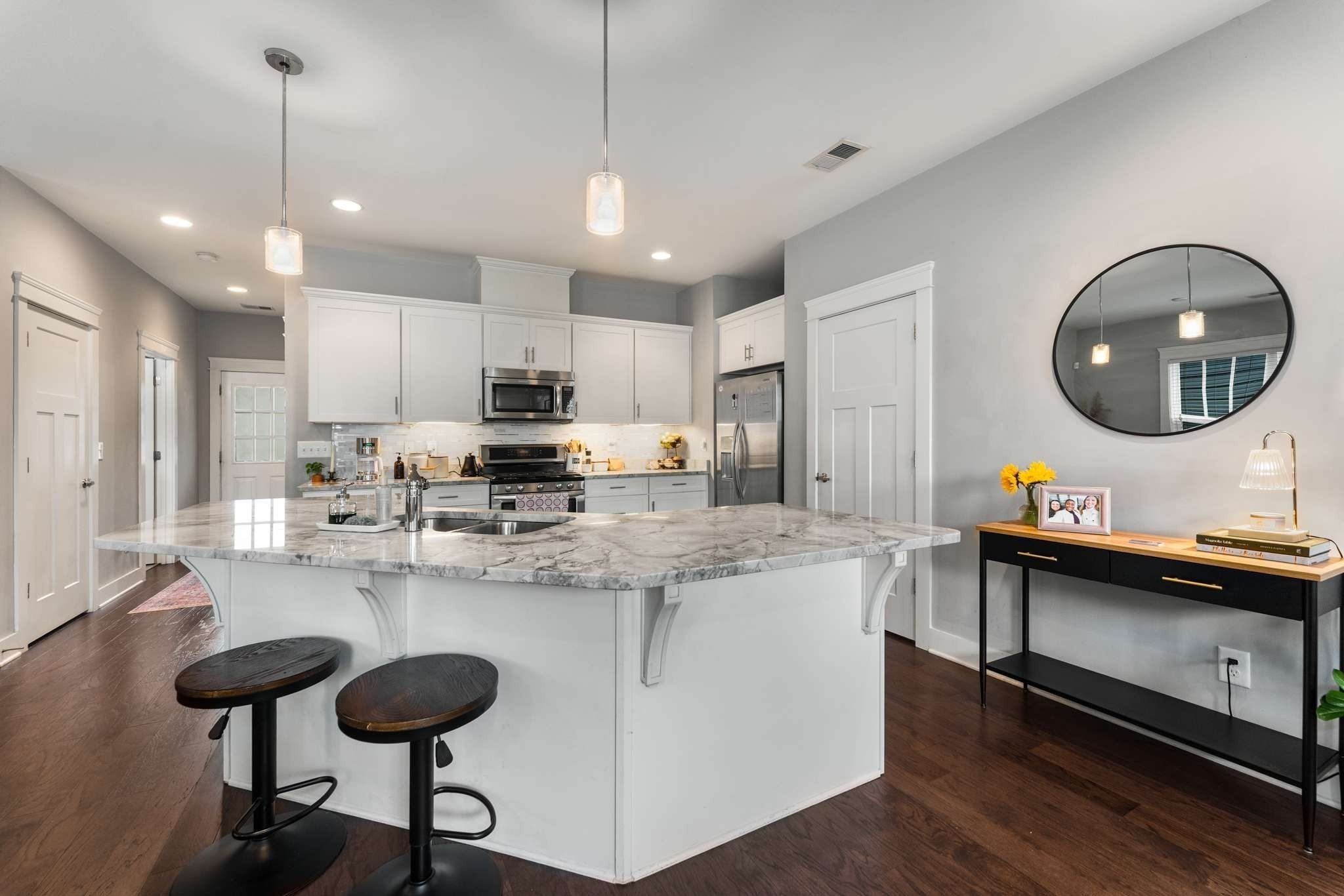 Surpringly quiet & Quick access to major interstates making commuting a breeze. For investors, A New PRICE! Salemtown Cottages – Walkable Urban Living.. A thoughtfully designed community where charming single-family homes surround a serene central courtyard. This inviting cottage offers the perfect blend of modern upgrades and timeless character — all just minutes from downtown Nashville. An open-concept layout features hardwood floors throughout and stylish tile in all bathrooms. The kitchen shines with granite countertops, a custom tile backsplash, under-cabinet lighting, a pantry, & a new faucet, making it both functional and beautiful. Enjoy vaulted and 9' ceilings, generous walk-in closets, a coat closet, attic and under-stair storage. Multiple outdoor spaces: two cozy front porches to soak in the peaceful nbhd vibe and a private back porch for relaxing or entertaining. The expansive primary suite is a true retreat measuring 12 x 20 and boasting: Vaulted ceiling, 2 walk-in closets, Private sitting area and access to a private balcony. Stunning en-suite bath with an oversized shower, garden tub, and dual vanities. The upstairs balcony enjoys downtown views — perfect for morning coffee or evening sunsets. Additional highlights: A guest bedroom on main level (9x12) an en-suite secondary bedroom on the second level with a vaulted ceiling (10x13). Surround sound wiring (downstairs), Ring security system, New dishwasher & dryer. Unbeatable location — walk to Germantown restaurants, the Sounds Stadium, Bicentennial Mall, and downtown Nashville. Oracle’s expansion across the river from Germantown is set to be a major catalyst for the local real estate market. With thousands of new jobs projected, housing demand will surge, driving property values and rental rates upward over the coming years. Buy now for a great investment.