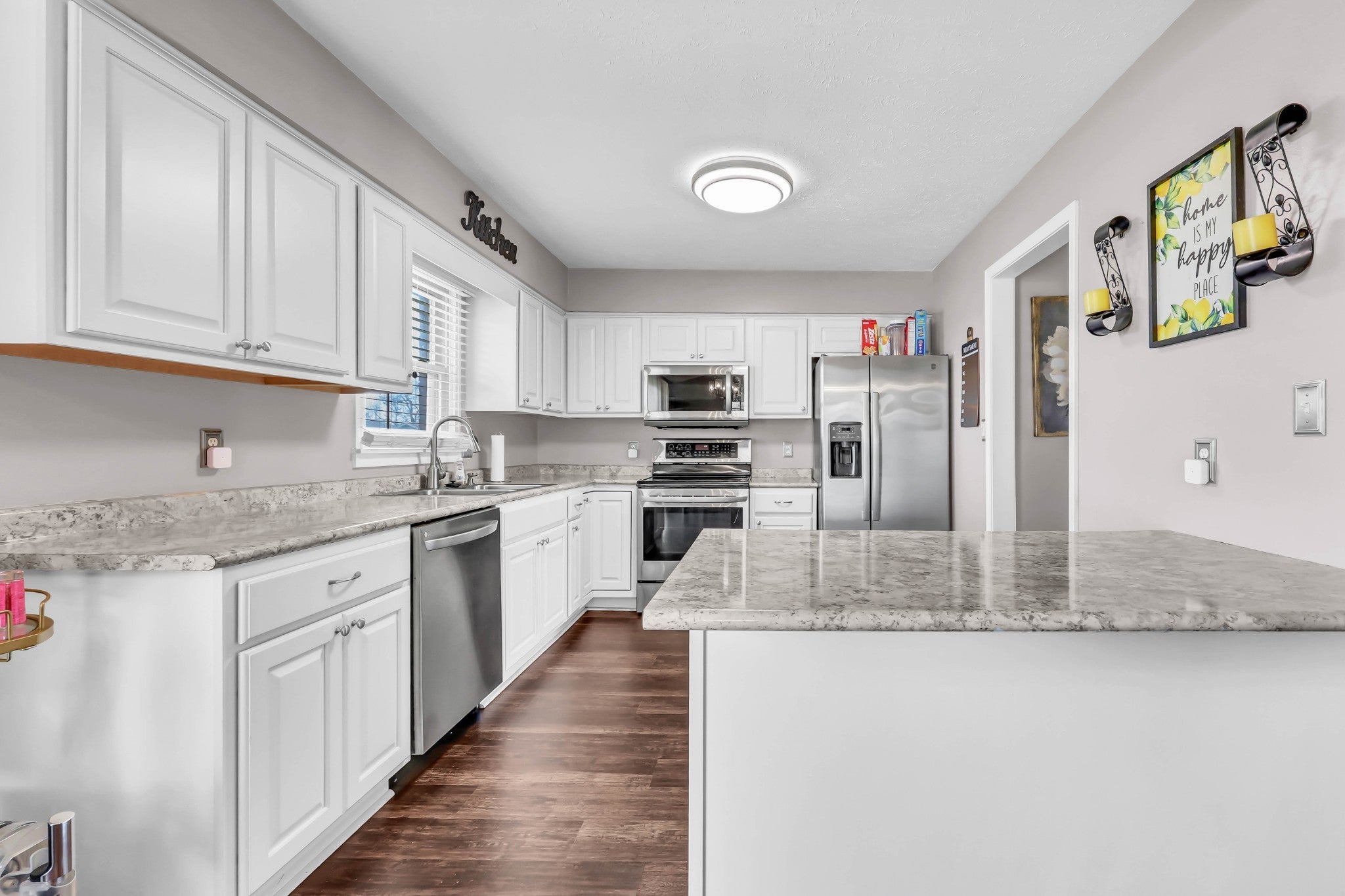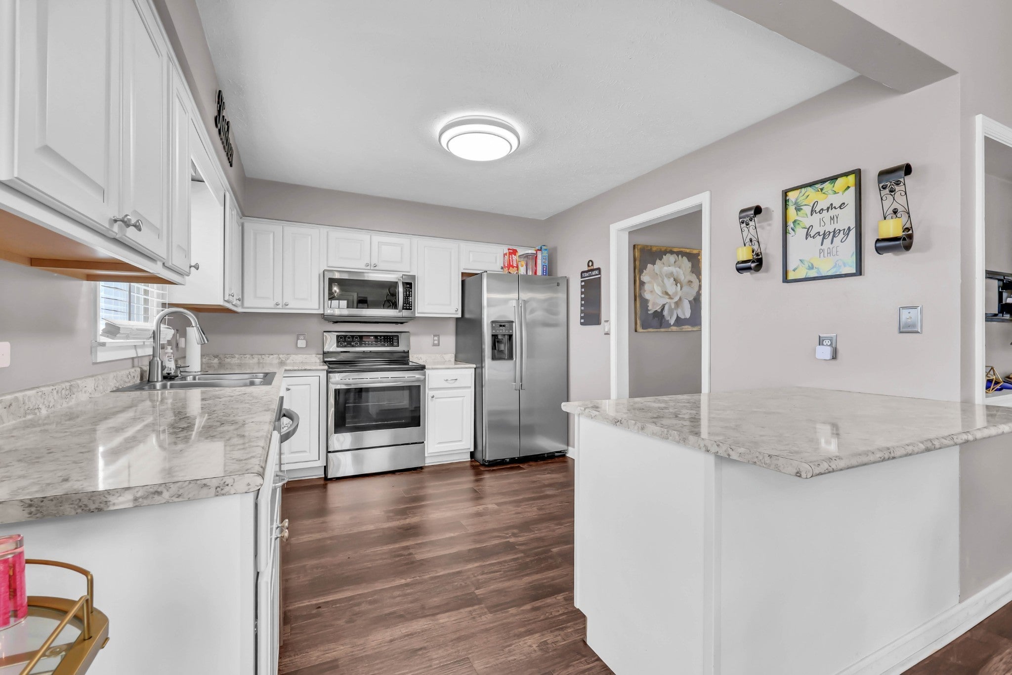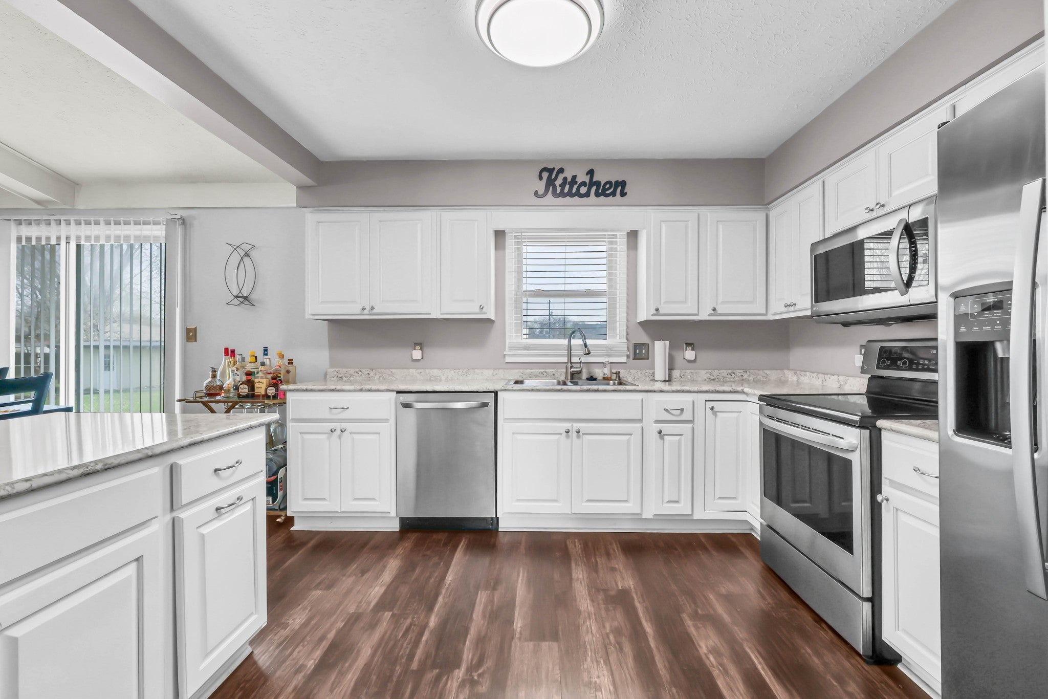 - Electric Range, Dishwasher, Microwave, Refrigerator