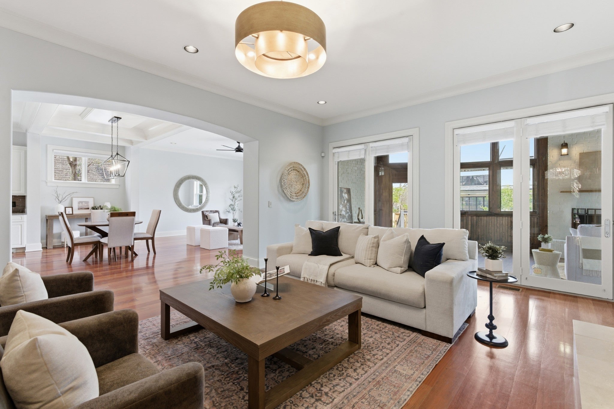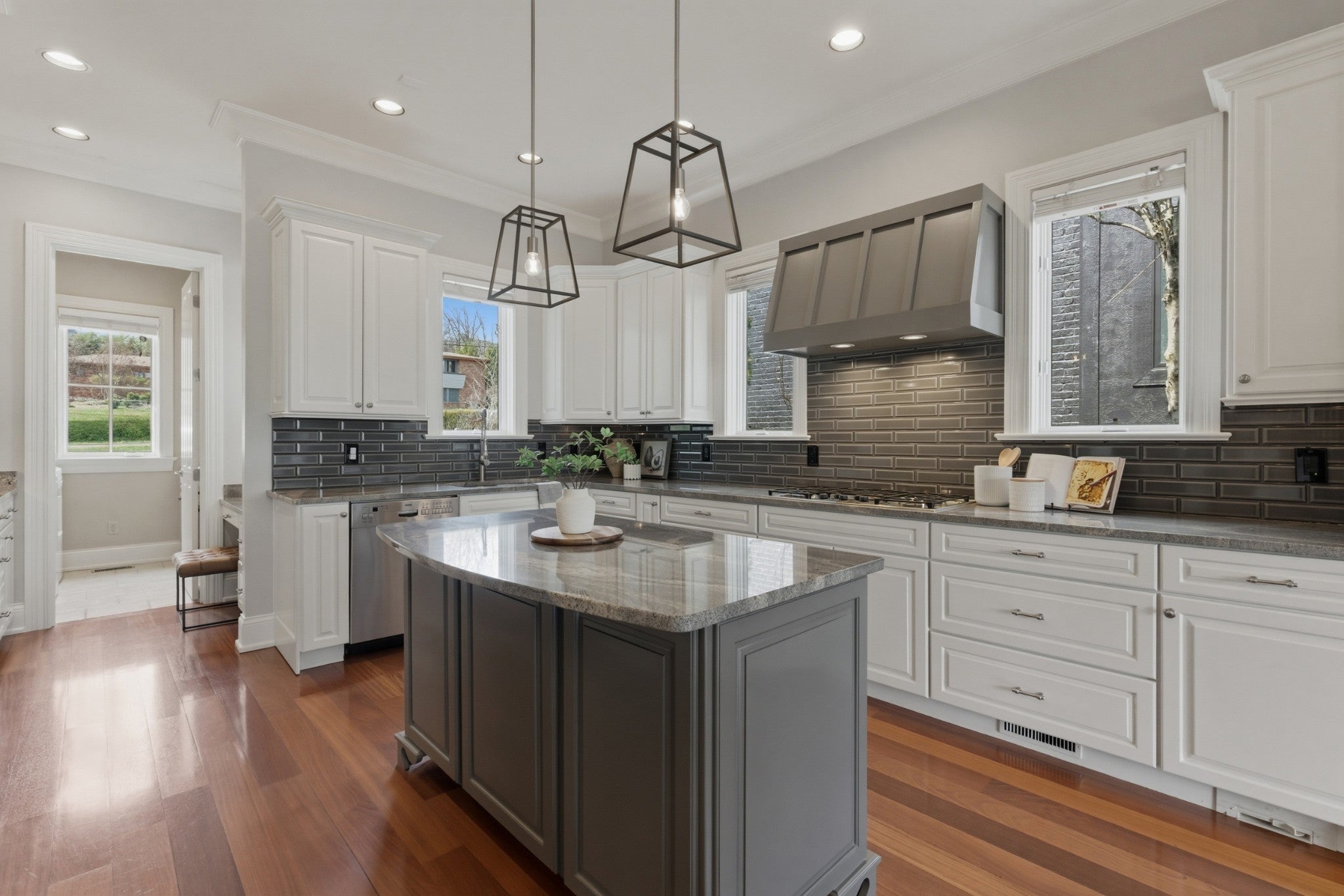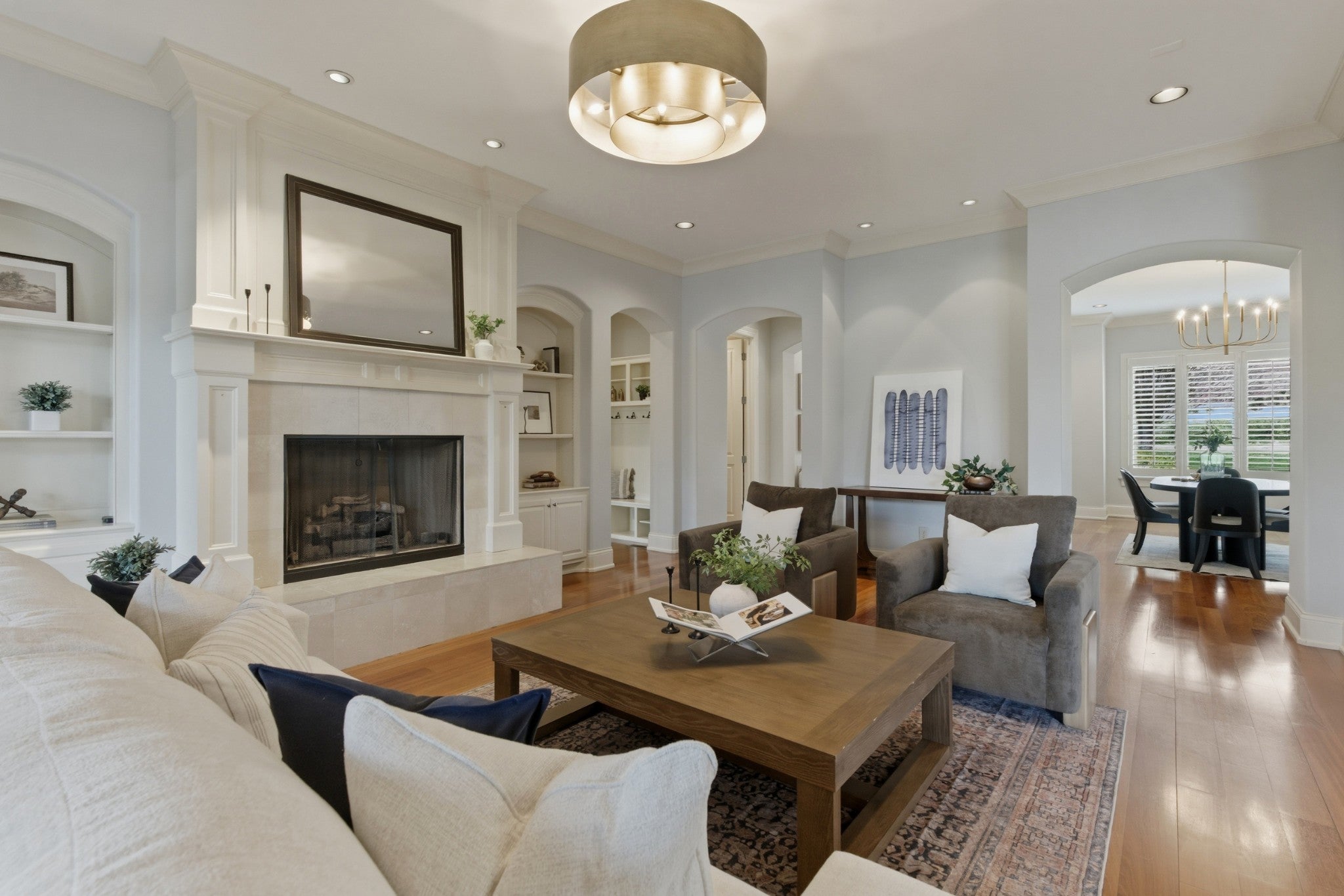 This special home sits on a quiet, non-cut-through street in Nashville and is perfectly laid out for both family living and entertaining. The open floorplan feels spacious, anchored by gorgeous Brazilian hardwood floors on the main level. The kitchen renovated in 2022. This home offers storage galore: a butler’s pantry, a walk-in pantry, two laundry rooms, and a massive conditioned walk-in attic. An enclosed Florida room/porch with a large fireplace and Pella windows and doors provides the perfect bonus space, while an upstairs bonus room with built-ins and skylights floods the area with natural light. Recent updates make this home truly move-in ready with freshly painted exterior in Sherwin-Williams Alabaster (main body) and Peppercorn (accents and trim), new carpet upstairs, roof and skylights replaced four years ago, three HVAC units (main level four years old, upstairs nine years old, and mini-split four years old), two hot water heaters approximately three and four years old, a whole-house central vacuum, full irrigation system, landscape lighting, and a low-maintenance Trex composite deck. It also features Sentricon termite protection maintained by Cook’s Pest Control, plus tons of shelving and built-ins in the garage and two additional storage units located between the homes. Built like Fort Knox by the late master builder Rogan Allen, this home features solid-core doors, thick walls, and custom details you simply won’t find in today’s new construction.