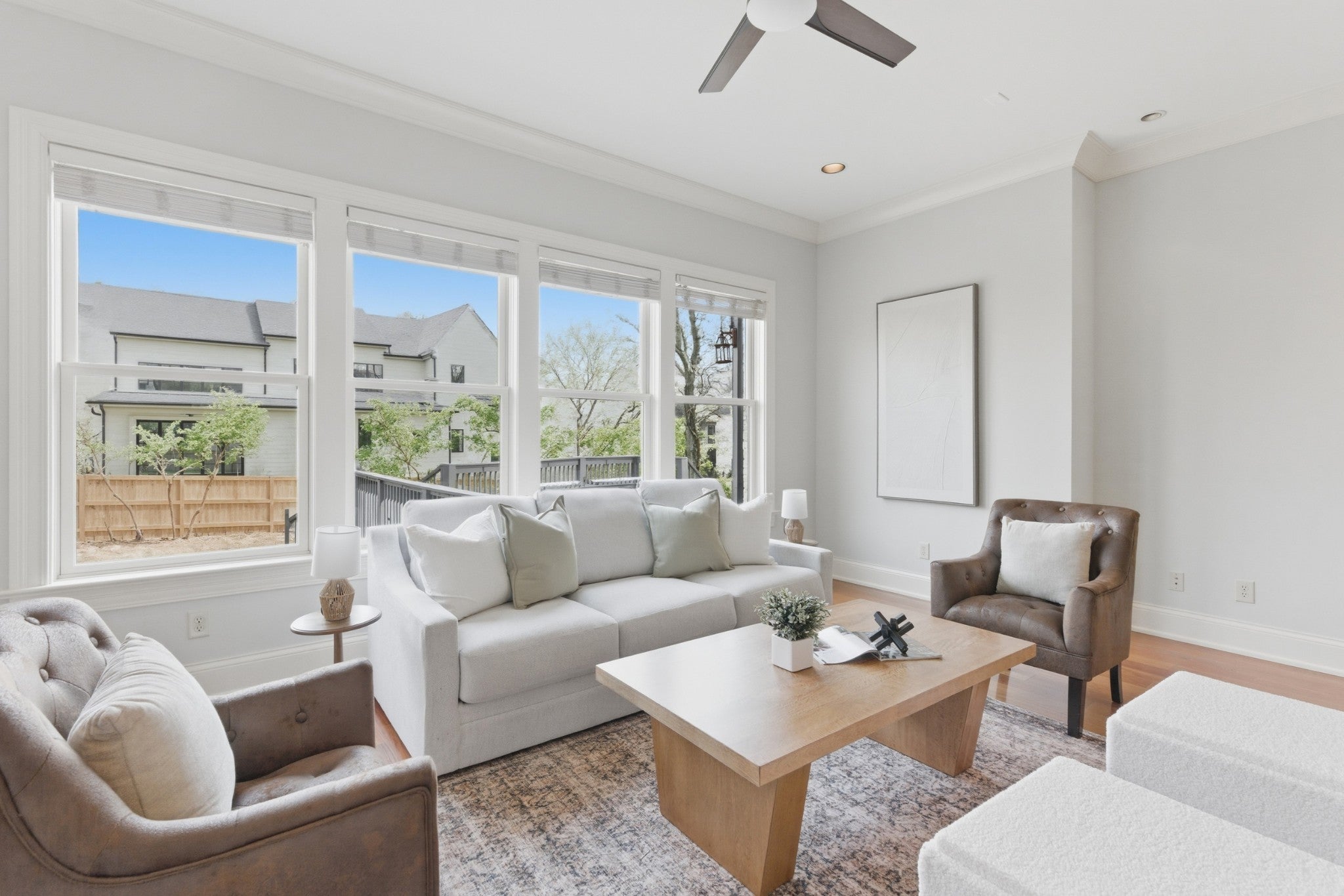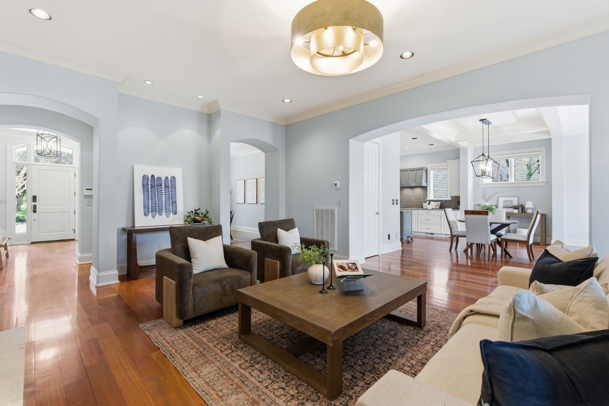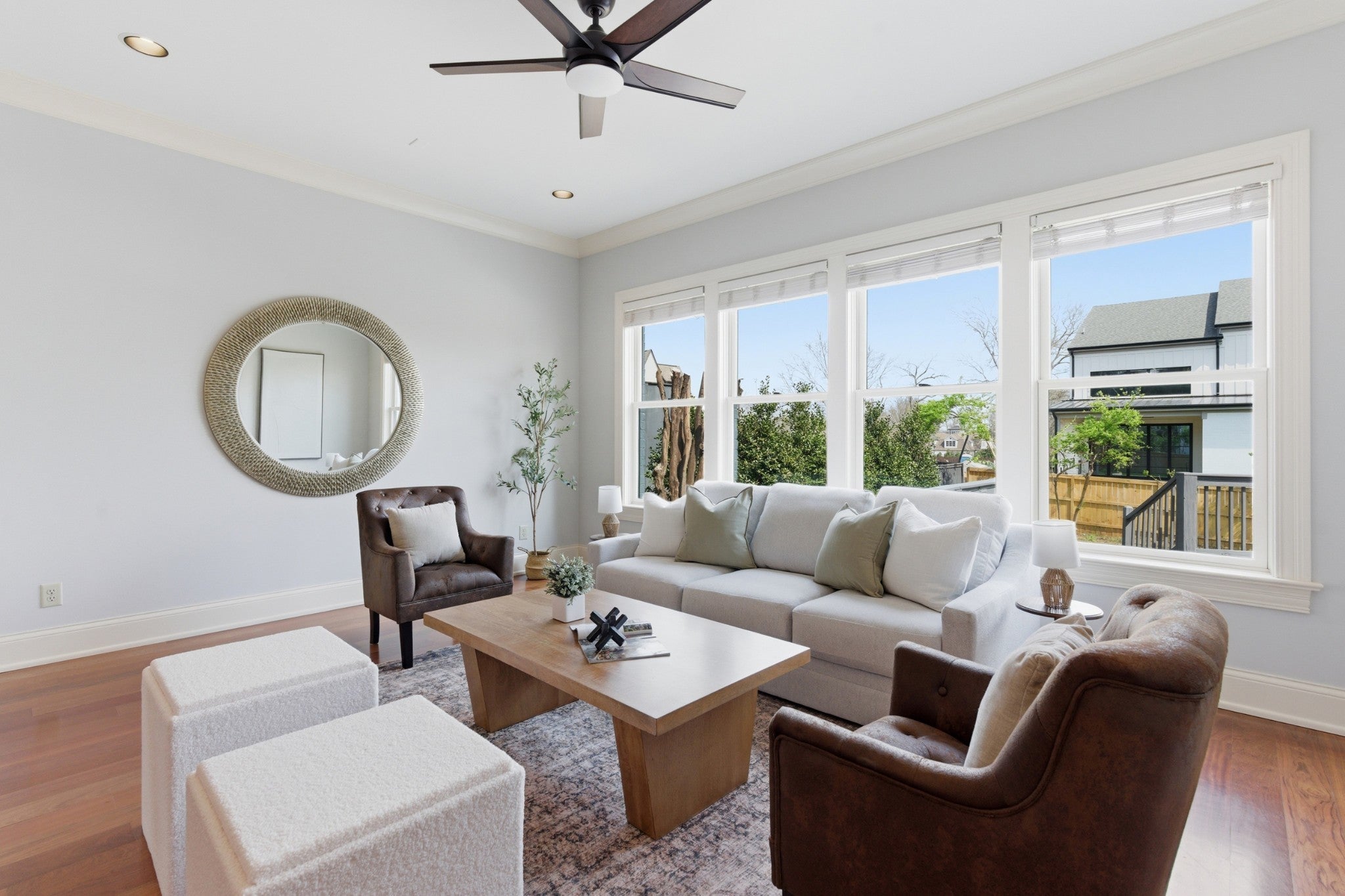 This special home sits on a quiet, non-cut-through street in Nashville and is perfectly laid out for both family living and entertaining. The open floorplan feels spacious, anchored by gorgeous Brazilian hardwood floors on the main level. The kitchen renovated in 2022. This home offers storage galore: a butler’s pantry, a walk-in pantry, two laundry rooms, and a massive conditioned walk-in attic. An enclosed Florida room/porch with a large fireplace and Pella windows and doors provides the perfect bonus space, while an upstairs bonus room with built-ins and skylights floods the area with natural light. Recent updates make this home truly move-in ready with freshly painted exterior in Sherwin-Williams Alabaster (main body) and Peppercorn (accents and trim), new carpet upstairs, roof and skylights replaced four years ago, three HVAC units (main level four years old, upstairs nine years old, and mini-split four years old), two hot water heaters approximately three and four years old, a whole-house central vacuum, full irrigation system, landscape lighting, and a low-maintenance Trex composite deck. It also features Sentricon termite protection maintained by Cook’s Pest Control, plus tons of shelving and built-ins in the garage and two additional storage units located between the homes. Built like Fort Knox by the late master builder Rogan Allen, this home features solid-core doors, thick walls, and custom details you simply won’t find in today’s new construction.