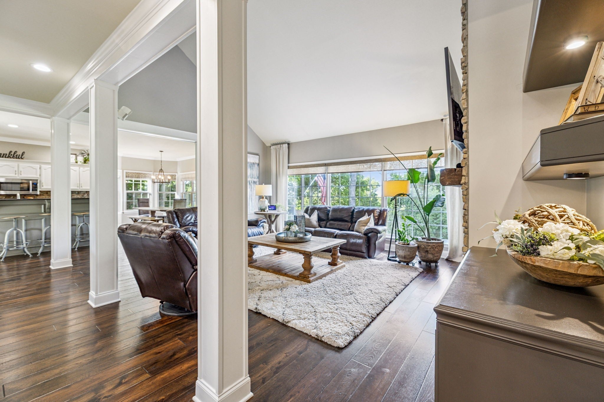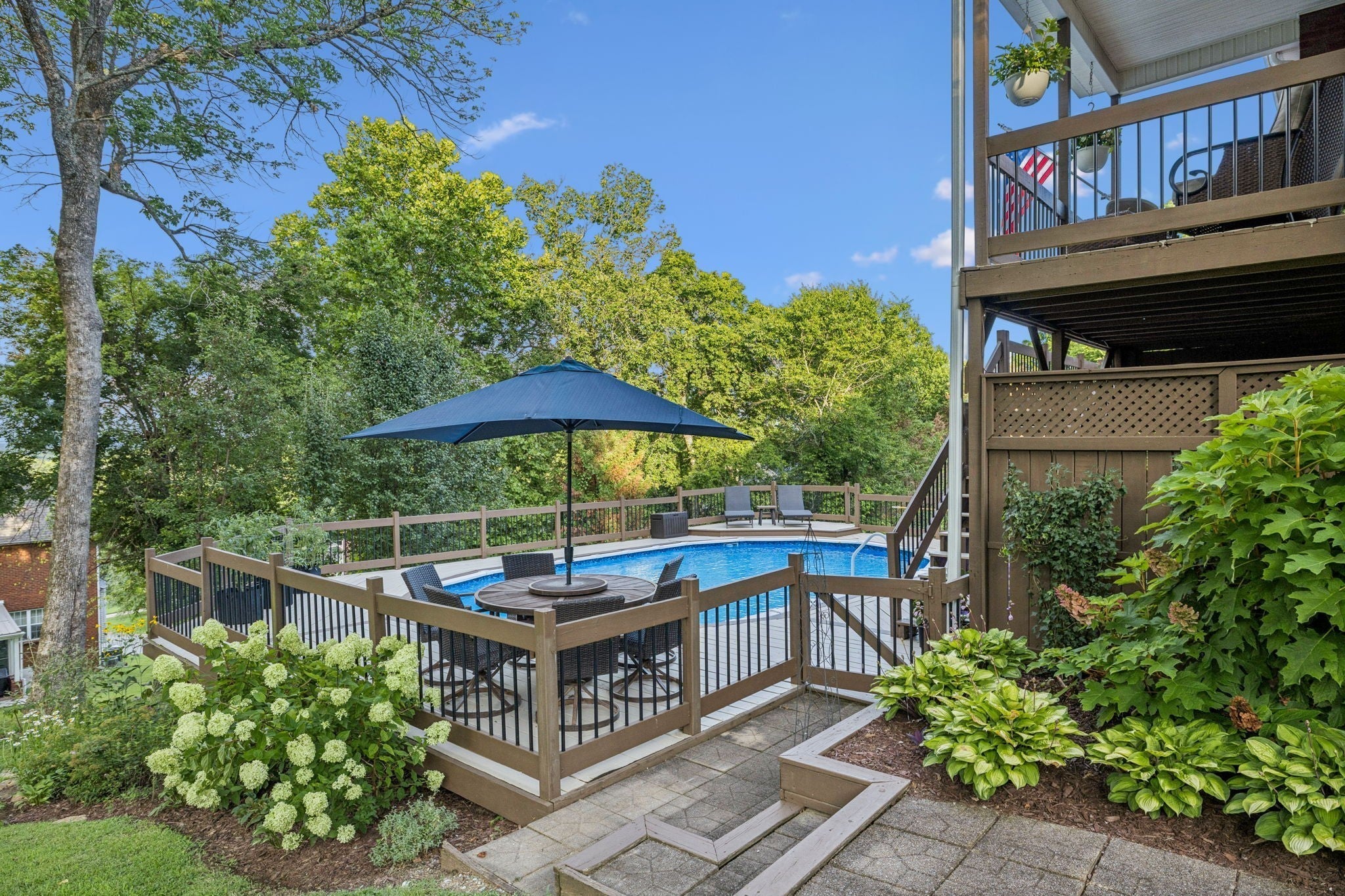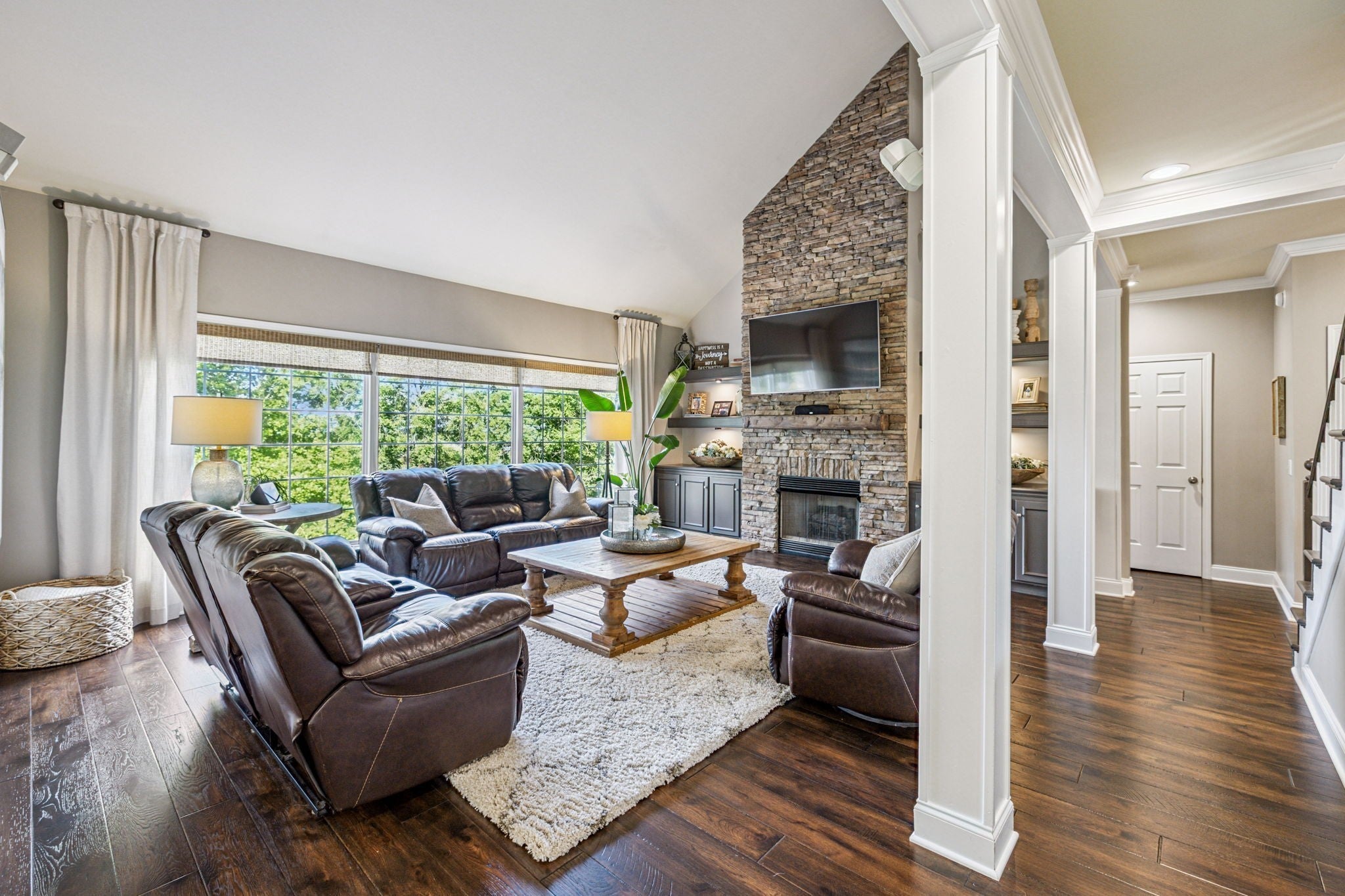 Stunning! This updated 4 BR, 2.5 BA home with bonus room offers comfort, style and is immaculate. Step inside a welcoming foyer and formal dining room, both featuring elegant hardwood floors and a striking light fixture. The spacious den is highlighted by a soaring stone fireplace, built-in bookcases, and offers amazing views of the backyard oasis. The updated kitchen boasts crisp white cabinetry, gleaming granite countertops, and top-of-the-line appliances, including a gas range/oven, microwave, dishwasher, and refrigerator, all complemented by a convenient pantry with custom shelving. A unique second front entrance features a built-in storage cubby leading to a utility room with a modern table and wood shelving. A serene first floor primary suite featuring his closet and her large custom walk-in closet, an updated bath with dual vanities, new granite countertops and tile flooring, walk-in shower and a standalone soaking tub. Upstairs, two generous guest bedrooms connected by a convenient Jack and Jill bath, plus a third guest bedroom and a versatile bonus room. The walk-out basement is exceptionally clean, offering over 966 square feet of additional living space, ready to be customized. Includes an oversized two-car heated garage, a comfortable sitting area, and a dedicated tool and equipment room. Step outside to your private paradise! The backyard features a covered porch, a grilling area, and a viewing deck overlooking an 18x33 foot swimming pool with additional space pre-wired for a hot tub. The expansive pool deck provides ample space for lounging and entertainment offering breathtaking views. This beautifully landscaped home is situated on a quiet cul-de-sac, has a concrete driveway with a convenient turnaround area. Enjoy easy access to all modern amenities and I-24, 22 minutes to downtown Nashville, 28 minutes to BNA airport, minutes to the new Tanger Outlet Mall, restaurants and healthcare making this home a secluded haven