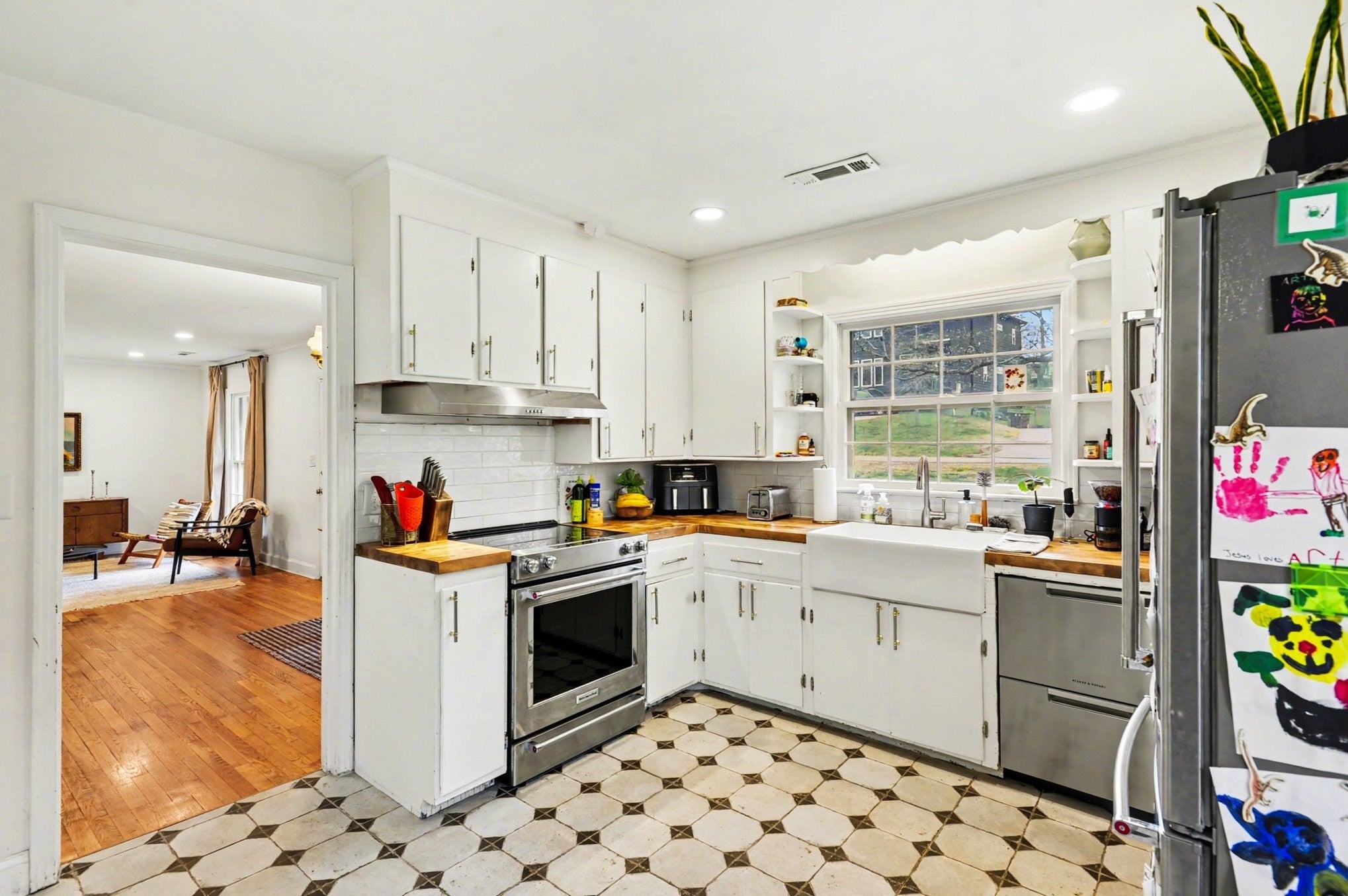 Welcome to 2703 Meadow Rose Drive—where timeless 1950s charm meets thoughtful, modern updates in the heart of highly sought-after Rosebank. This beautifully updated 3-bedroom, 2-bath home offers 1,926 square feet of versatile living space, perfectly designed for both everyday comfort and effortless entertaining. The main level features two bedrooms and a full bath, along with refinished original hardwood floors that preserve the home’s character while complementing its fresh, modern feel. Upstairs, the converted attic creates an expansive third bedroom or bonus retreat, complete with its own mini split system—ideal for a private suite, creative space, or flex room to fit your needs. The fully finished walk-out basement adds incredible functionality, featuring a second full bathroom, laundry area with oversized washer and dryer, and additional living space that opens to a screened-in porch—perfect for relaxing evenings or hosting friends. A dedicated workshop/storage area and attached one-car garage add even more practicality. Set on a rare and spacious ½-acre lot, the backyard offers a peaceful, natural setting with a running creek at the rear of the property—creating a serene escape just minutes from the city. Nearly every major system has been updated in 2024, including a new roof, full HVAC system plus mini split, updated electrical and plumbing, new kitchen and bathroom tile, and all new appliances—offering true peace of mind while still honoring the home’s original charm, even down to the nostalgic telephone shelf in the hallway. Located on a quiet street in a welcoming neighborhood and zoned for coveted Rosebank Elementary, this home is also walkable to some of East Nashville’s favorite local spots including Café Roze, Schulman’s, Vinyl Tap, Dreamburger, Tabla Rasa Toys, and Soft Serve. A rare opportunity to enjoy character, convenience, and modern living—all in one of Nashville’s most loved communities.