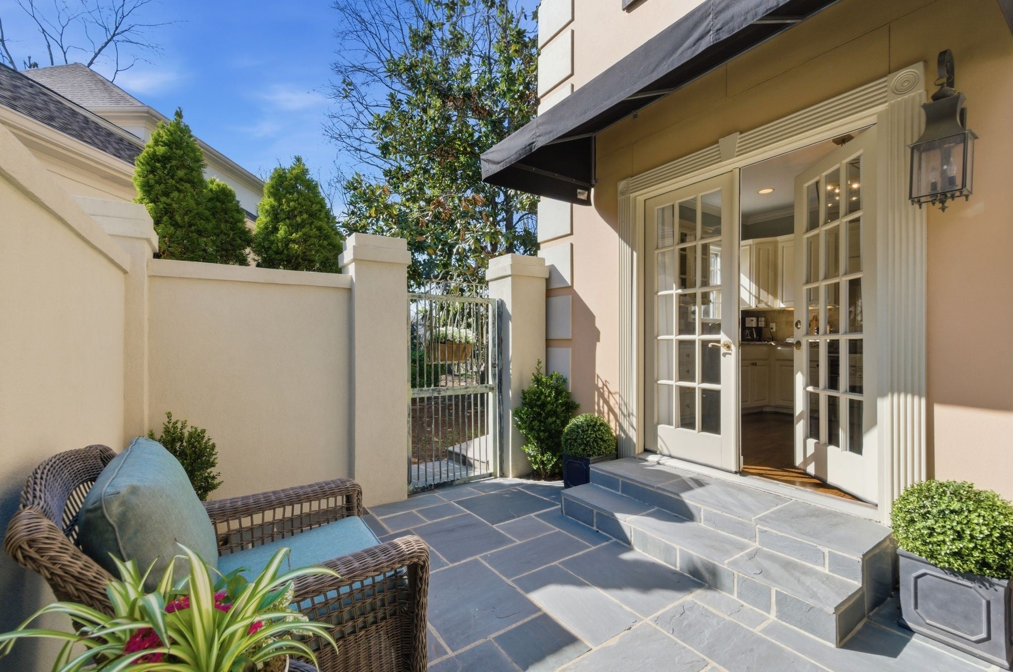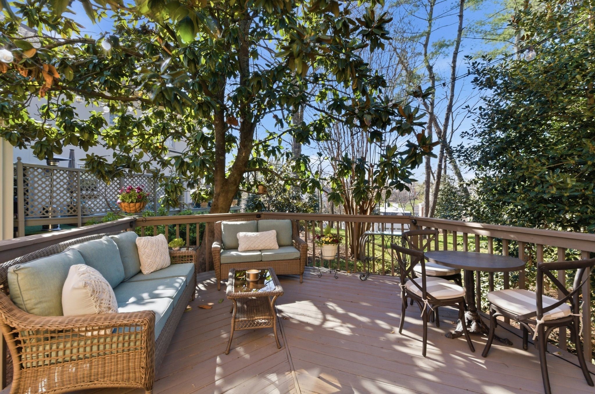 An opportunity to live in Green Hills in the exclusive Sugartree community. This thoughtfully updated and elegant townhome is located on the back gate of Sugartree and enjoys all the amenities the community offers. The exterior is true stucco with blue slate stone and beautiful perennial gardens with professionally designed plantings. Features of the house include 9 ft ceilings with hardwood floors, built in's and wood burning fireplace. Upstairs 3 BR, 2 1/2 Baths. All bathrooms are renovated with marble/tile, walk in shower, and soaking tub as well as custom built cabinets. Generous walk in closet space and storage. The Clubhouse has updated entertaining space for large gatherings and 2 guest rooms which may be reserved. The newly resurfaced clay tennis courts, pickleball court and salt water pool are beautifully maintained and ready for the summer months ahead. This is an end lot which has both a walled courtyard with blue slate tile as well as a deck in the back with perfect flow for entertaining and alfresco dining. Easy living in a sophisticated neighborhood with Country Club living.