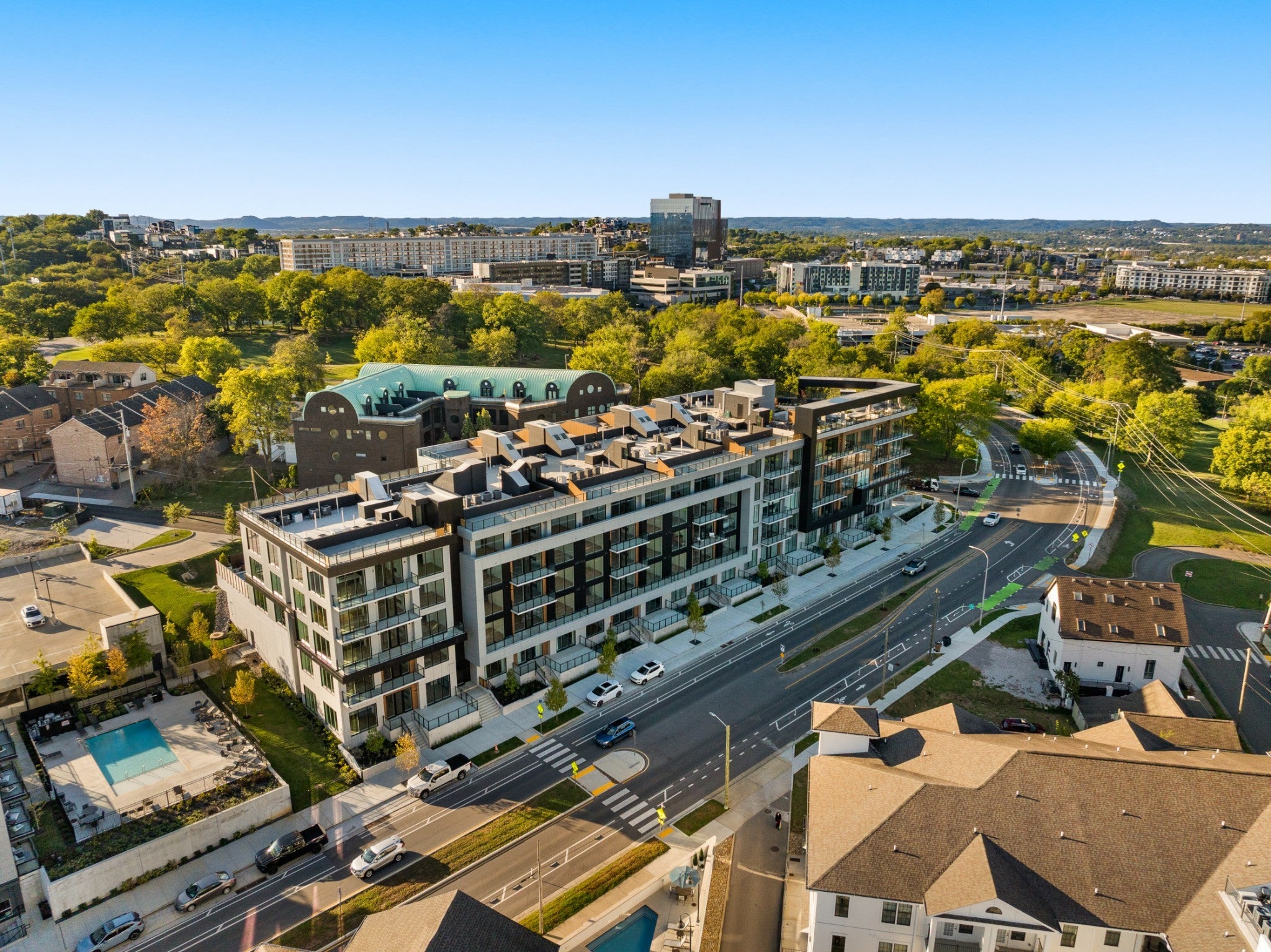 Athena is an exclusive, 51-unit luxury condominium located in a prime Nashville setting off West End Ave, offering breathtaking views of the Parthenon and Centennial Park. Designed with a resident-focused approach, it features thoughtfully curated spaces to encourage connection and entertainment. With premium finishes, 24/7 dedicated on-site staff, a Terrace Lounge, Sky Lounge, and a Rooftop amenity deck—plus private rooftop decks for top-floor units—Athena sets a new benchmark for Nashville luxury living. Additional amenities include a resort-style pool, sauna, fitness center, and comfort stations throughout. This three-bedroom condo spans three levels of the building, with the lower level dedicated to three bedrooms and two full bathrooms. The main floor boasts a spacious, open-concept living, kitchen, and dining area, complete with a fireplace, a large kitchen island with quartz waterfall countertops, a generous walk-in pantry, and a convenient powder bath for guests. The top level features a private rooftop terrace with breathtaking downtown views.