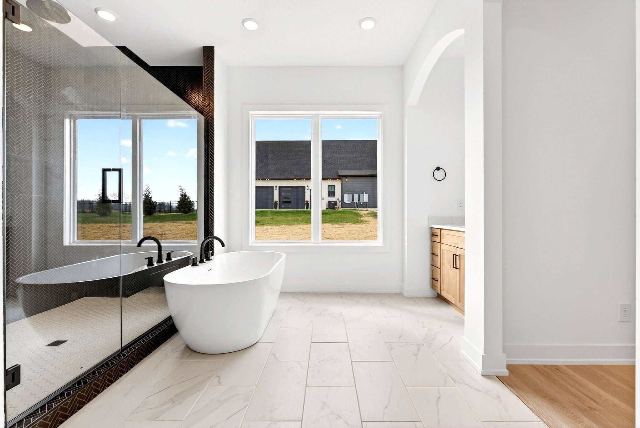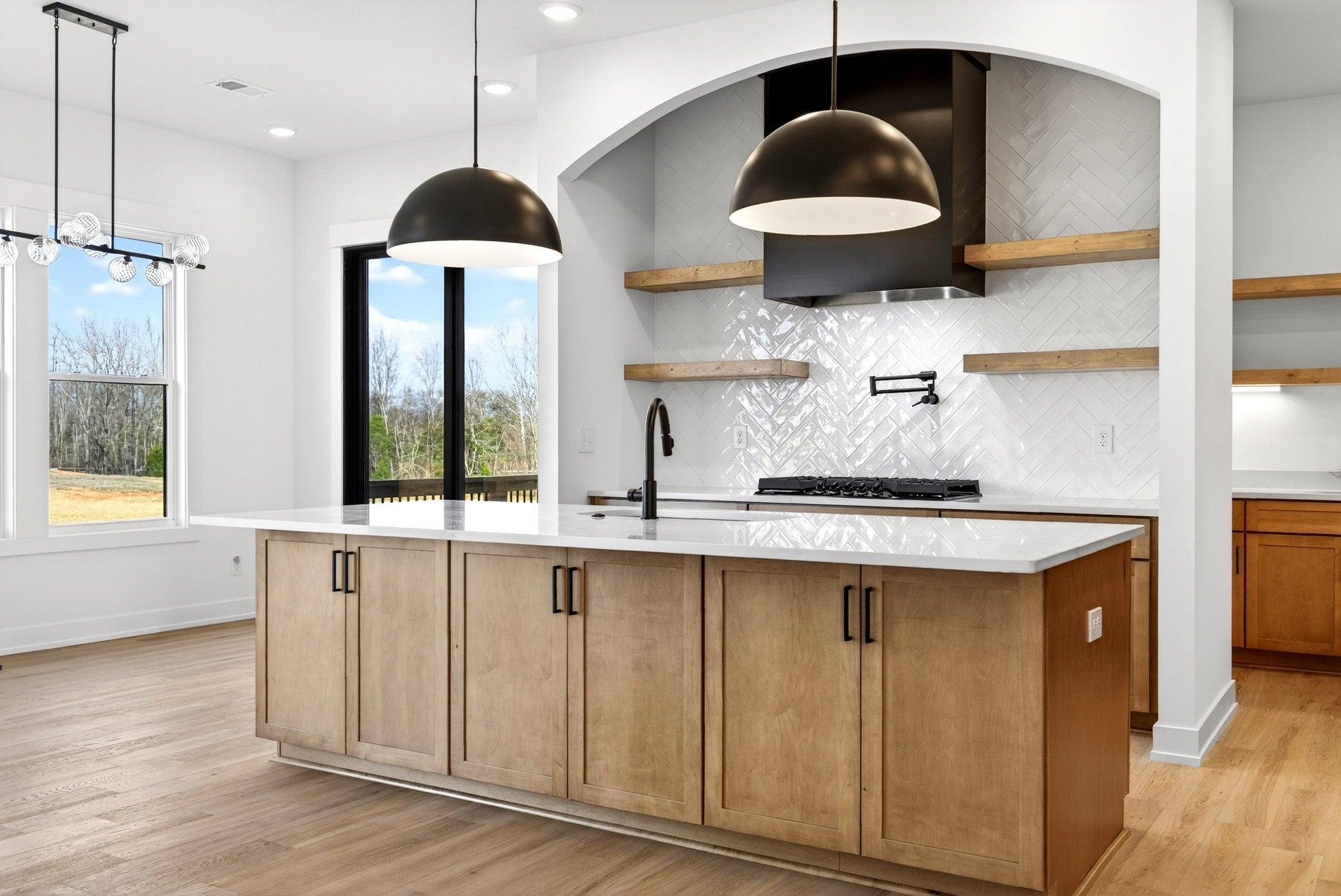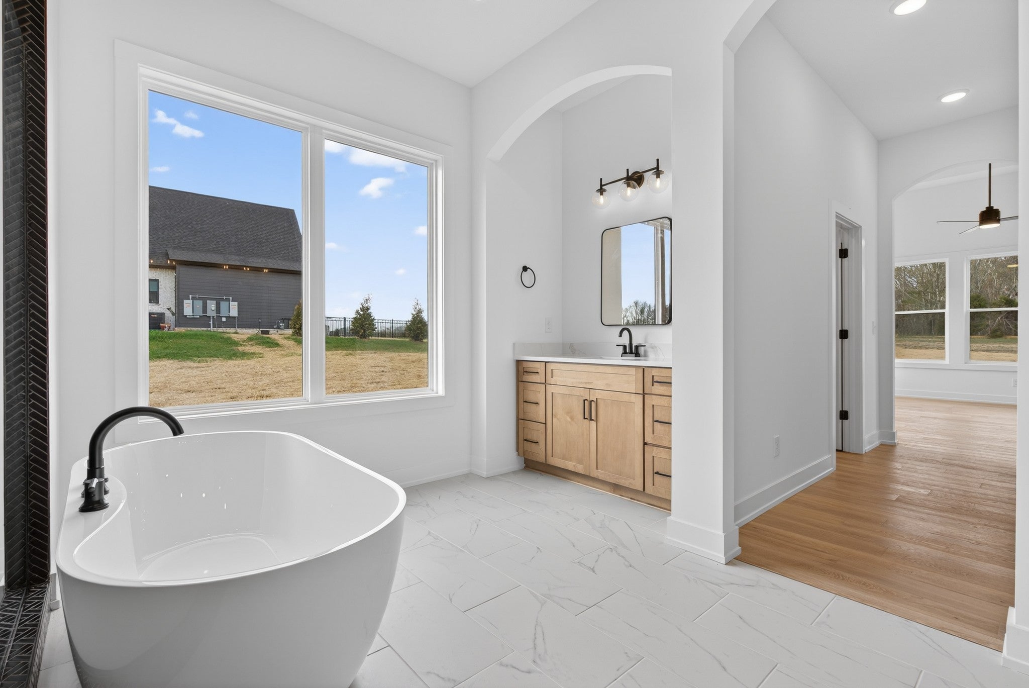 Introducing the Sycamore 2 by Homefront Builders—a perfect blend of luxury and functionality. This stunning home boasts floor-to-ceiling windows in both the living room and kitchen, offering breathtaking views of the tree-lined 1.5-acre lot. The chef-inspired kitchen is complete with a prep kitchen, and a walk in pantry. The main-level primary suite offers dual closets, ensuite with separate vanities, a tile shower, and a relaxing soaking tub. A second bedroom and full bath are also located on the first floor. Upstairs, you'll find a versatile loft space, along with three generously sized bedrooms and two full bathrooms, providing ample room for family and guests. Situated in the highly sought-after Sango area, just minutes from the freeway, easy access to Nashville and Downtown Clarksville. High-end designer finishes throughout include quartz countertops, custom trim, and upgraded cabinetry. And don't forget the expansive 4-car garage perfect for vehicles, storage, or even a home gym. Photos are sample representation only and may vary from final product.