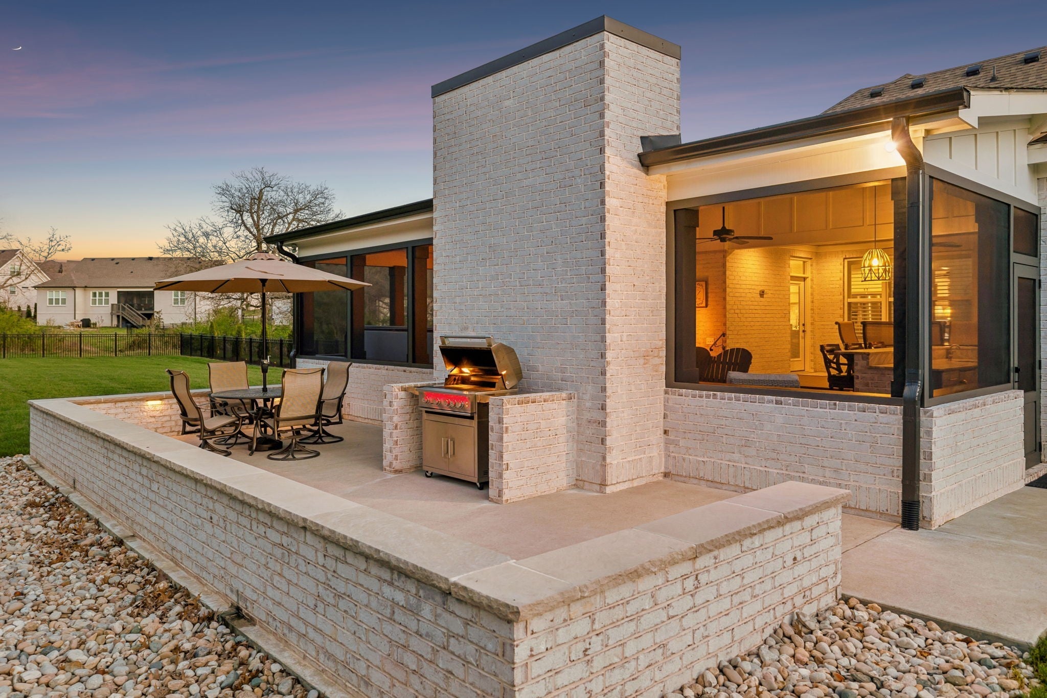 Built in 2023 and meticulously maintained, this home features a well-designed layout and a premium indoor/outdoor living space on a large, flat lot in the Cove at Spring Hill community. The home features an open kitchen, living, and dining area, ideal for both everyday living and entertaining. The kitchen includes custom cabinets, granite countertops, stainless steel appliances, a gas range, and ample storage. A beautiful stone fireplace with gas logs creates an inviting space in the living room. The main level offers three bedrooms, including a spacious primary suite and en suite bath with dual vanities and a large walk-in closet. Upstairs, you’ll find two additional bedrooms and a large bonus room, providing flexible space for a variety of needs. A standout feature of the home is the outdoor living space—a covered and screened-in porch complete with a fireplace, built-in bar for serving food and drinks, hot tub, and dining area. Just beyond this is an outdoor patio and grilling area, surrounded by the fenced backyard. The home includes a three-car garage and is conveniently located off of Saturn Parkway in Spring Hill. Come take a tour today!