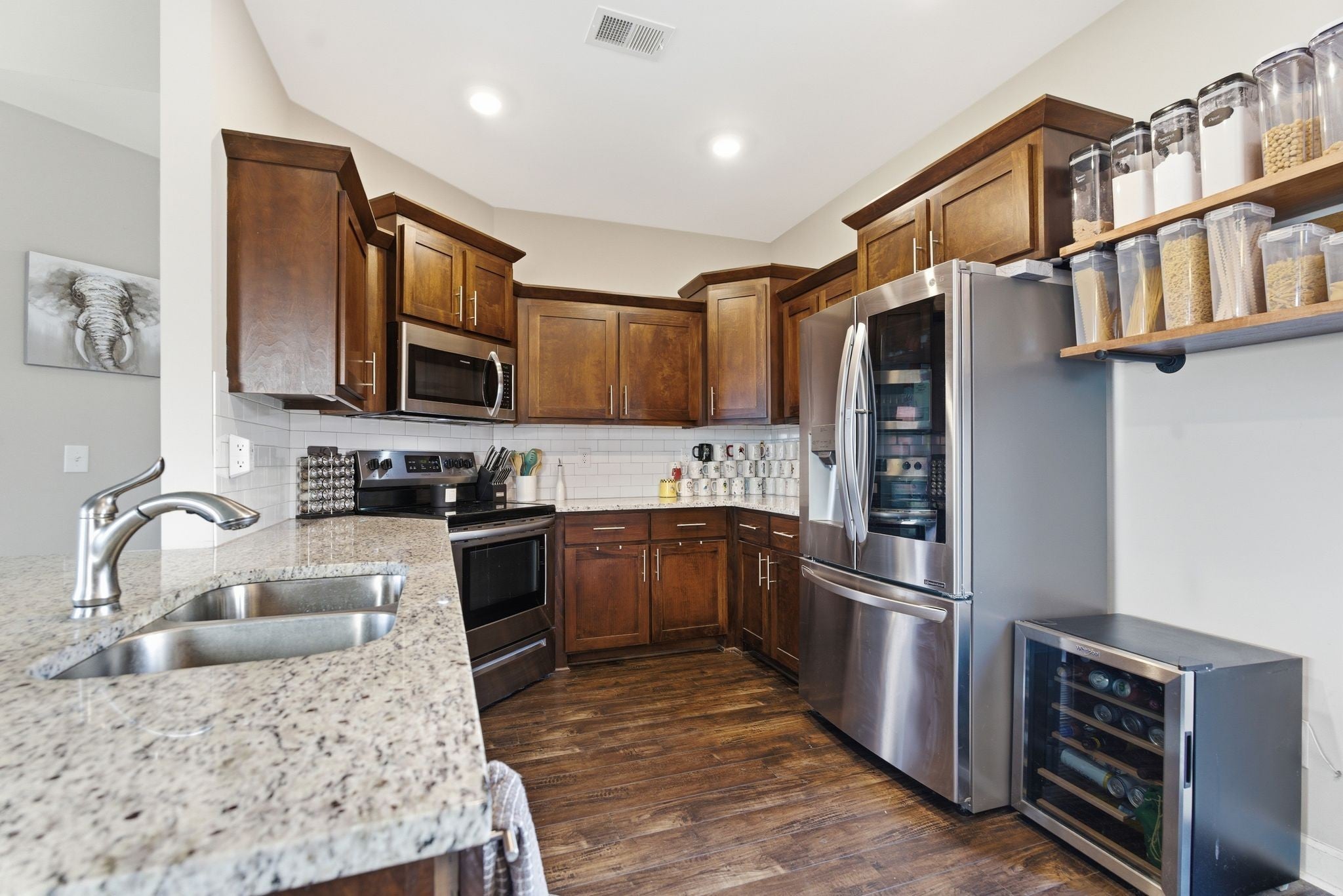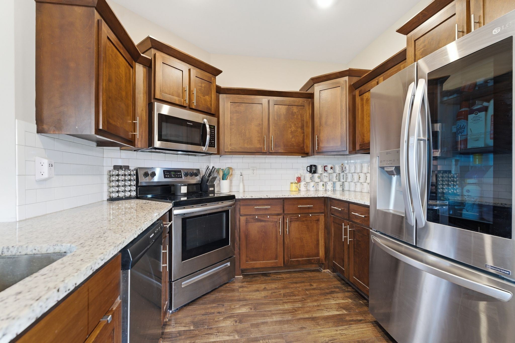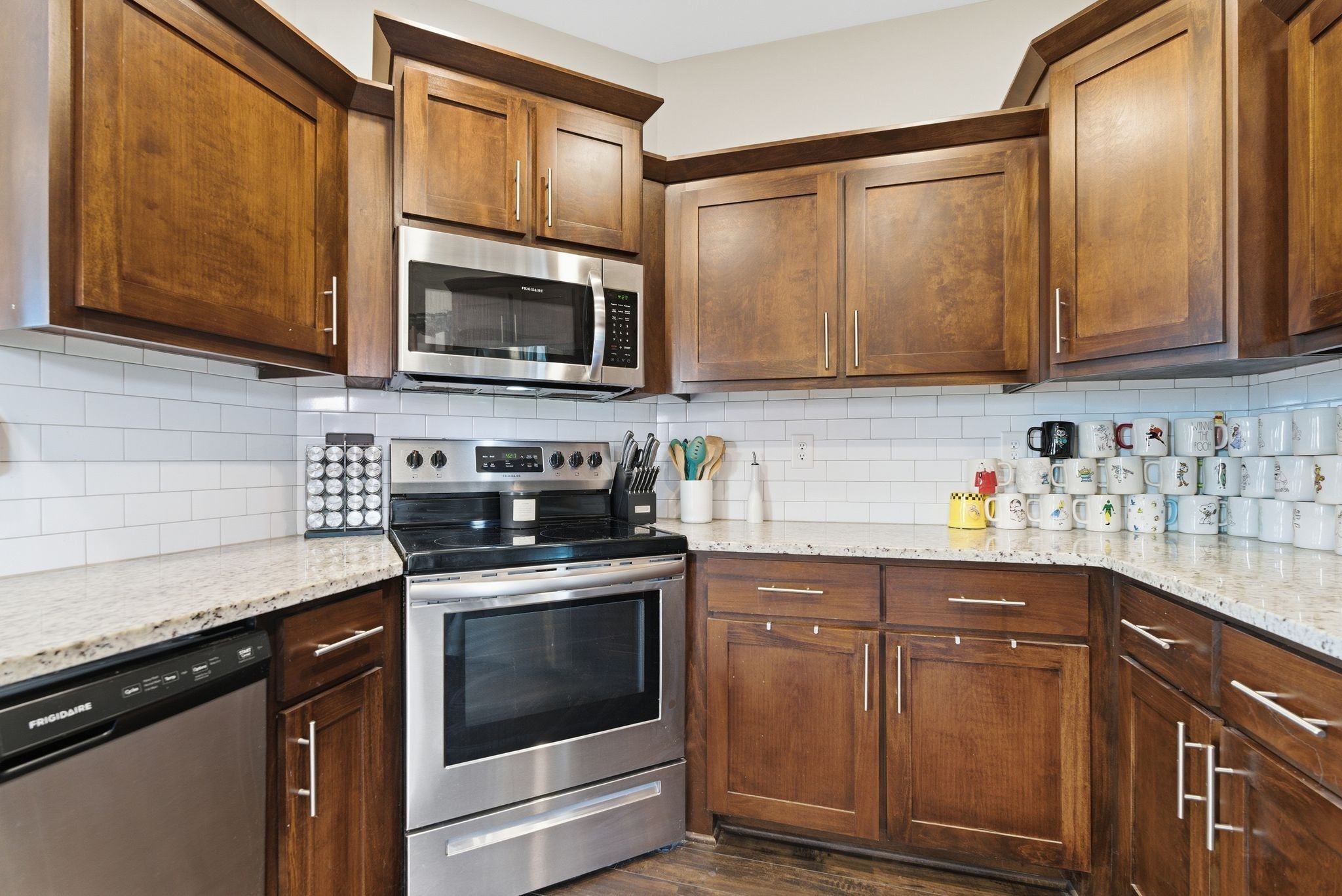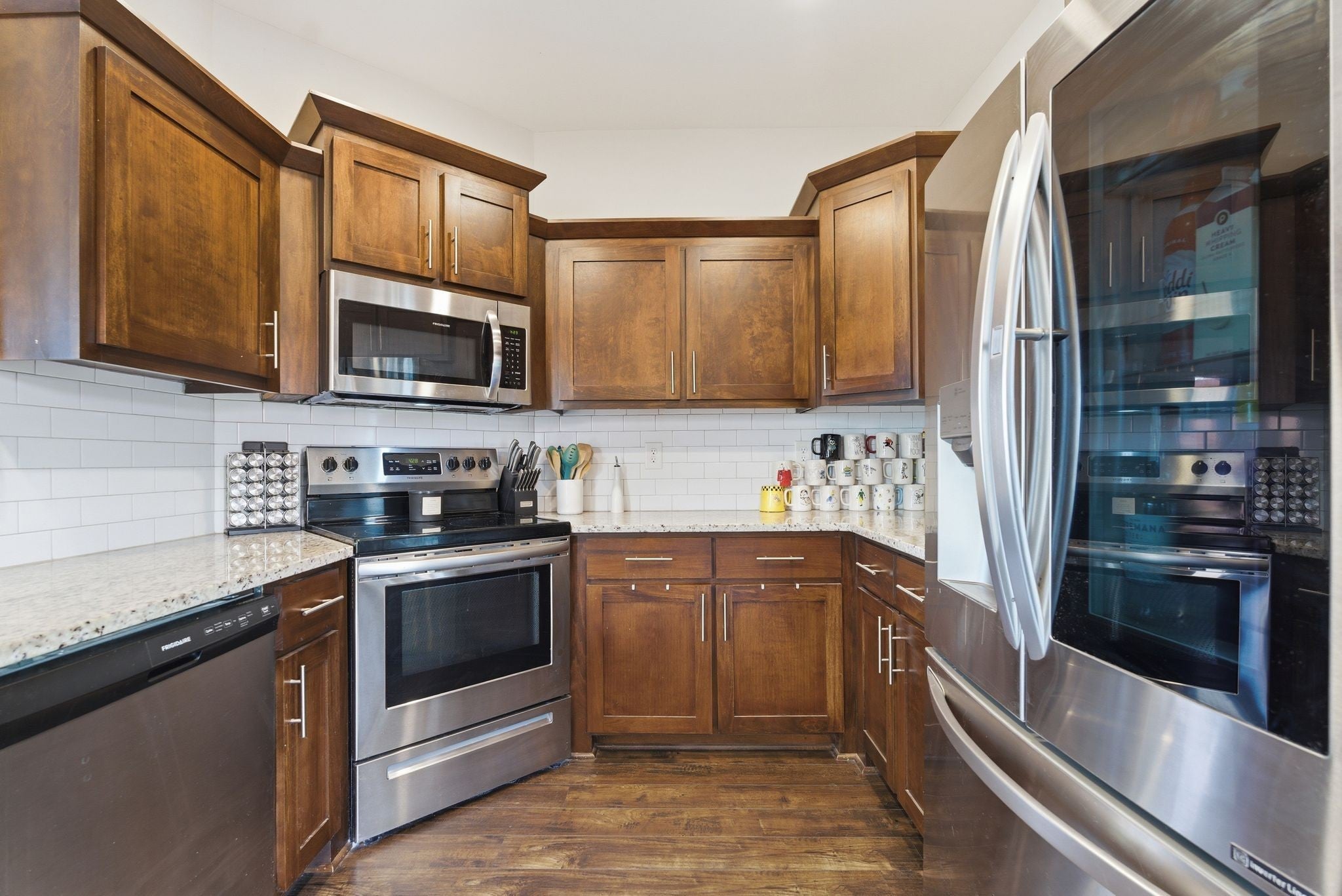 - Electric Oven, Electric Range, Dishwasher, Disposal, Dryer, Microwave, Refrigerator, Stainless Steel Appliance(s), Washer