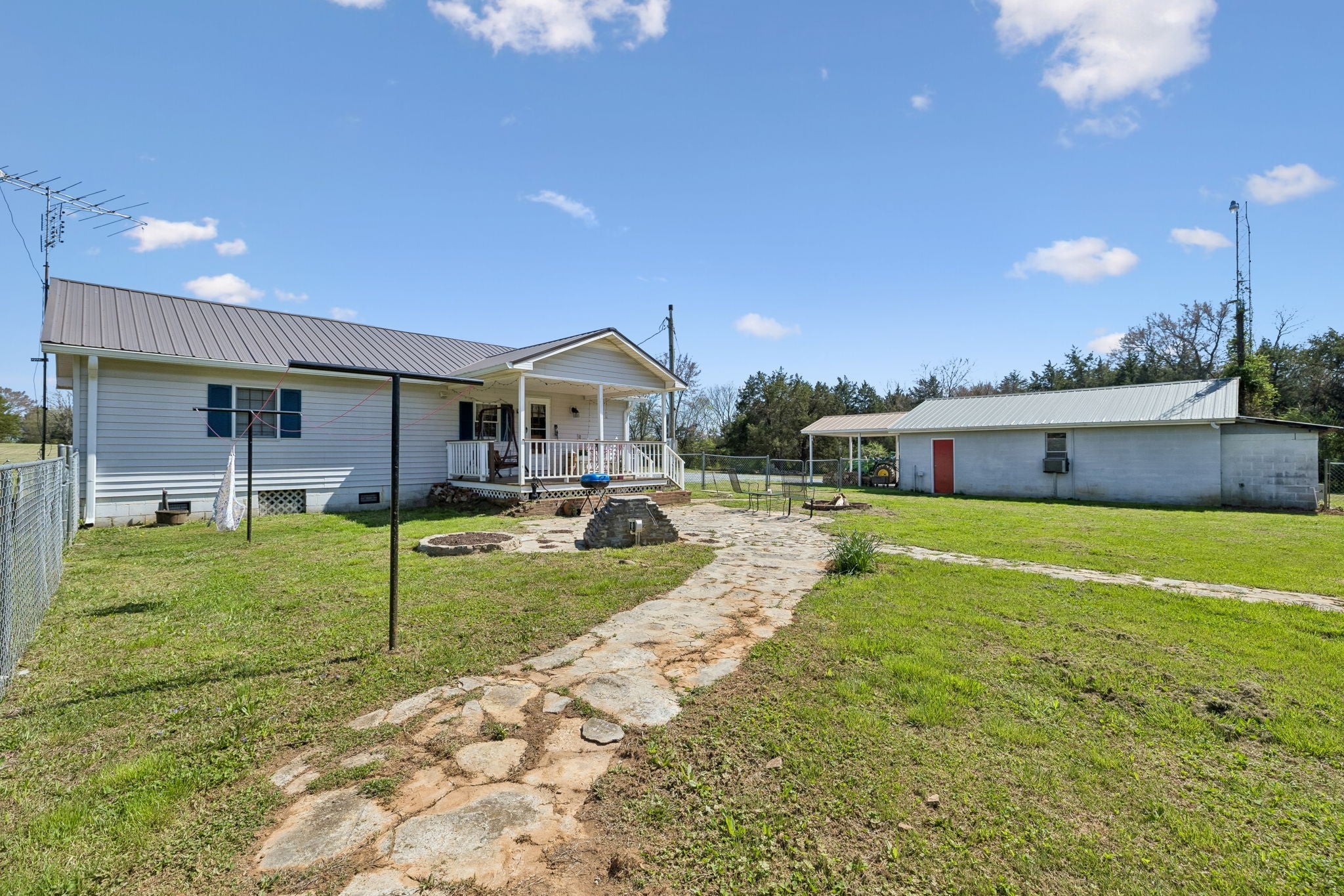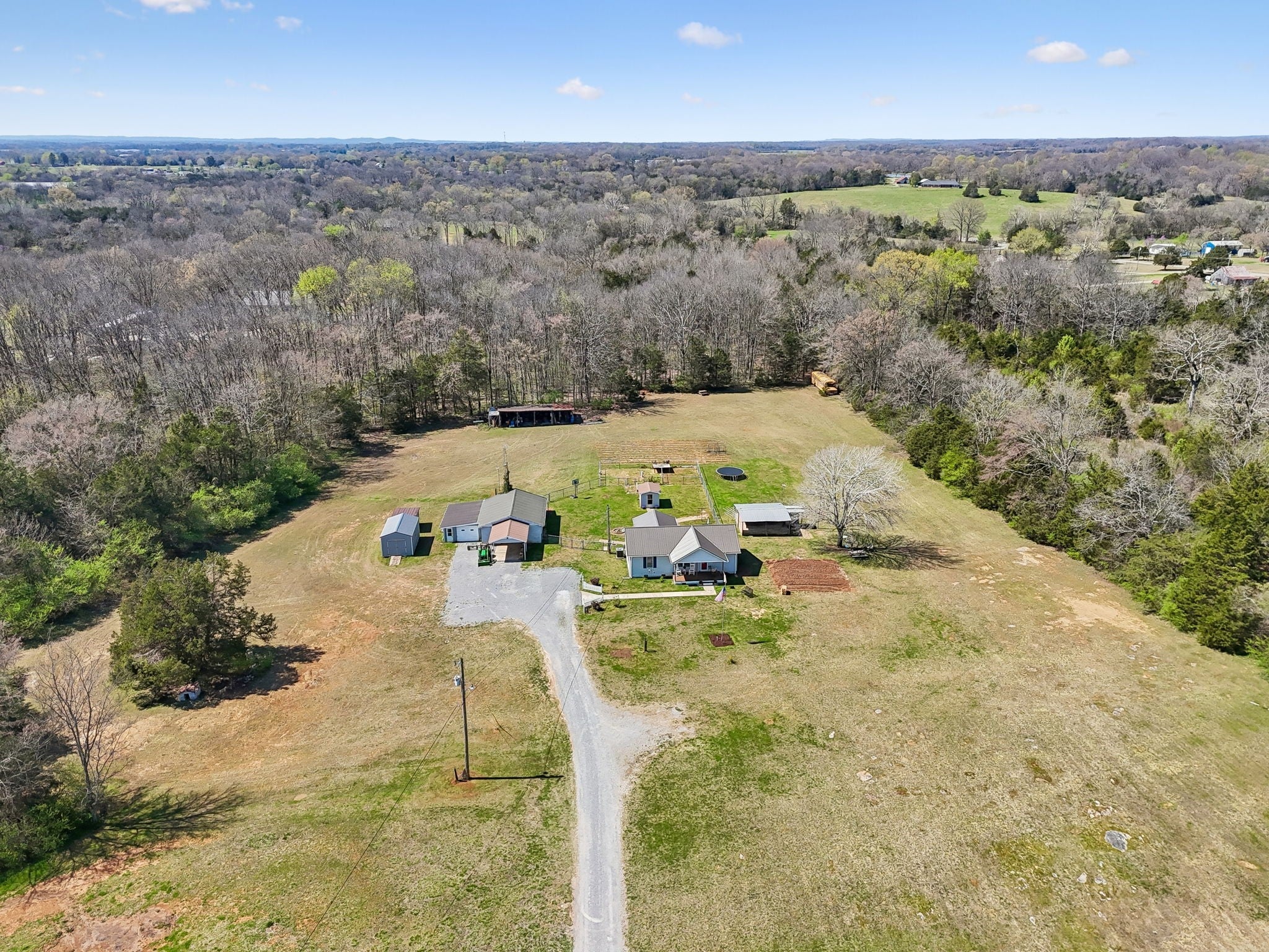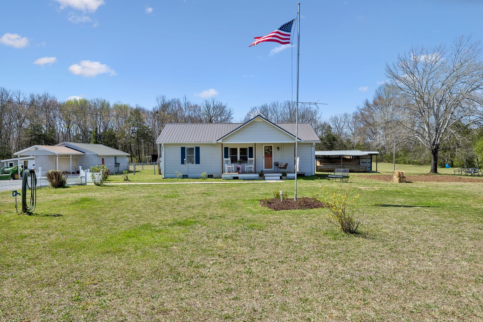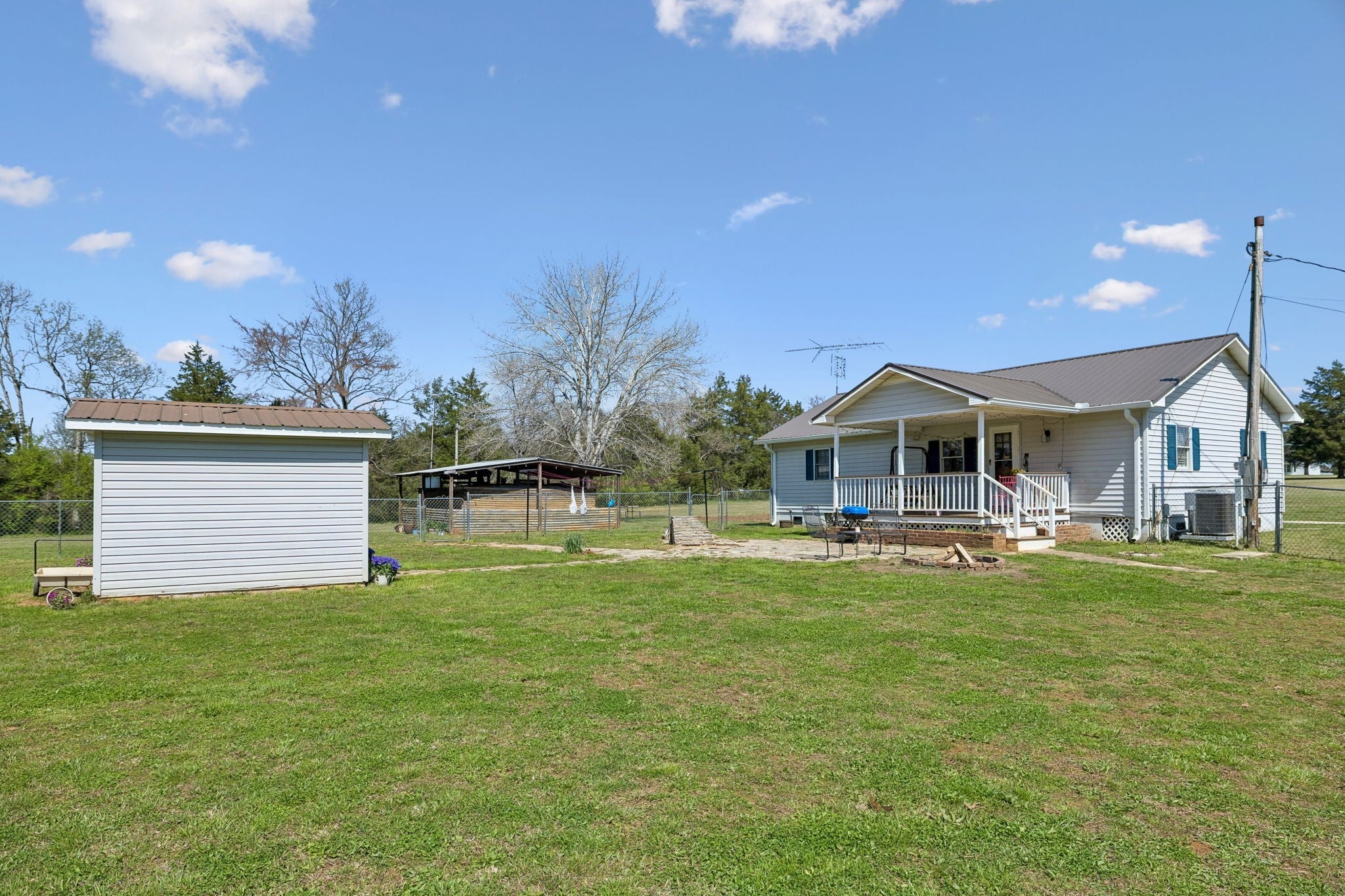 This 3 bedroom, 2 bathroom manufactured home sits on a permanent foundation and offers 1,080 square feet of comfortable living space. The home has been well cared for over the years and features a newer metal roof along with covered front and back porches, creating inviting spaces to enjoy the peaceful country setting. Inside, the home offers a comfortable and practical layout with a nicely sized living room that serves as the main gathering space. The primary bedroom includes a private bath and provides a quiet retreat, while the kitchen offers ample workspace and storage for everyday living. The 11.32 acre property is a mix of open and wooded land, all flat and very usable. A pond tucked into the woods adds a natural focal point and enhances the privacy and character of the land. The property is well equipped with an 11x11 storm shelter, a 22x30 shop with power, a large tool shed, a lean to, a 12x20 shed, and an additional 8x10 shed, providing excellent storage and workspace for equipment, hobbies, or small scale farming. This is a solid, well maintained property that offers usable acreage, functional improvements, and the kind of country setting that is becoming harder to find.