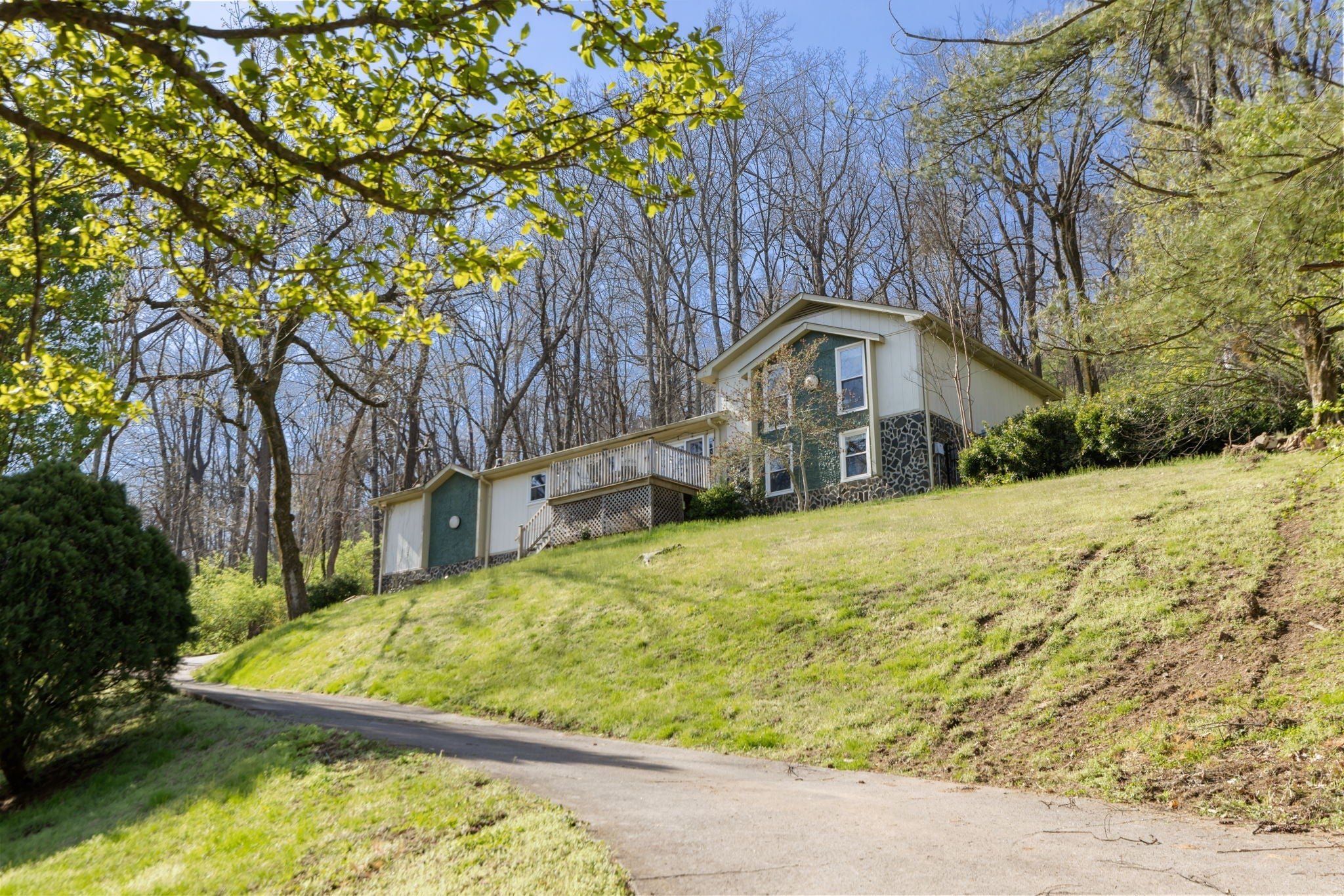 You must see this unique home in Brentwood Hills! This 4 bedroom, 2.5 bathroom house is nestled in the rolling hills of Brentwood! This house feels remote but is just minutes away from the interstate, stores, and parks! This artistic house could be a blank canvas for a rehab or new build. Whichever you choose, the amazing view will always be there! Enjoy the privacy of the deck off the primary suite or a morning coffee on the front porch! No HOA!!