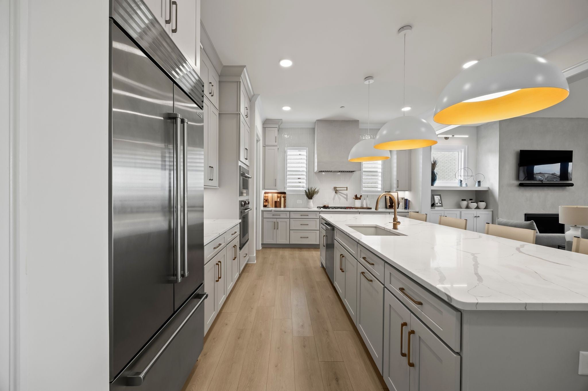 - Oven, Built-In Gas Range, Dishwasher, Disposal, Refrigerator, Stainless Steel Appliance(s)