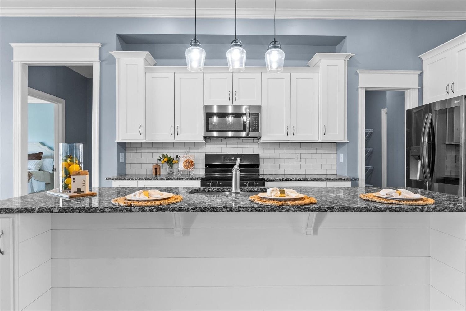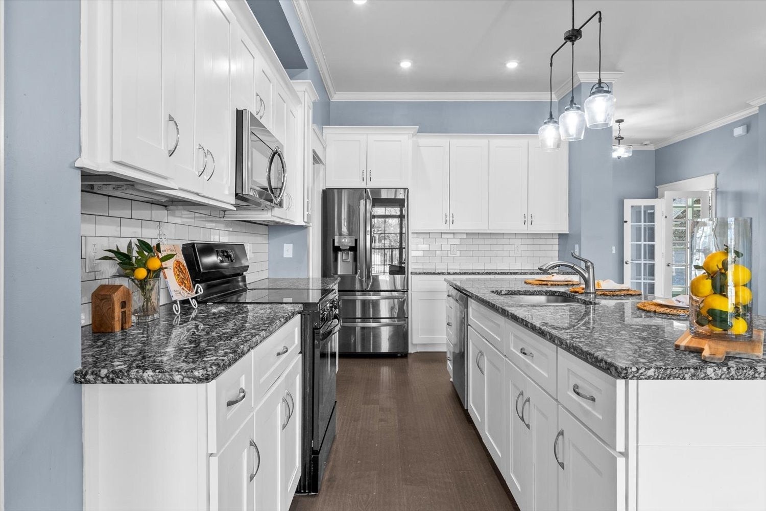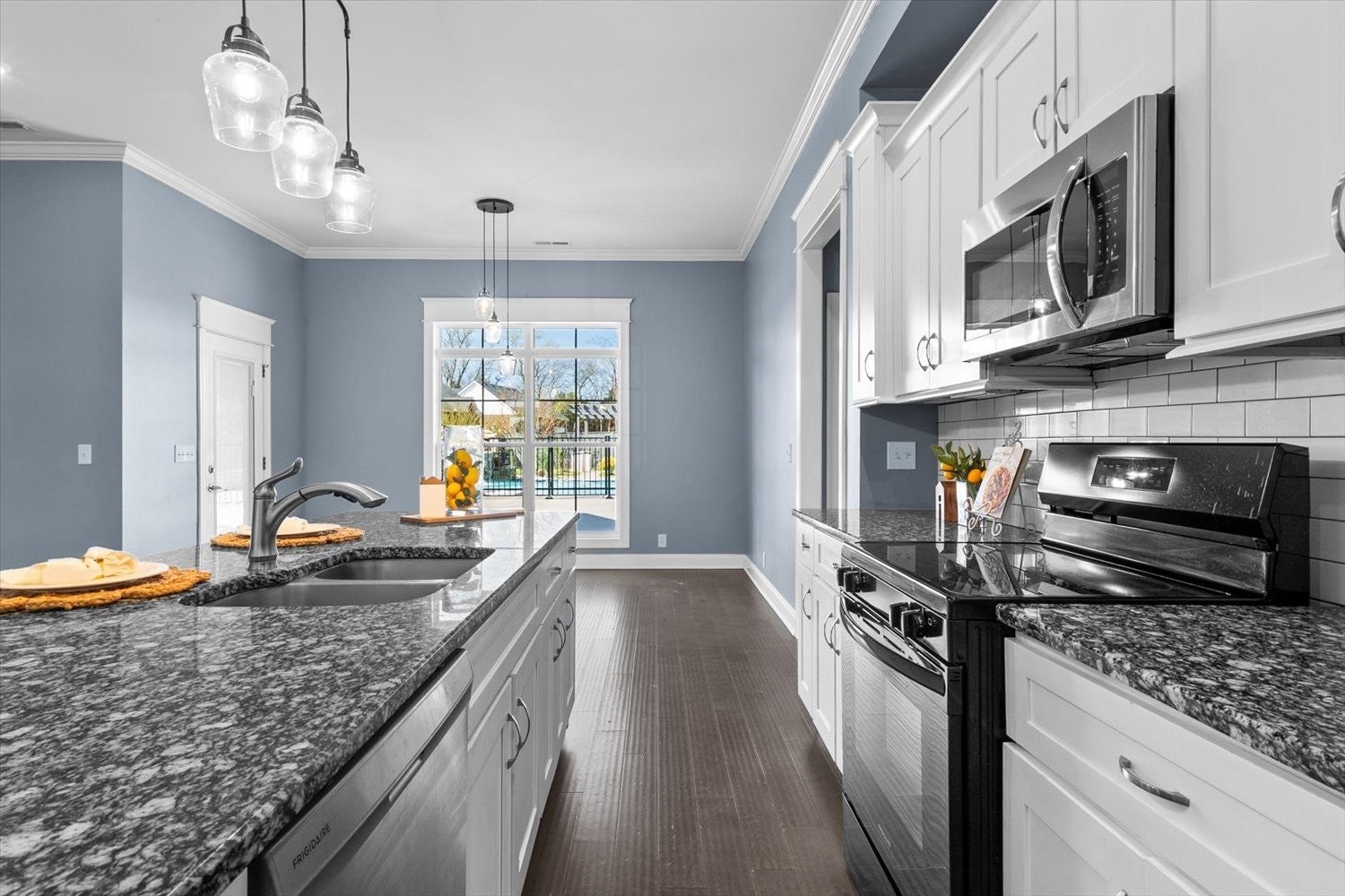 - Electric Range, Dishwasher, Disposal, Microwave, Refrigerator, Stainless Steel Appliance(s)