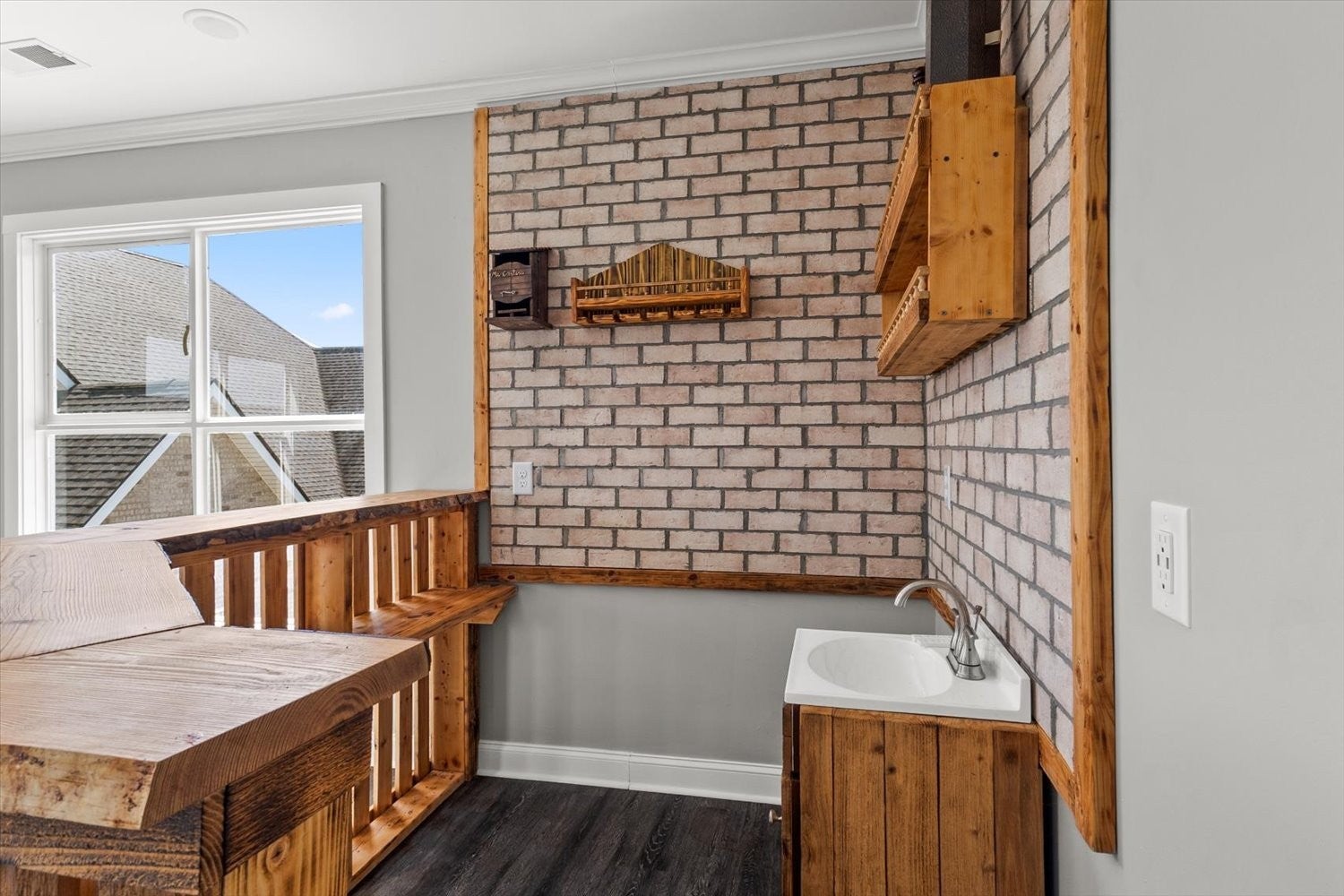 - Brick, Wood Siding