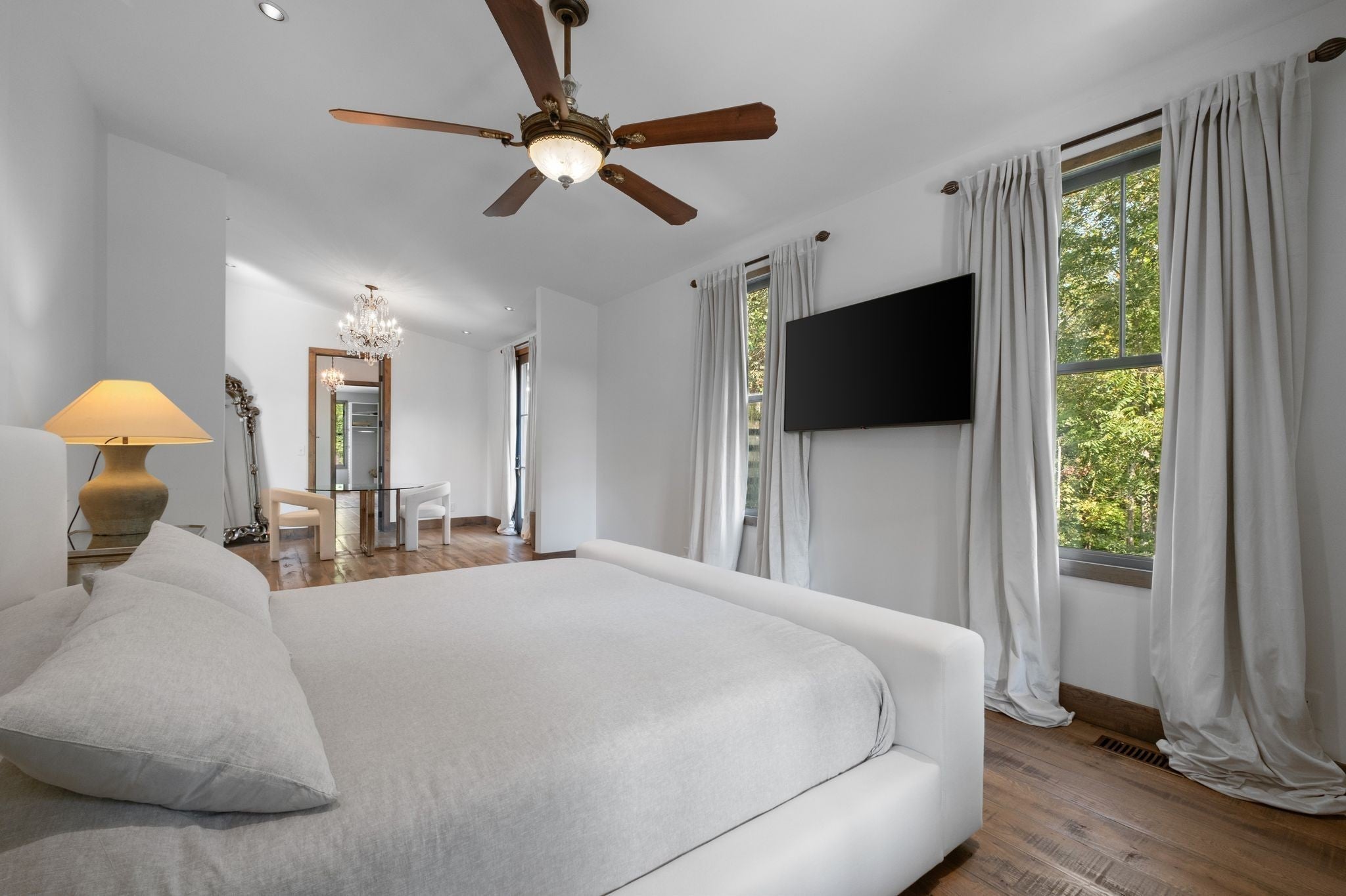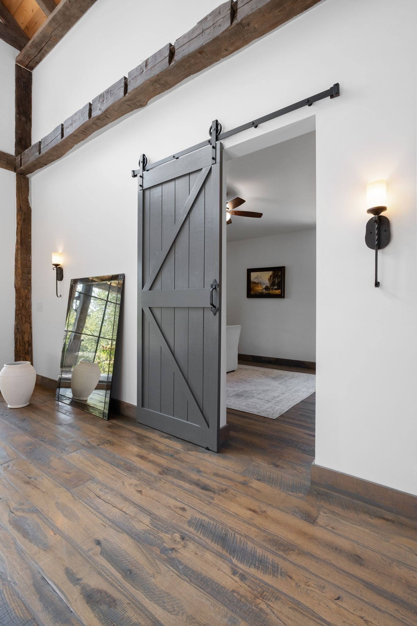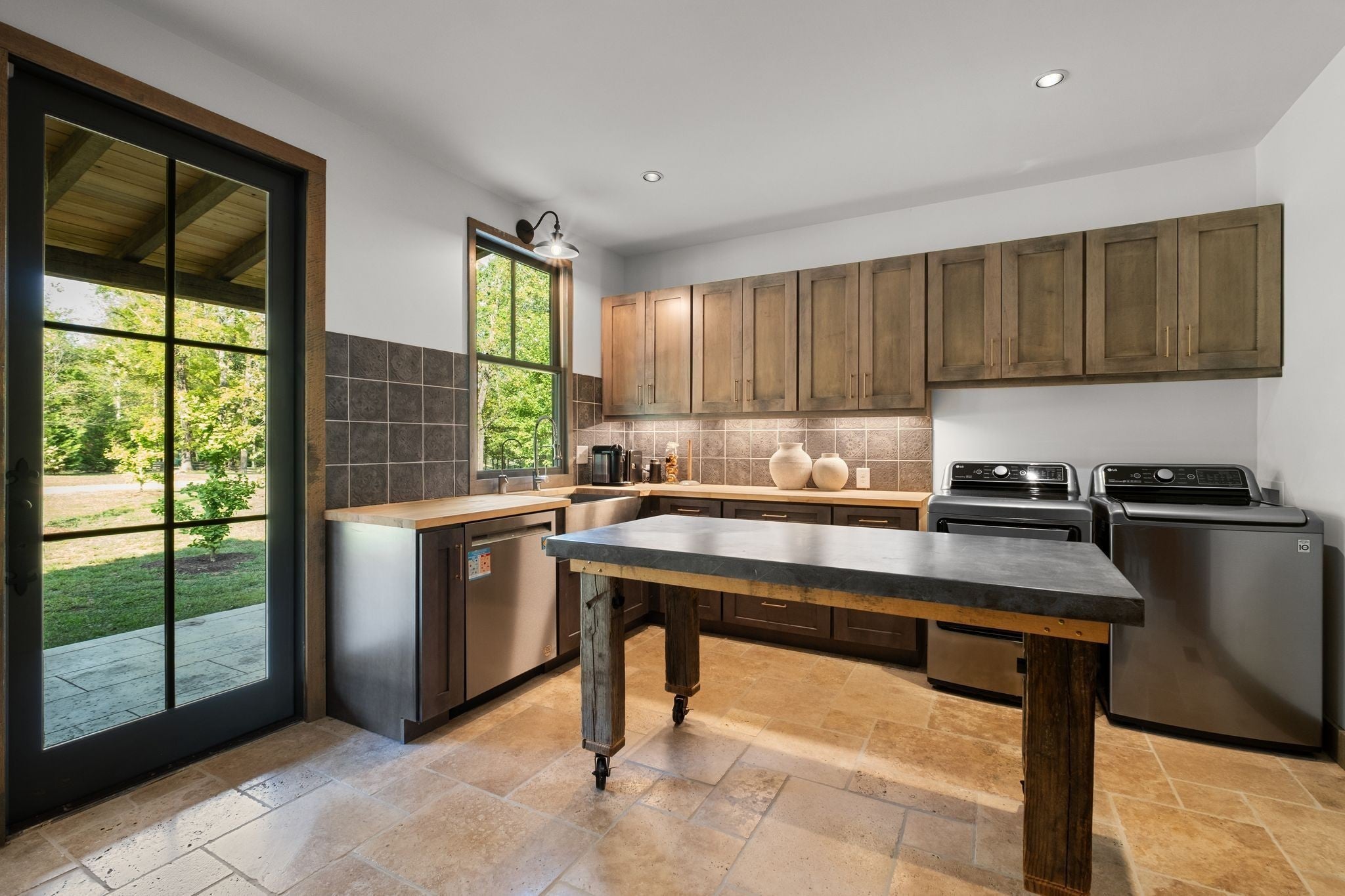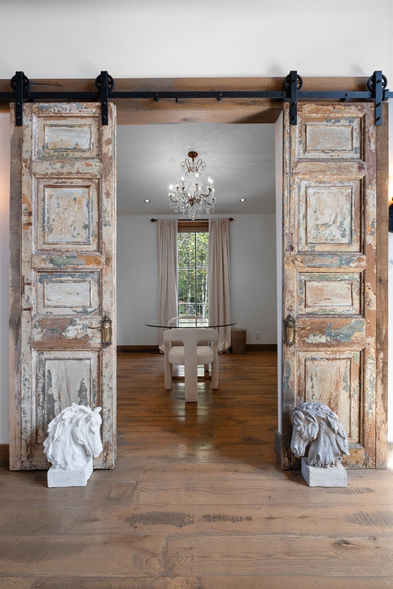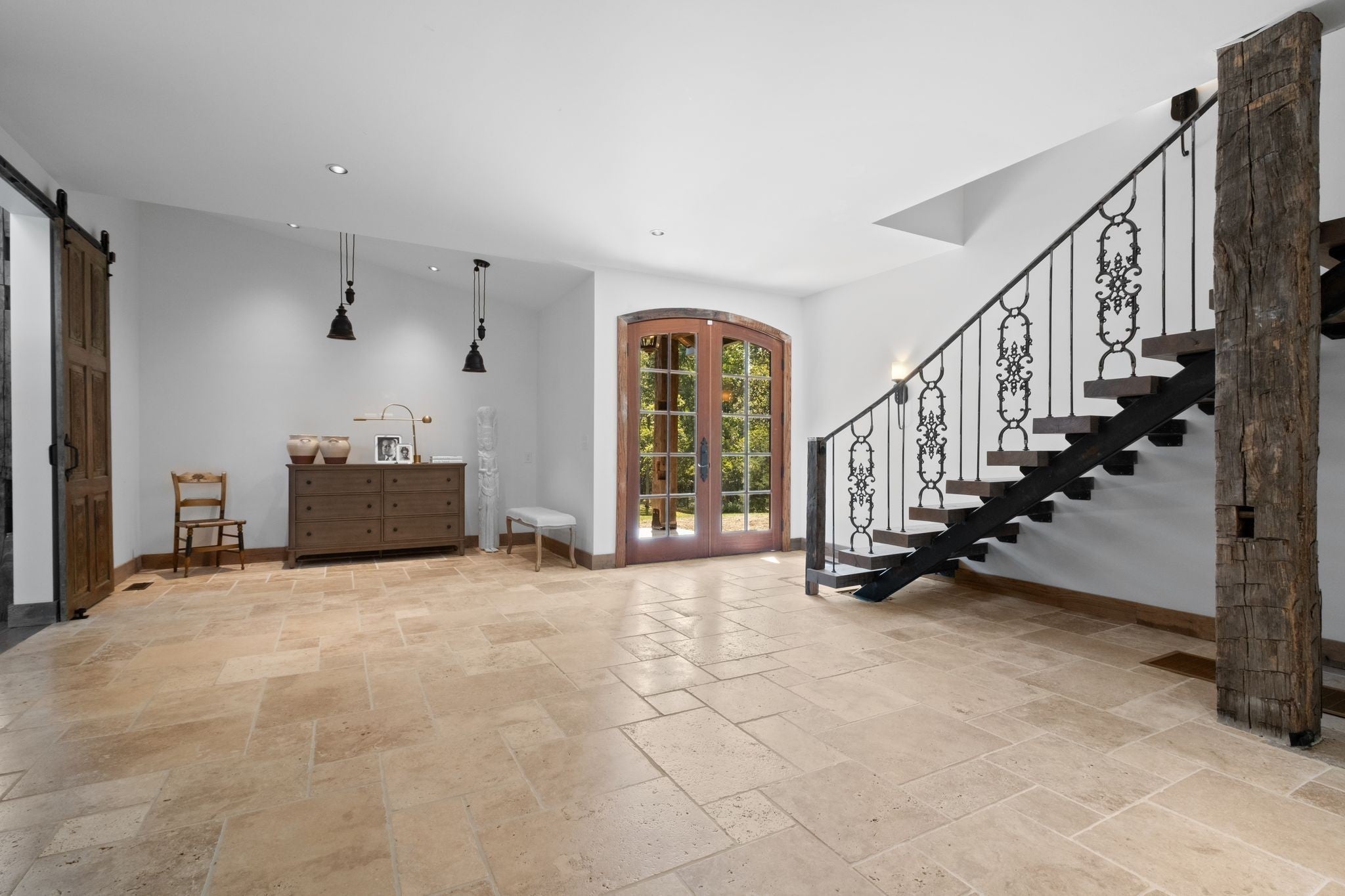 Thoughtfully priced below past appraisal. Here, on seven peaceful acres, this 5,371 square foot luxury home offers a place where comfort and elegance naturally meet the calm of nature. Inside, the great room rises with dramatic presence with 28 foot ceilings, 150 year old Montana timber beams, and sunlight spilling in from every angle. It is a space made for celebration and connection, yet equally perfect for quiet mornings beside the fire as the day slowly begins. The chef’s kitchen invites gathering, with Bertazzoni appliances, generous workspace, and an adjoining scullery that keeps hosting effortless when friends and family fill the home. Every element works together so you can enjoy being present in the moment. The main-level primary suite becomes a personal retreat framed by historic Indian teak doors. A spa style bath offers the perfect place to unwind, while a second bedroom nearby creates flexibility for guests or a dedicated office. Follow the graceful French Quarter inspired staircase to the upper level, where three additional bedrooms, including a secondary suite, provide comfort and privacy. A bright studio space offers endless possibility a creative haven, home gym, lounge, or an extra bedroom for the growing household. Outdoor living becomes part of everyday life here. Over 1,500 square feet of porches and terraces overlook gentle woods and soft evening skies. Enjoy morning coffee surrounded by nature or step into the swim spa under a blanket of stars this home encourages you to slow down and savor the setting. Every detail reflects thoughtful design and timeless style, making this residence a place that feels warm, refined, and unmistakably special. A home built for living well.