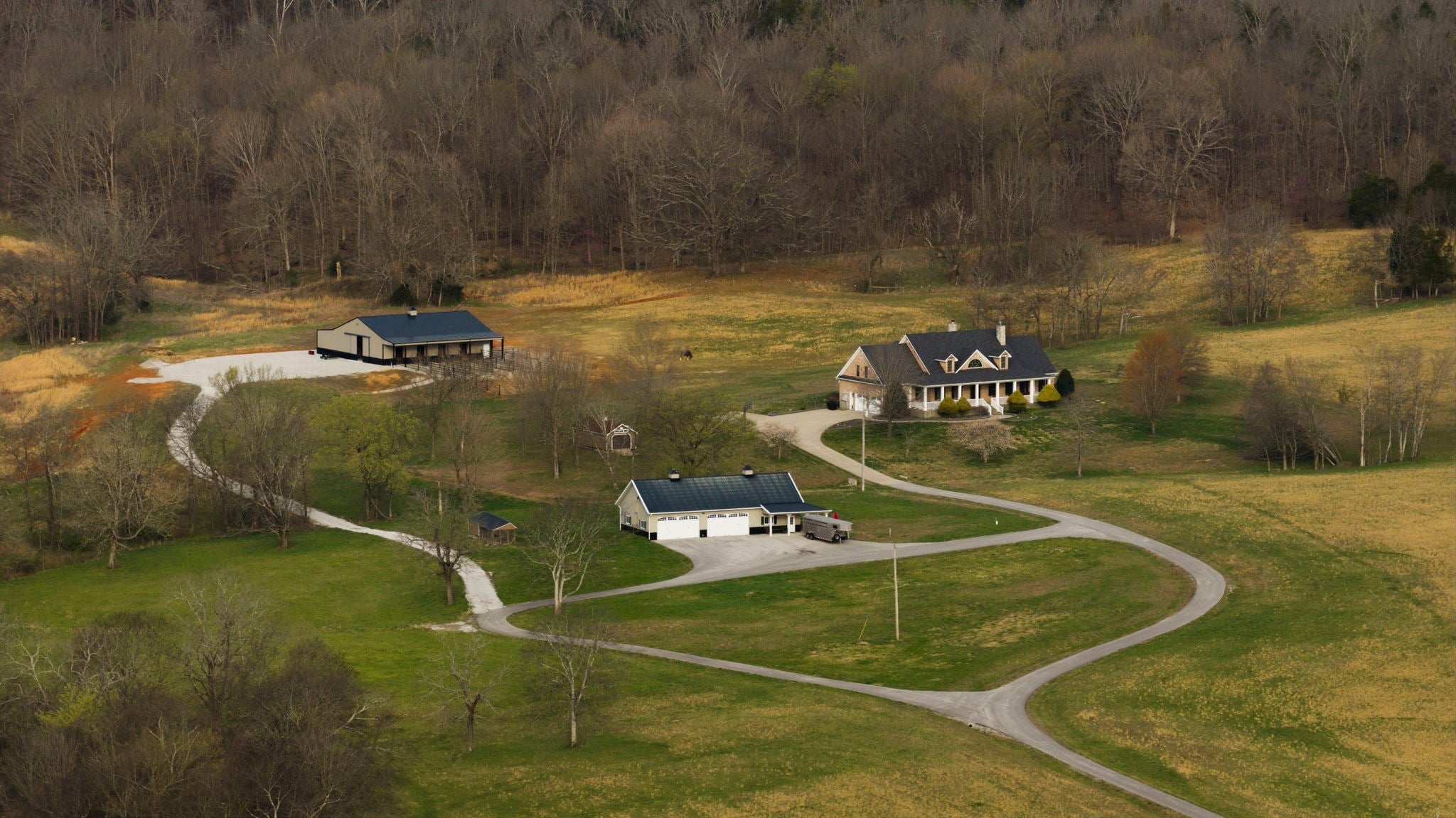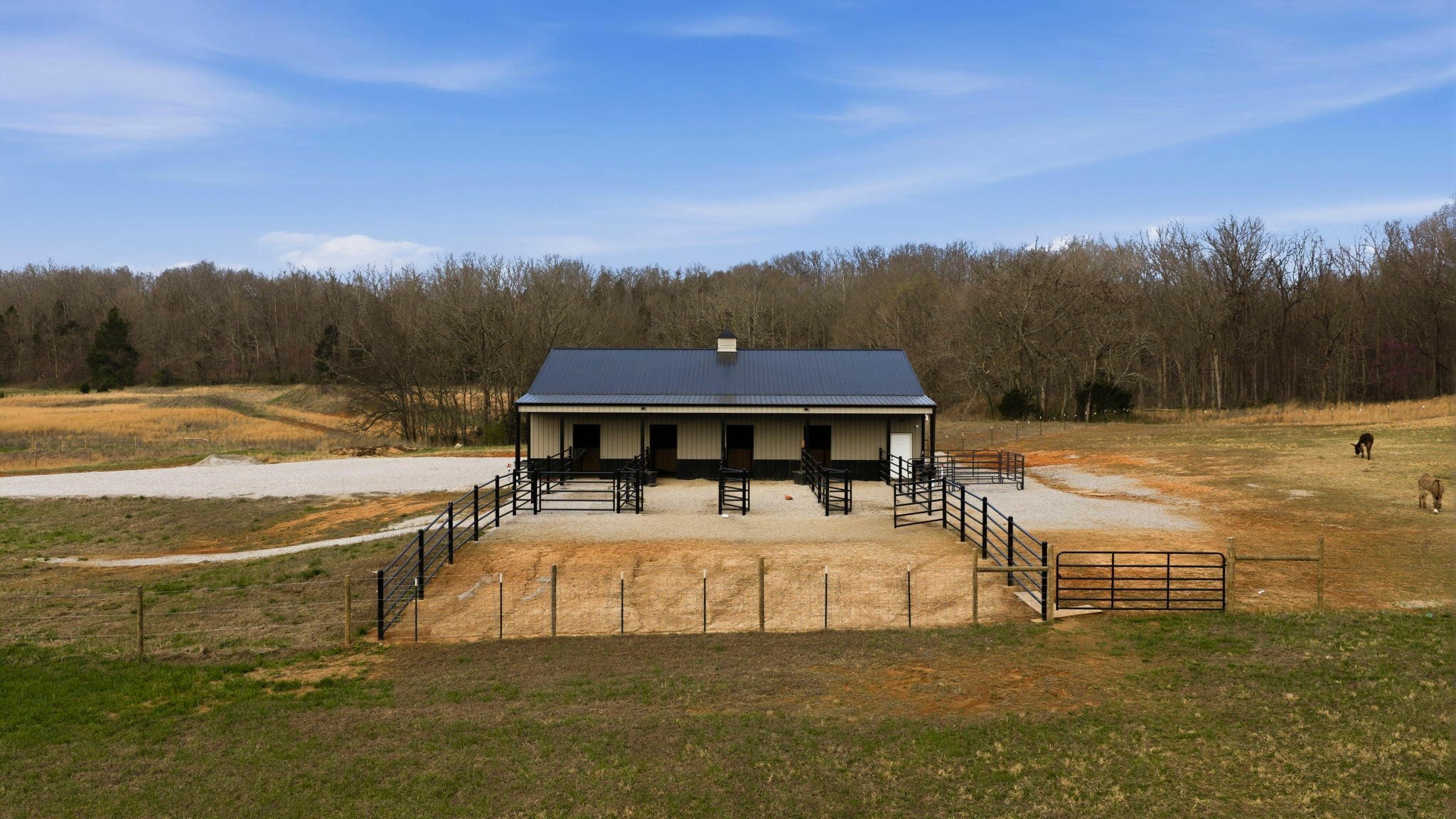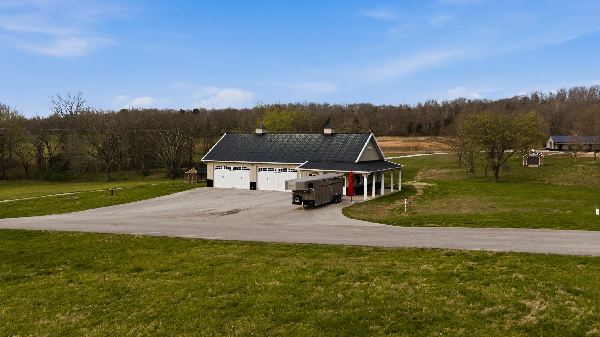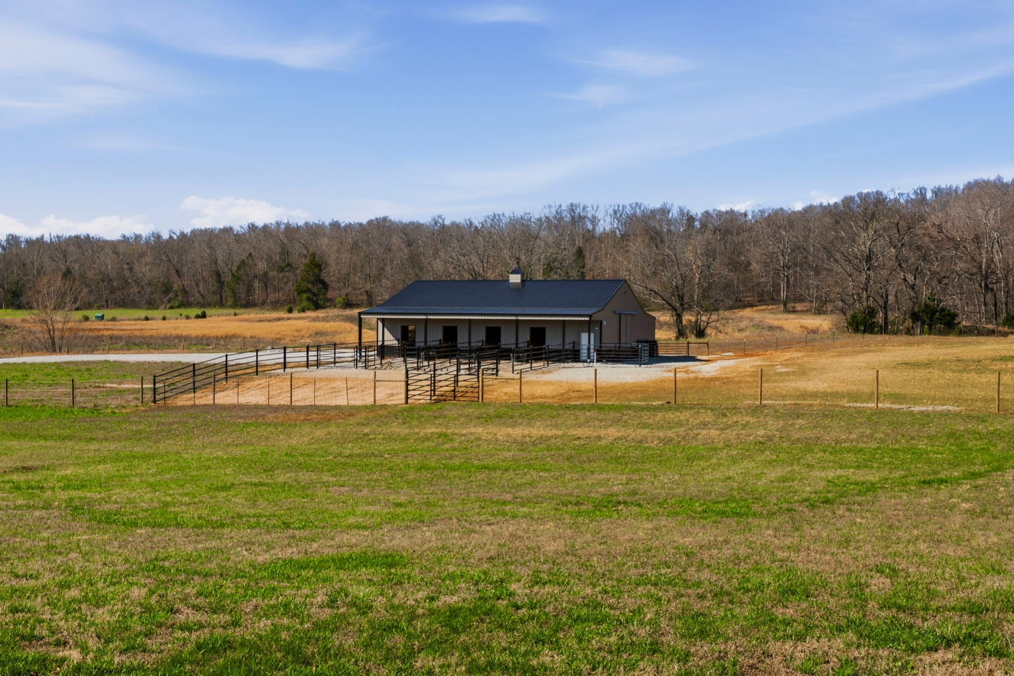 Situated on approximately 73 acres at 1185 Jack Smith Road, this custom-built home offers privacy, natural beauty, and spacious living just minutes from town. Built by Doug Martens, the property is surrounded by mature woods and borders approximately 400 acres of undeveloped private land, creating a peaceful and secluded setting with abundant wildlife. A 48x60 custom built barn with 4 12x12 Preifert stalls, in addition to the office space there is feed and tack rooms. Theres also a 15x60 storage room for machinery. The land features a freshwater spring, pond, and gently rolling terrain. The property was previously divided into five separate tracts, offering potential flexibility for future use. The home offers over 5,000 square feet of living space with Brazilian cherry hardwood flooring, ceilings over 10 feet, and detailed trim work throughout. A two-story foyer with a wrap-around staircase leads into the main living area featuring vaulted ceilings, a stone fireplace, and wet bar. The kitchen includes custom cabinetry, ample storage, a walk-in pantry, and an adjacent full bath that also serves as a storm shelter. Additional features include a security system and surround sound intercom. The primary suite includes heated tile floors, a whirlpool tub, a large walk-in closet with custom shelving, and a private screened porch. The upper level includes four additional bedrooms, including one with a private bath and two connected by a Jack-and-Jill bathroom, along with a media area and bonus room with a secondary staircase to the kitchen. Additional improvements include an attached two-car garage and a detached four-car workshop. The property is serviced by NCTC fiber internet. Conveniently located near Bowling Green amenities including shopping, dining, Western Kentucky University, the National Corvette Museum, and the regional airport. Nashville, TN is approximately one hour away.
