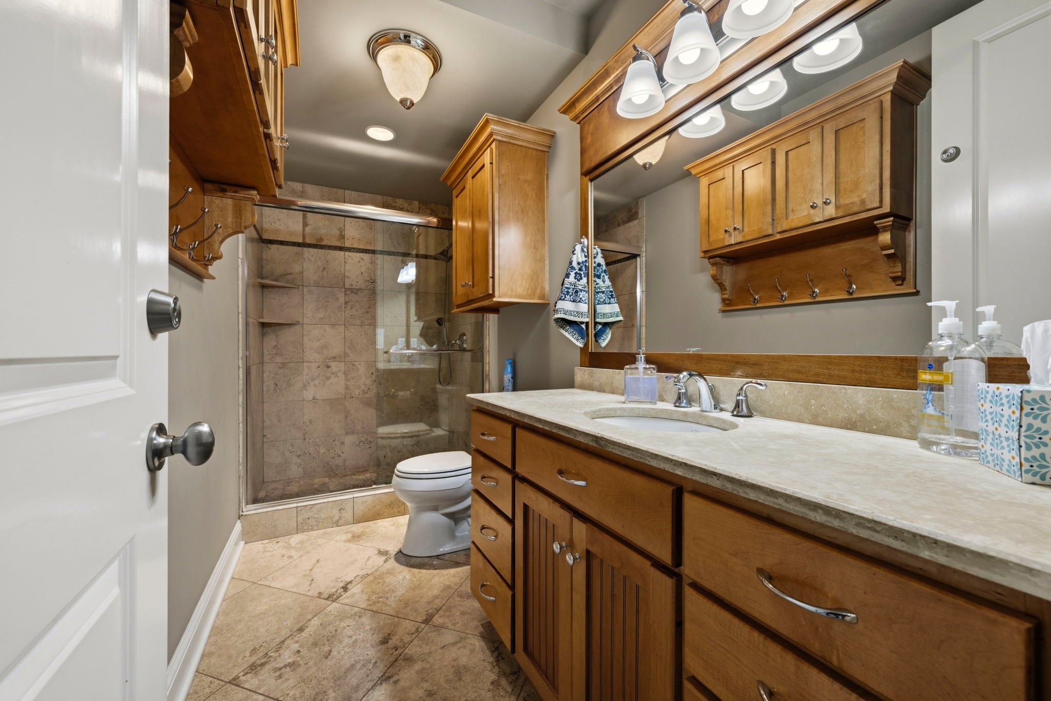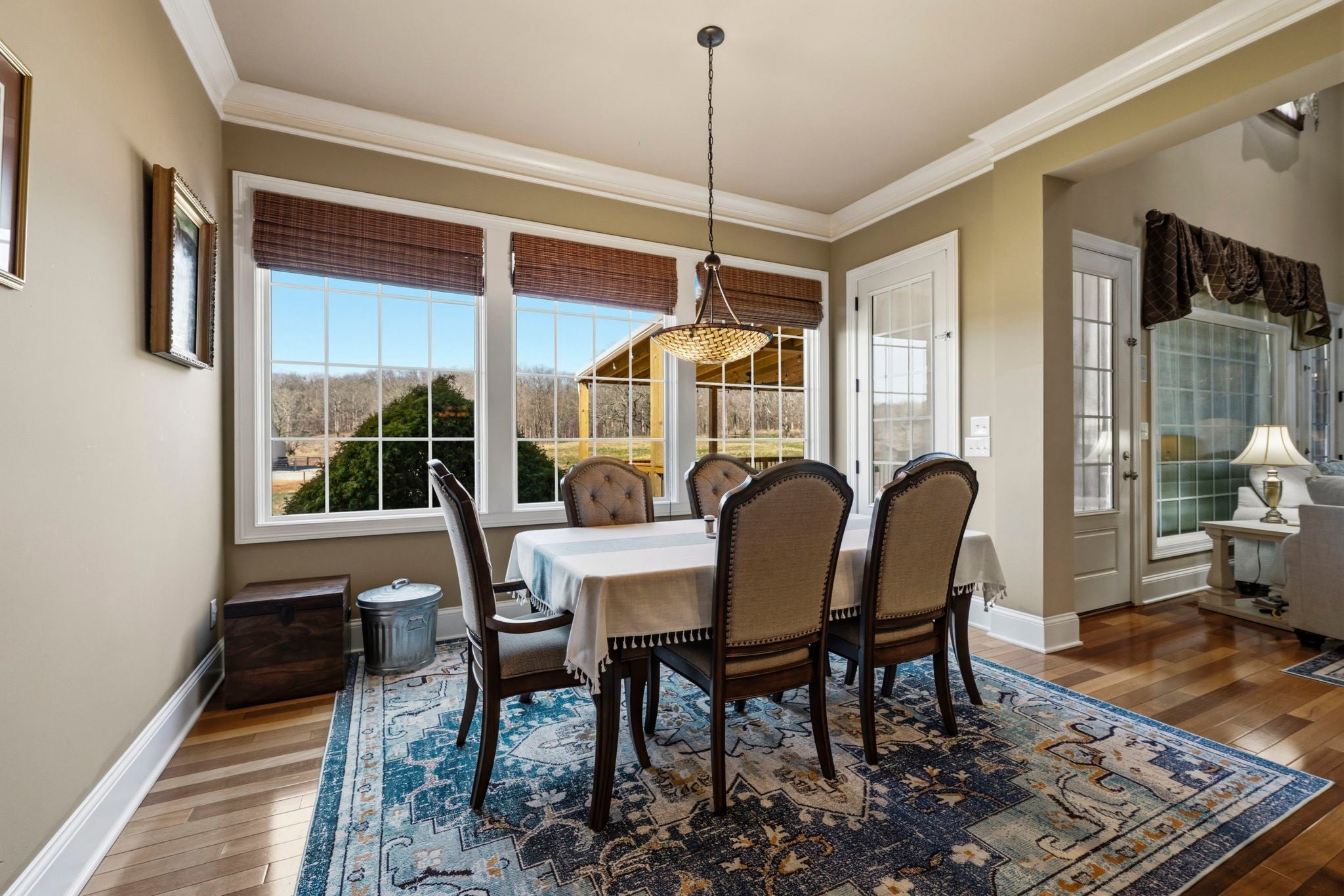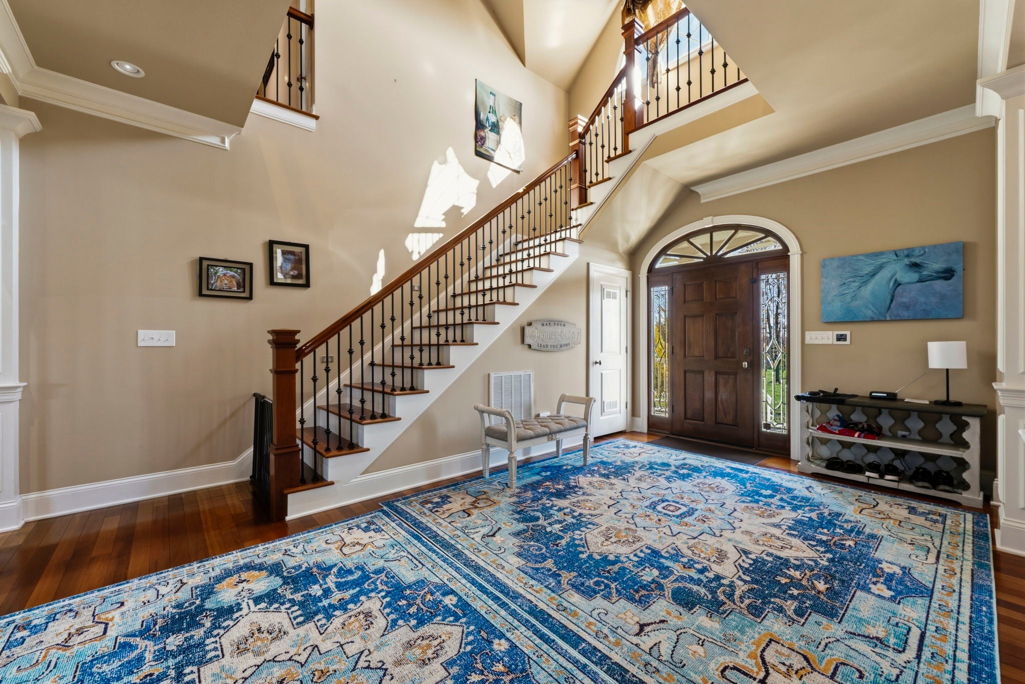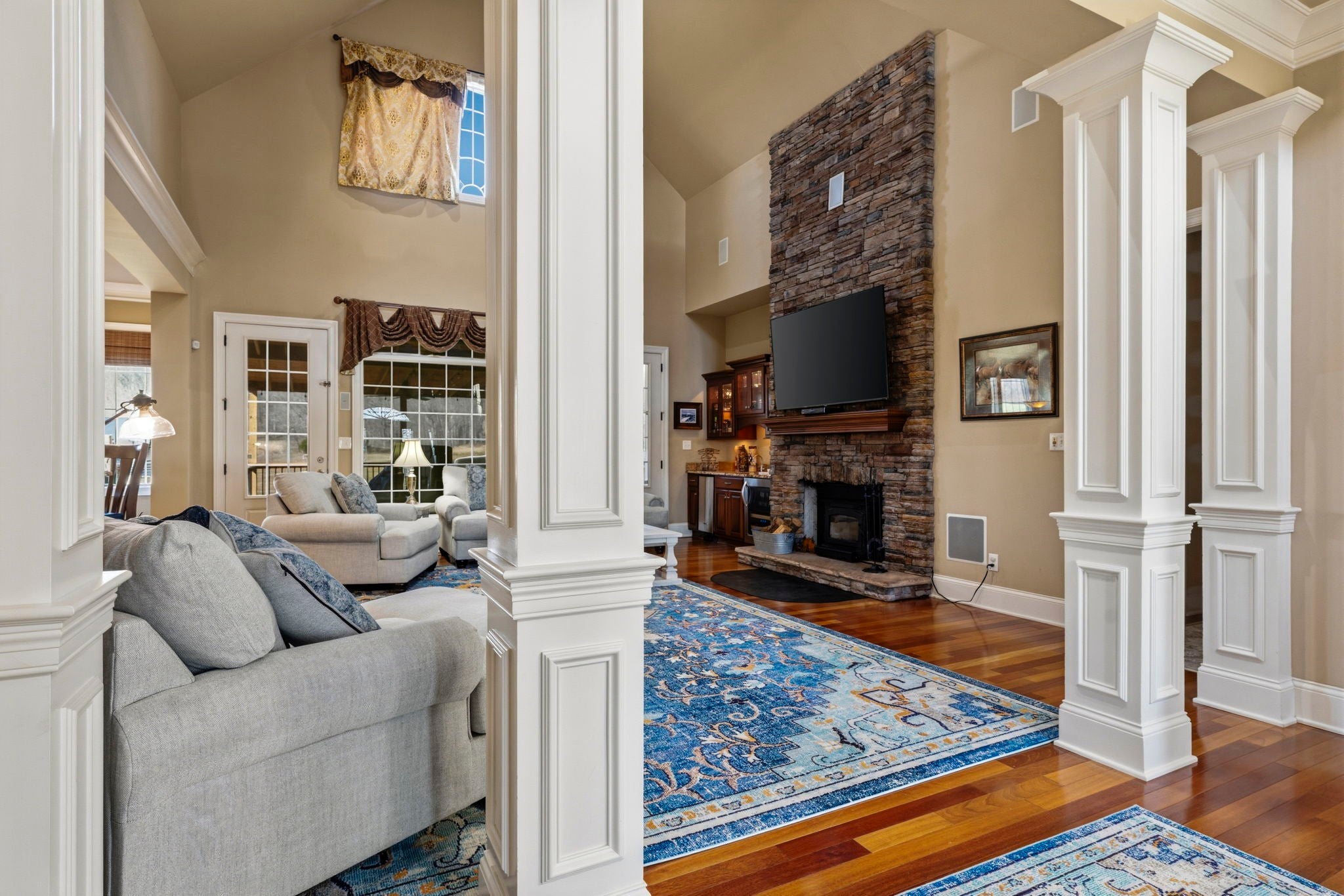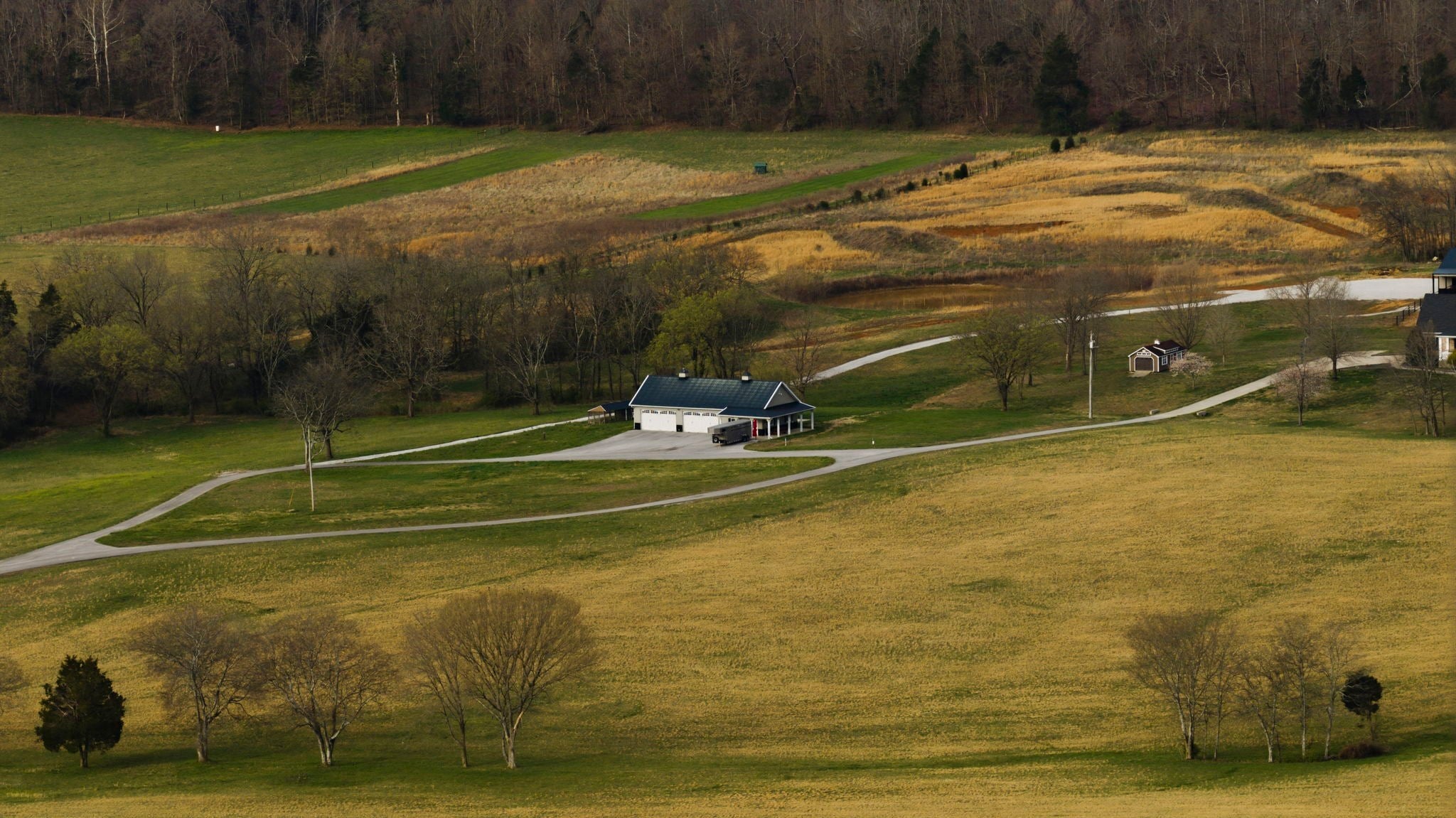Situated on approximately 73 acres at 1185 Jack Smith Road, this custom-built home offers privacy, natural beauty, and spacious living just minutes from town. Built by Doug Martens, the property is surrounded by mature woods and borders approximately 400 acres of undeveloped private land, creating a peaceful and secluded setting with abundant wildlife. A 48x60 custom built barn with 4 12x12 Preifert stalls, in addition to the office space there is feed and tack rooms. Theres also a 15x60 storage room for machinery. The land features a freshwater spring, pond, and gently rolling terrain. The property was previously divided into five separate tracts, offering potential flexibility for future use. The home offers over 5,000 square feet of living space with Brazilian cherry hardwood flooring, ceilings over 10 feet, and detailed trim work throughout. A two-story foyer with a wrap-around staircase leads into the main living area featuring vaulted ceilings, a stone fireplace, and wet bar. The kitchen includes custom cabinetry, ample storage, a walk-in pantry, and an adjacent full bath that also serves as a storm shelter. Additional features include a security system and surround sound intercom. The primary suite includes heated tile floors, a whirlpool tub, a large walk-in closet with custom shelving, and a private screened porch. The upper level includes four additional bedrooms, including one with a private bath and two connected by a Jack-and-Jill bathroom, along with a media area and bonus room with a secondary staircase to the kitchen. Additional improvements include an attached two-car garage and a detached four-car workshop. The property is serviced by NCTC fiber internet. Conveniently located near Bowling Green amenities including shopping, dining, Western Kentucky University, the National Corvette Museum, and the regional airport. Nashville, TN is approximately one hour away.