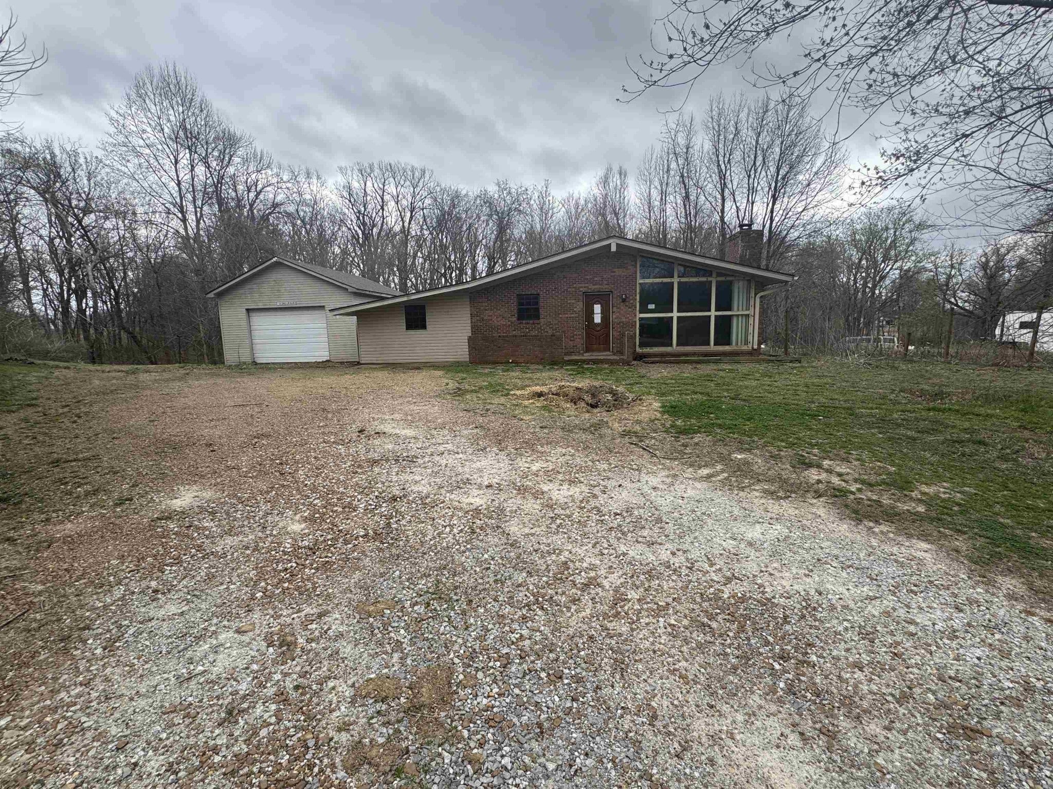 Great opportunity for investors or buyers looking to add their personal touch! This 3-bedroom, 2 full bathroom home sits on a spacious 0.6-acre lot and features a desirable split bedroom floor plan. The open living area flows into the kitchen and includes a fireplace, creating a functional layout with plenty of potential. The property also offers a large detached 2-car garage, providing ample storage or workspace. With some repairs and updates, this home could truly shine. Being sold in AS-IS condition—ideal for those seeking a renovation project or investment opportunity.