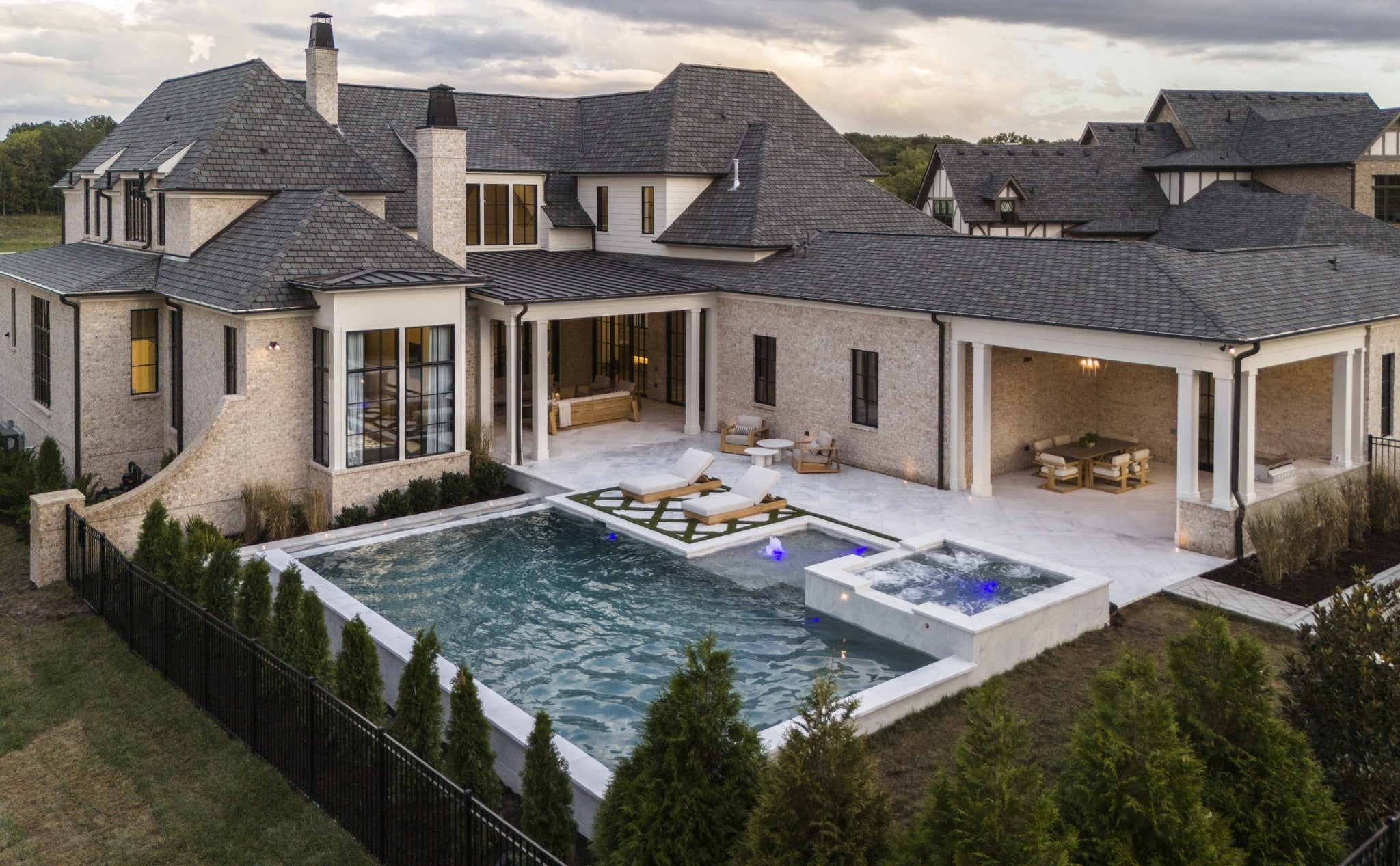 Set on 5 perfectly level acres and nestled against a serene tree line for ultimate privacy, this grand estate makes an unforgettable first impression with its stately elevation, striking gabled rooflines, and elegant porte-cochère. A large building envelope accommodates this stately home and pool, with ample room for outdoor entertaining, a future barn for your animals or party barn, or even a guest house—the possibilities are truly endless. Inside, thoughtfully curated finishes and refined design details create a warm yet sophisticated atmosphere. The main level features three spacious bedrooms, each with its own private bath and walk-in closet, along with a versatile bonus room complete with a built-in bar that seamlessly opens to expansive covered porches—highlighted by a cozy fireplace and a fully equipped outdoor kitchen, perfect for entertaining year-round. A dramatic two-story family room with a fireplace anchors the home, while the gourmet kitchen impresses with an oversized island, vaulted ceilings, and a fully functional working pantry. The luxurious primary suite offers a vaulted ceiling, private porch access, a fireplace, and a spa-inspired bath, along with an exceptional walk-in closet featuring a center island and direct access to the laundry room. Upstairs, enjoy a second laundry, abundant walk-in attic storage, and an additional vaulted bonus room with a half bath—ideal for guests, recreation, or a private retreat. Thoughtfully incorporated stacked closets on each level provide excellent additional storage today while also offering the flexibility to be converted into an elevator in the future, enhancing long-term convenience and accessibility. This home is perfect for your private estate & still convenient to interstate access. Hurry and make your own interior selections. Finished photos are representational photos of the Builder's work. Exterior photos of the home are renderings and not actual construction progress. Homesite perks for 10 bdrm.