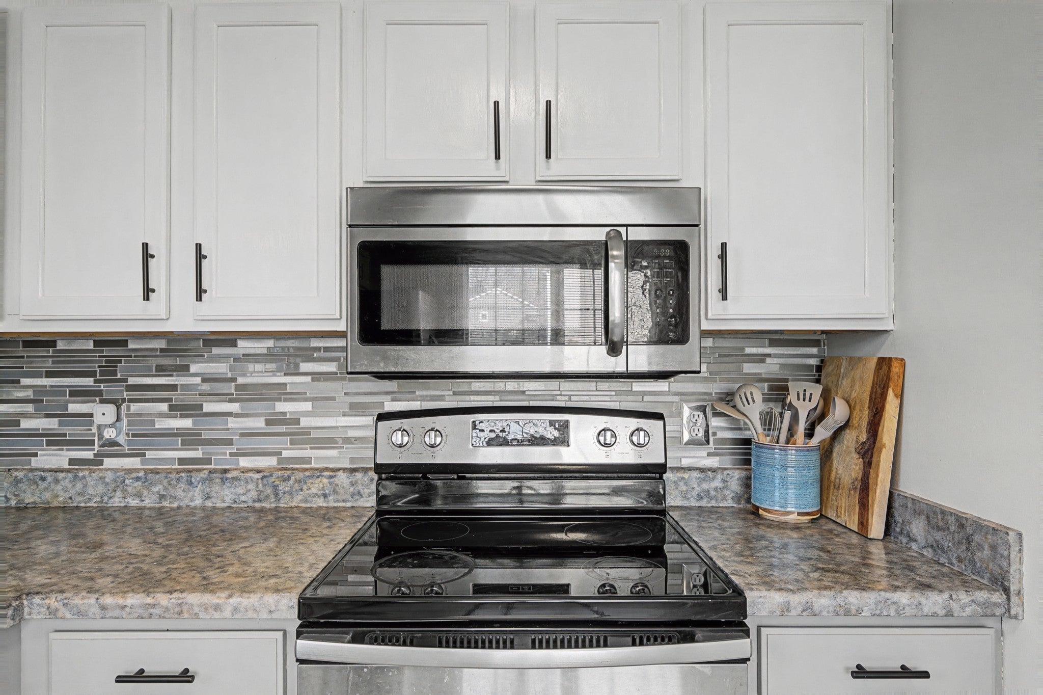 - Electric Oven, Electric Range, Dishwasher, Microwave, Refrigerator, Stainless Steel Appliance(s), Washer
