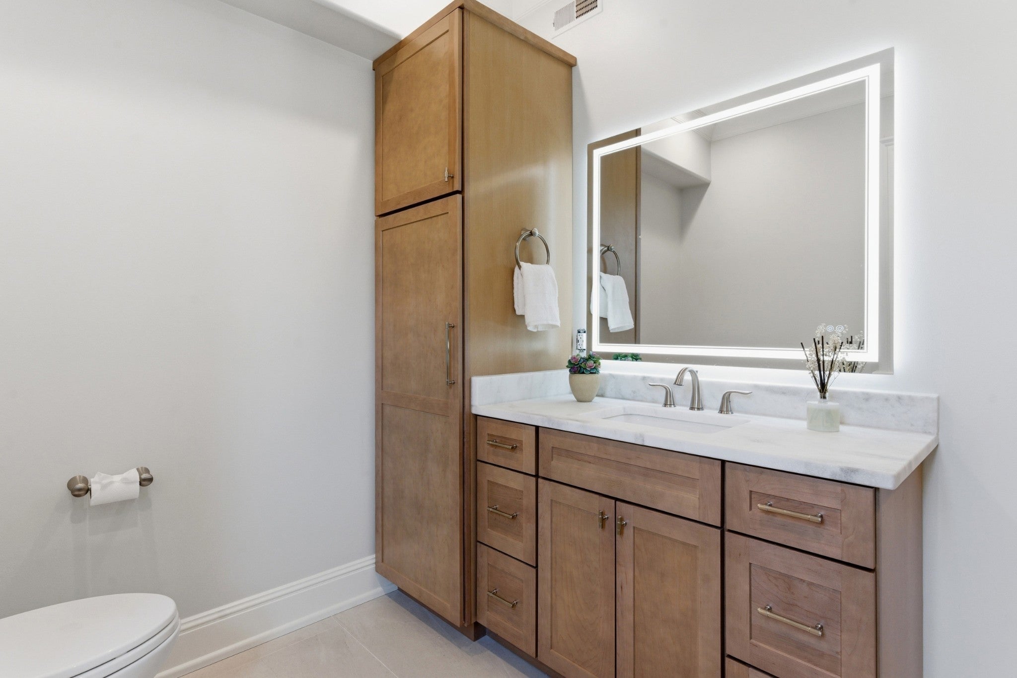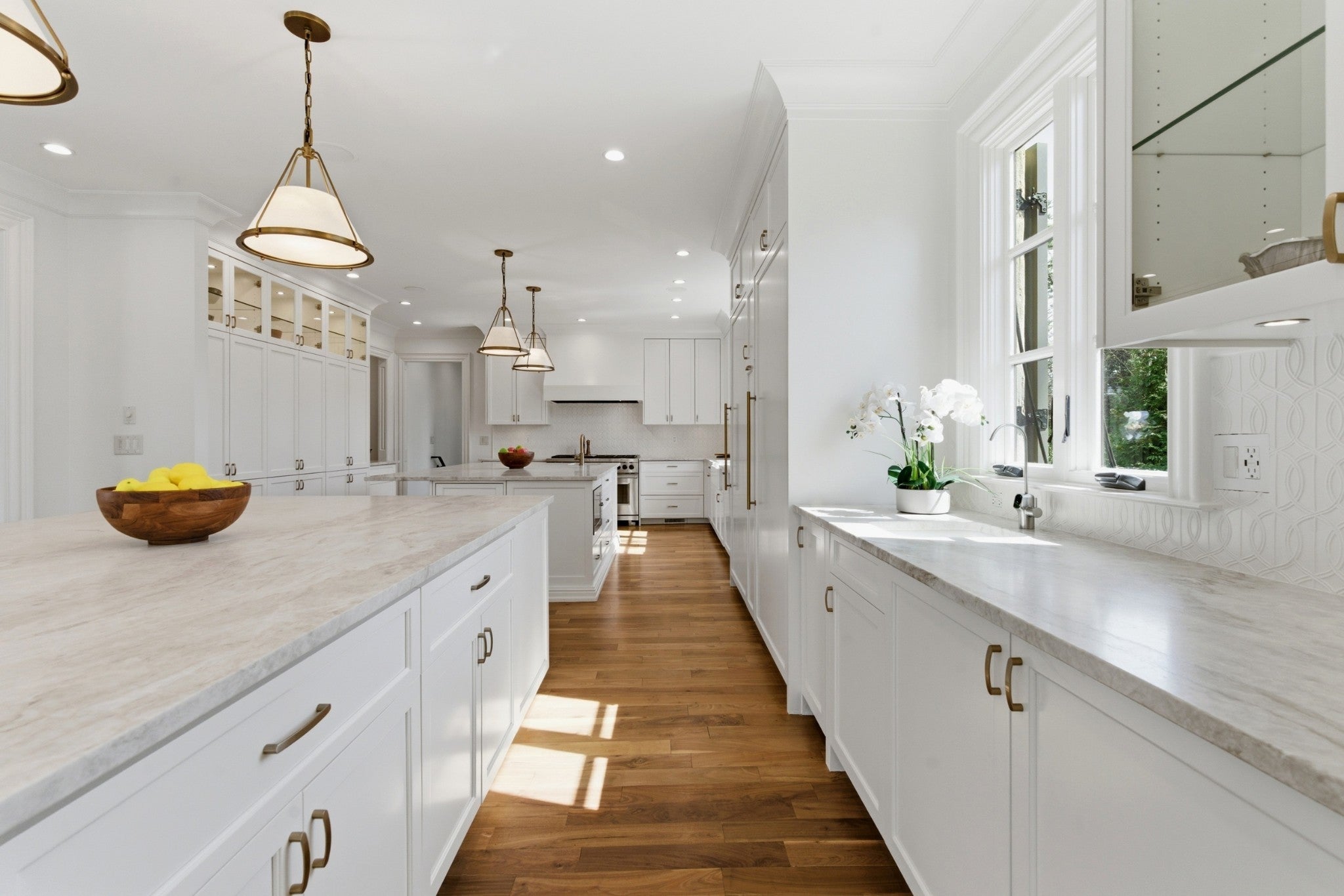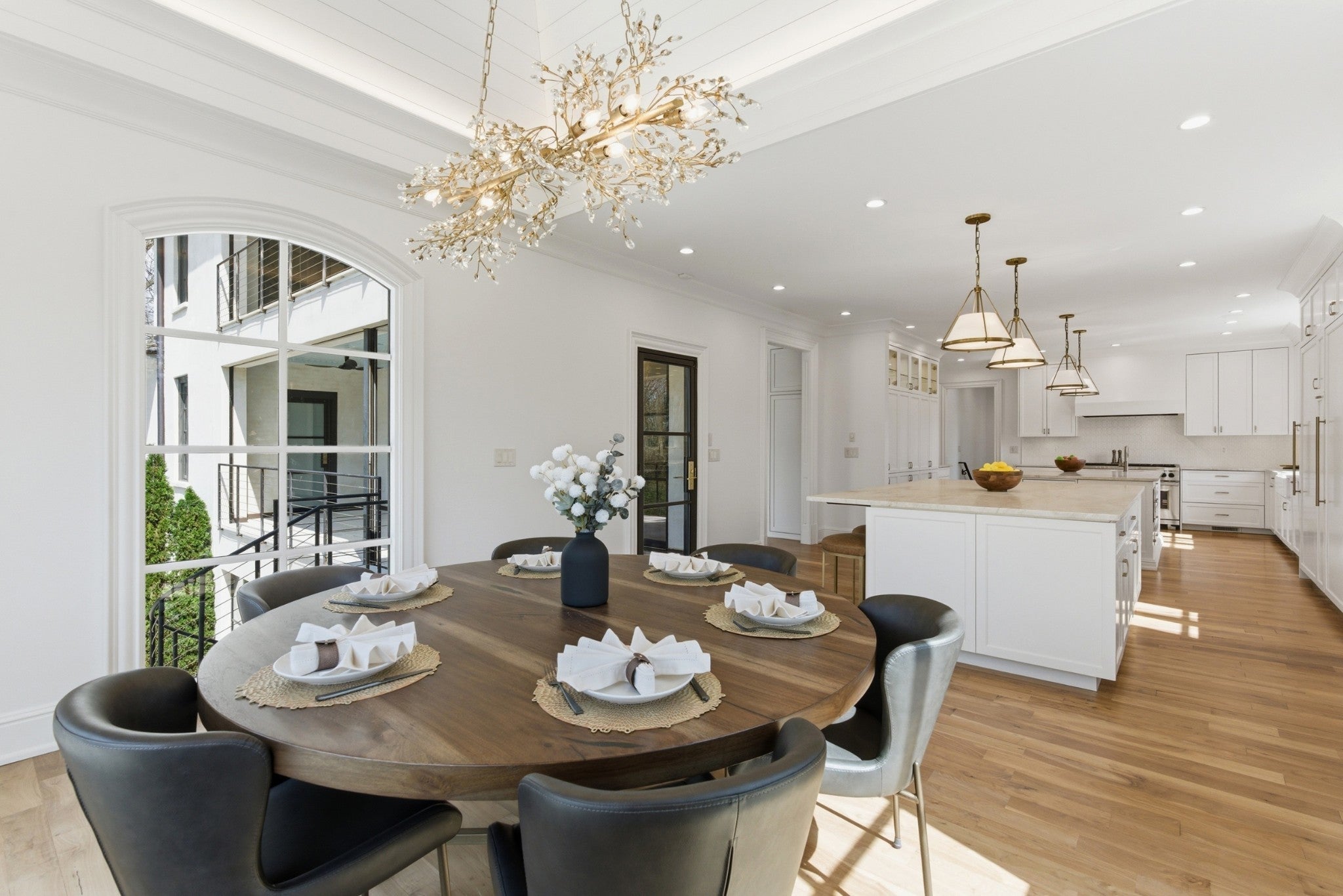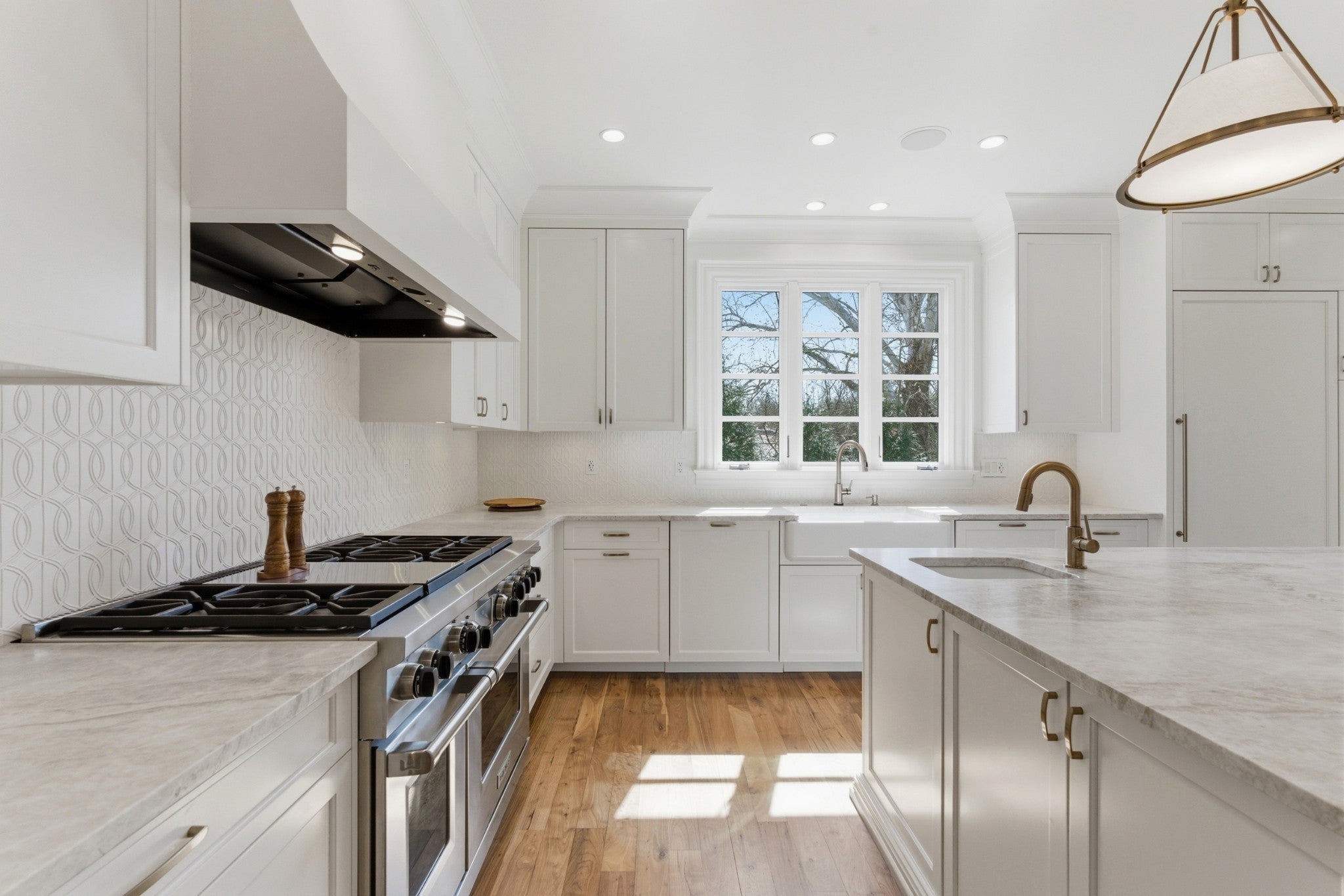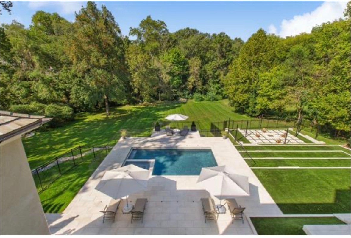Discover an impeccably renovated Belle Meade estate situated on over an acre of private, park-like grounds. This rare offering blends timeless elegance with modern luxury throughout, delivering a turnkey lifestyle in one of Nashville’s most prestigious neighborhoods. The heart of the home is a chef-inspired kitchen featuring natural quartzite countertops, a handcrafted artisanal backsplash, and a newly added second island with abundant storage. Thoughtful details include custom cabinetry and touchless faucets, complemented by premium appliances such as a full-size Sub-Zero refrigerator and freezer, dual dishwashers, and custom paneling. A vaulted ceiling in the sun-drenched breakfast area creates an inviting space for everyday living and effortless entertaining. Every bathroom has been thoughtfully updated, with full en suite bathrooms for each of the four upstairs bedrooms, and the main-floor primary suite features opulent Calacatta Oro marble floors and a luxurious soaking tub. Walnut hardwood floors extend throughout the main living areas, adding warmth and sophistication. Downstairs, the finished basement provides exceptional comfort with zoned radiant-heated tile floors, a gym, media room, and a private in-law/guest suite complete with its own kitchen that is ideal for multigenerational living or hosting guests. Outside, the private backyard oasis awaits with a sparkling pool and spa, expansive entertainment areas, and mature landscaping across the generous lot. A whole-home generator ensures peace of mind in any season. This meticulously updated home offers the perfect blend of sophistication, functionality, and resort-style living in the heart of Belle Meade.
