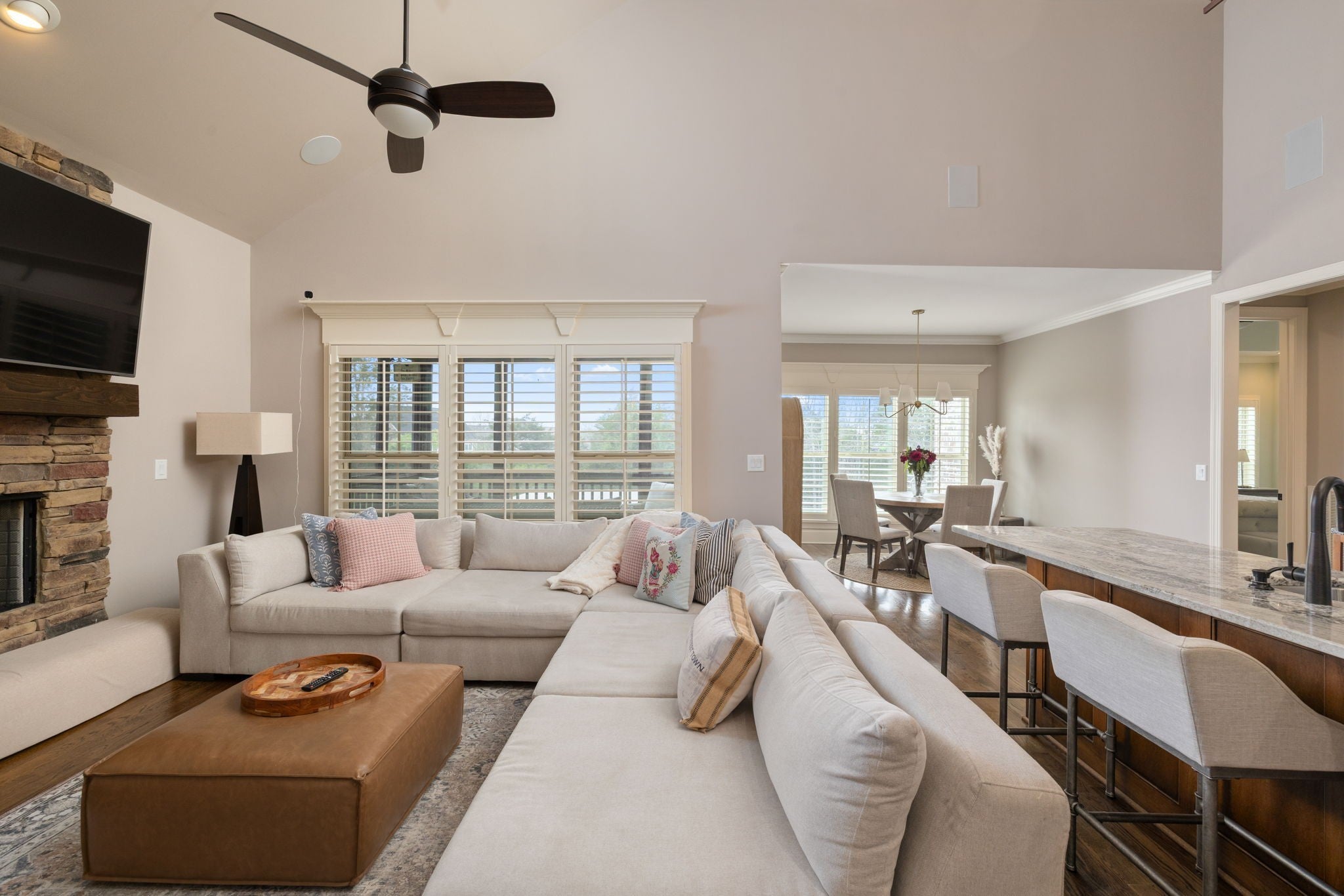 Welcome to this beautifully maintained home in the desirable Southshore Pointe community of Mount Juliet—where comfort, style, and thoughtful upgrades come together seamlessly. Meticulously cared for and truly move-in ready, this home shows like new and offers an inviting open floor plan designed for both everyday living and effortless entertaining. The main level features a spacious primary suite, providing convenience and privacy, while the heart of the home showcases a stunning living area with a stacked stone fireplace that creates a warm and elegant focal point. The kitchen and baths are finished with granite countertops, adding both durability and timeless appeal throughout. You’ll immediately notice the elevated craftsmanship, including hardwood floors that extend through the main living areas, stairwell, and upstairs hallway. The dining room is enhanced with a coffered ceiling, adding architectural interest and sophistication. This home is packed with thoughtful upgrades designed for modern living, including in-wall speakers, programmable thermostats, and a tankless hot water heater for efficiency and comfort. Plantation shutters on the lower level provide both style and privacy, while the water softener system adds an extra level of care to everyday living. Step outside to enjoy the screened-in porch—perfect for relaxing mornings or evening gatherings—overlooking a beautifully maintained yard supported by a full irrigation system. Every detail of this home has been carefully considered and impeccably maintained, offering a rare opportunity to own a truly turn-key property in one of Mount Juliet’s most sought-after neighborhoods. Professional media coming Friday!