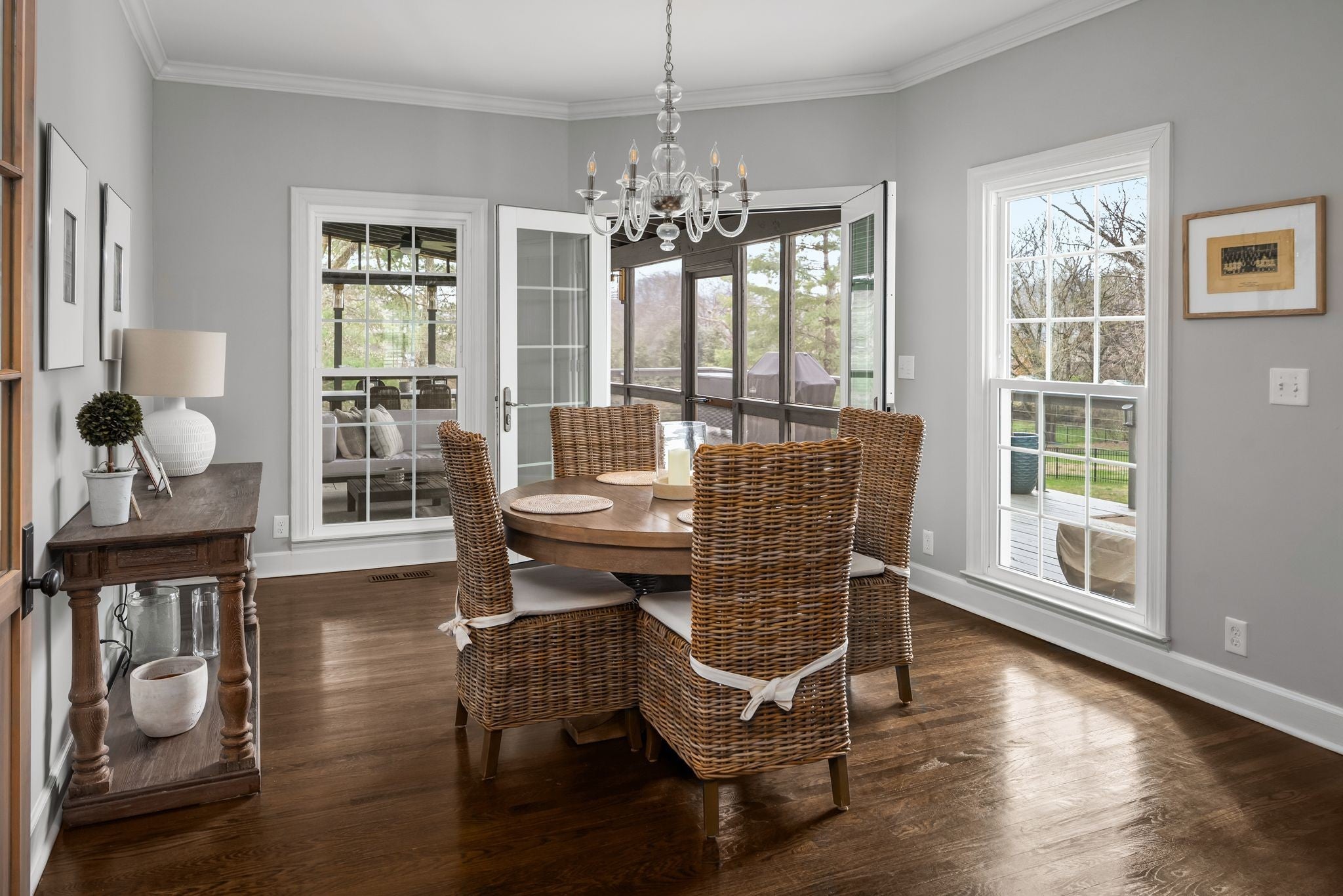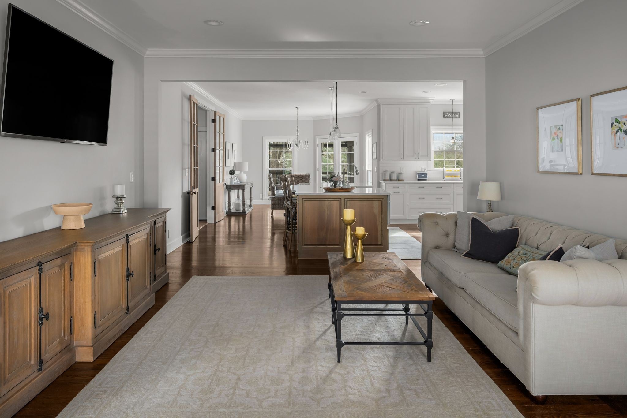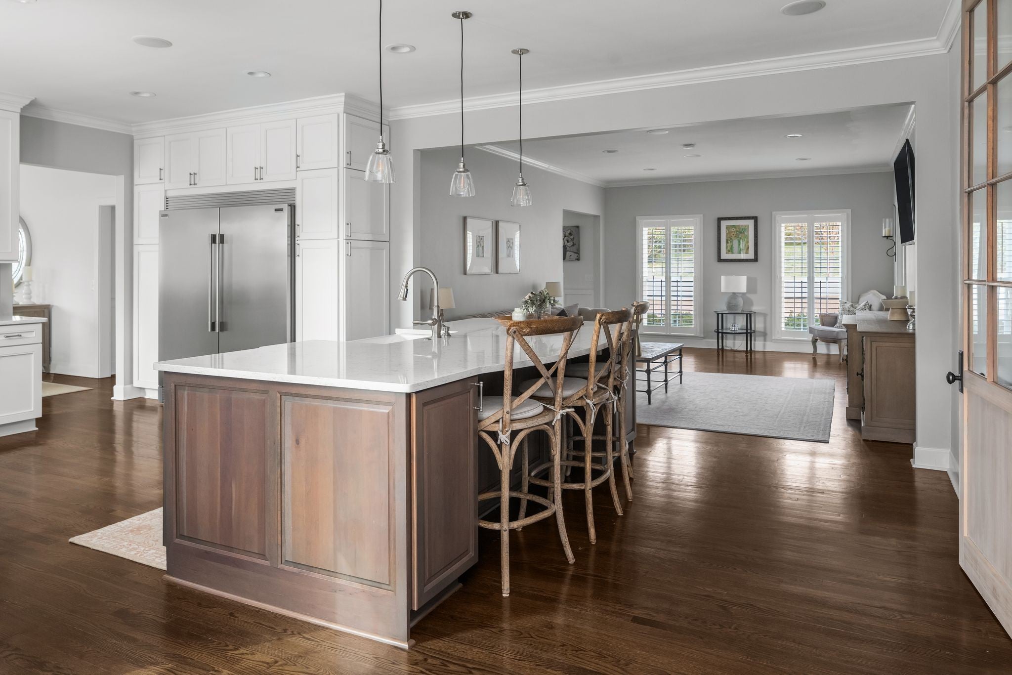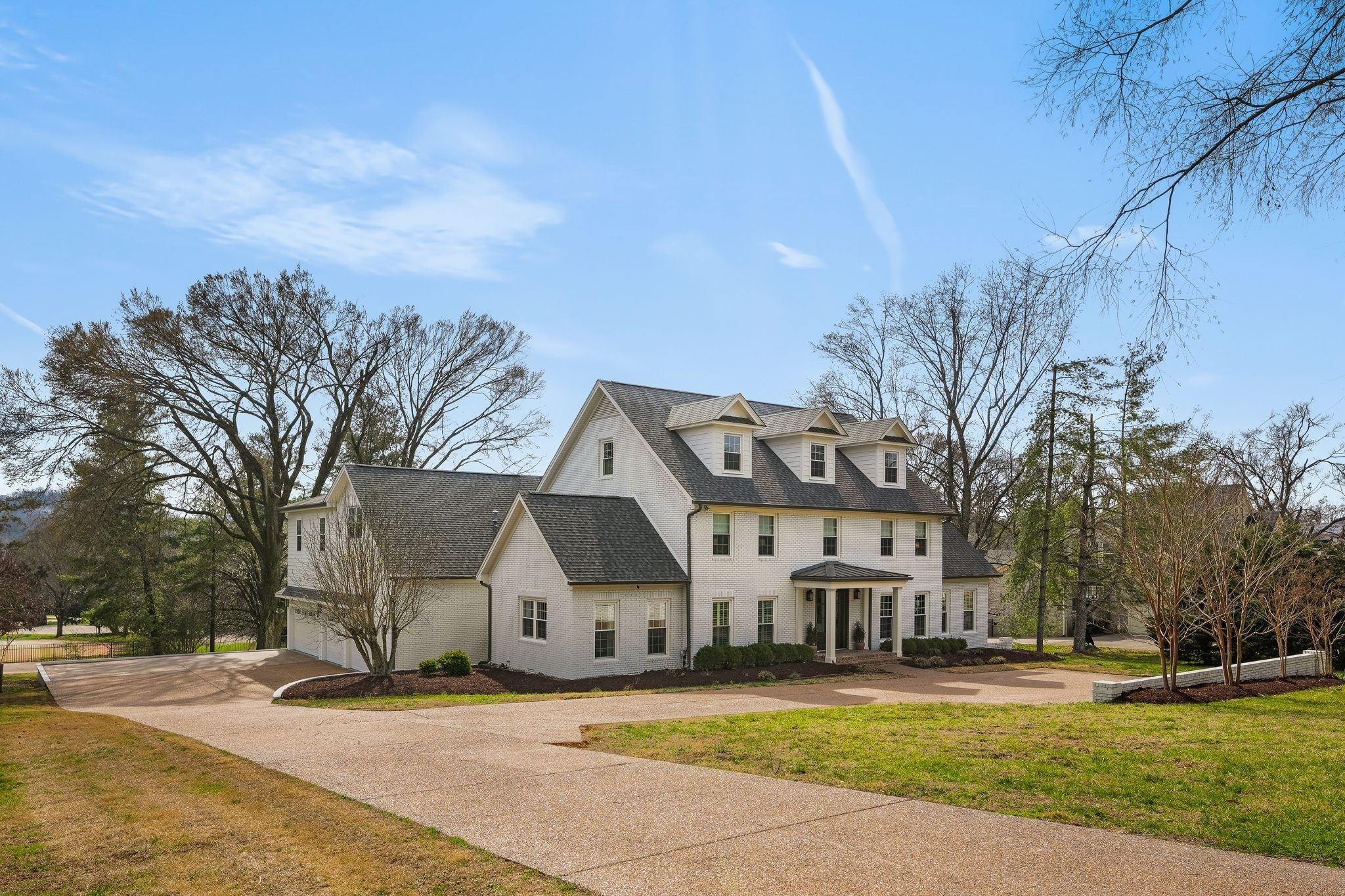 Southern Colonial inspired home with timeless architecture and classic symmetry located in Brentwood within Williamson County; this beautifully renovated and customized residence offers refined living with a magazine quality aesthetic and warm Southern appeal. Situated on 1.1 acres, a long private driveway sets the home back from the road, creating a sense of arrival and added privacy while enhancing its estate like presence. It blends modern design with timeless architecture, delivering a clean, transitional aesthetic with elevated finishes and a purposeful, functional layout. The main living spaces are anchored by a designer kitchen featuring high end appliances, custom cabinetry, and expansive surfaces ideal for both everyday living and entertaining. Notable upgrades include an expanded primary suite, expanded 1000 sq ft four car garage, all new appliances, and a freshly painted exterior finished in a clean, modern white exuding Southern charm. The primary suite is a true retreat, offering generous proportions, a spa inspired bath with high-end finishes, dual closets, and a dedicated workout room. Additional living areas include well-appointed guest bedrooms and an inviting media room, providing flexibility for both relaxation and entertainment. The home also has a 382 sq ft screened in porch and 768 sq ft wood deck. 1621 Old Hickory is a rare move-in ready home offering style, space, peace and convenience in one of Brentwood’s most desirable locations. *5th Bedroom is technically an office.