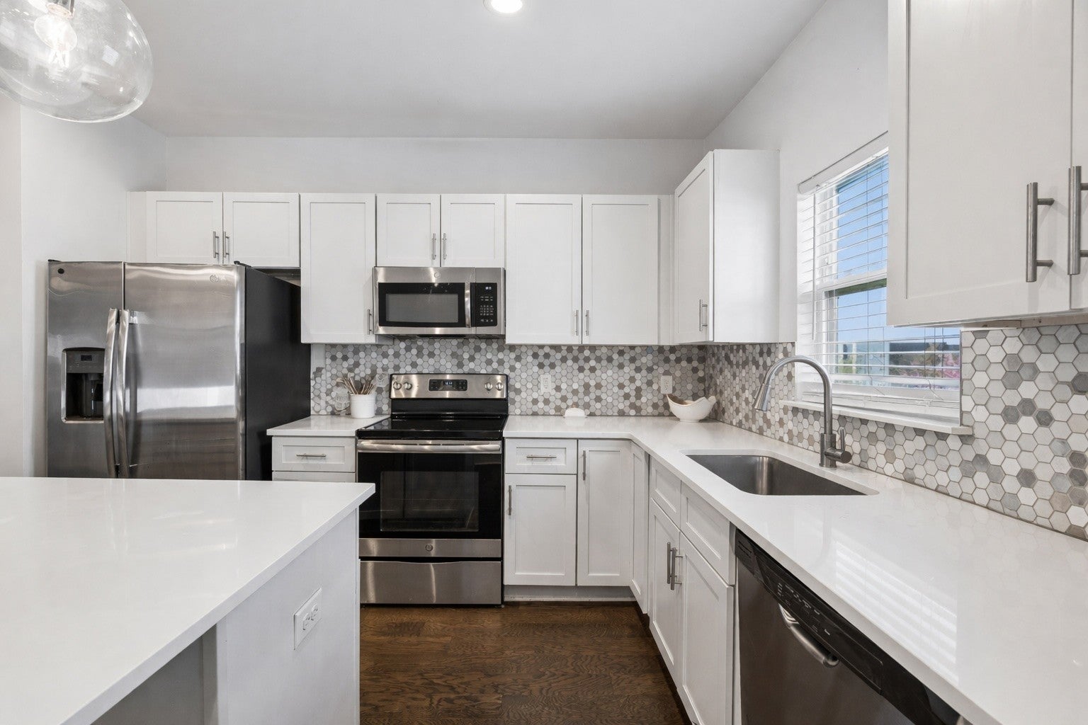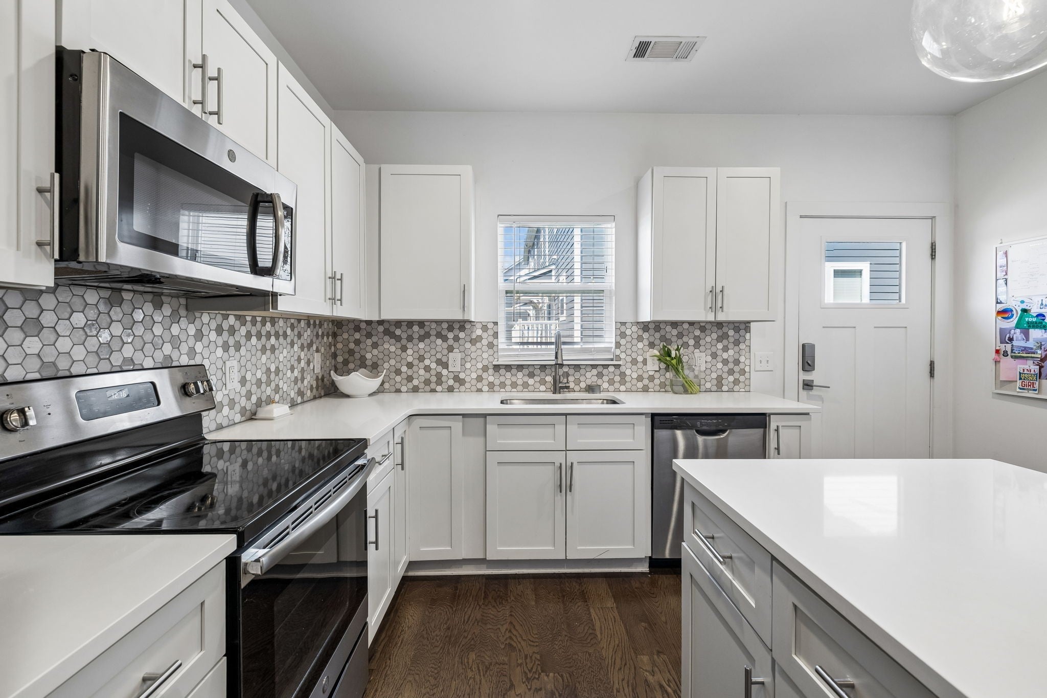 - Electric Range, Dishwasher, Disposal, Dryer, Microwave, Stainless Steel Appliance(s), Washer