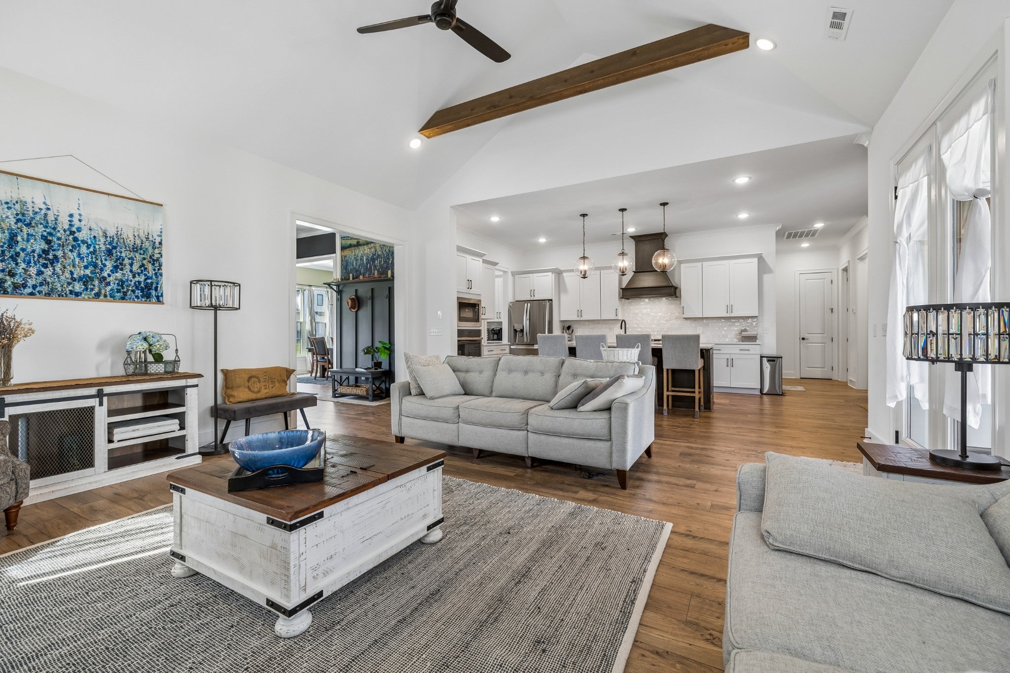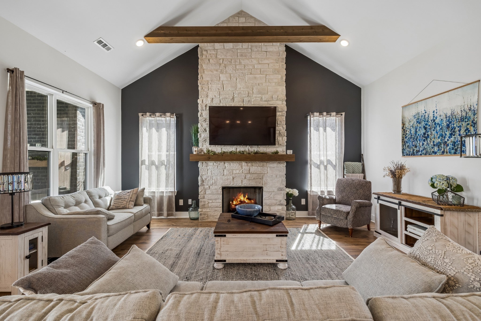 Luxury Farmhouse on Premium Oversized Creek Lot! This customized SMART home embodies an equal balance of function and beauty. Explore this luxurious like new construction home built in 2024 in the desired Clear Creek neighborhood. This stunning custom built 4BR/3.5 BA residence is a rare gem, perfectly situated on a large lot that backs up to a peaceful, flowing creek offering a private and serene backdrop. From the moment you step inside you'll be captivated by the meticulous attention to detail in every room. Designer accent walls, 10' ceilings and rich custom finishes create a feeling of warmth throughout. The heart of the home is the gourmet kitchen featuring quartz countertops, upgraded stainless appliances and high end cabinetry designed for both function and style. Retreat to the luxurious primary suite, where you will find a spa like experience with a stand alone soaking tub and a custom built tile shower a perfect place to unwind at the end of the day. Every bathroom and bedroom reflects thoughtful design and quality craftsmanship. With beautiful indoor living spaces and a backyard covered patio that connects you to nature, this home is ideal for both everyday comfort and entertaining. Don't miss your chance to own one of Clear Creeks most extraordinary homes. This Smart Home can be controlled by phone app while you are home or away! Encapsulated crawlspace for better air quality, moisture control, increased home value, energy efficiency. Schedule your private showing today! (Creek does not effect insurance, Home is NOT in a flood zone and does not require flood insurance. LOMAR Docs available). Preferred vendor CMG Jamie Steelman offering 1% buyer incentive!