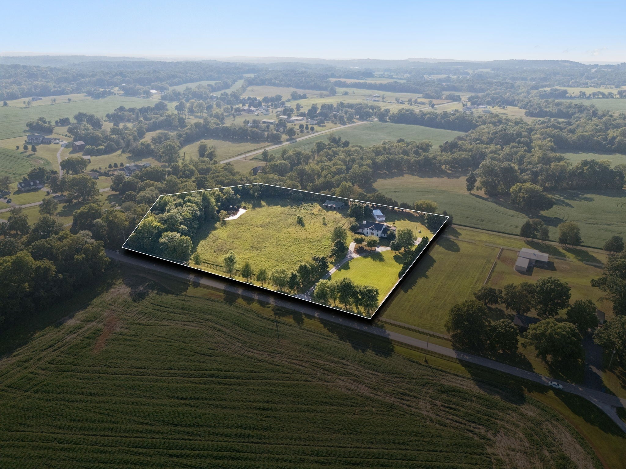 Discover the rare opportunity of owning this completely renovated 7.2 acre exceptional estate at 3935 Harmony Grove Road in picturesque Hopkinsville, KY. Your dream country retreat just a short drive to Hopkinsville or Lake Barkley, you can't beat this location! Walking in from the covered front porch you are greeted with an entry foyer leading to a vast open floor plan with exquisite views from every window. Encompassing approximately 3,440 square feet, this home is refined with top tier craftsmanship and modern luxury design. Featuring 5 spacious bedrooms and 3 luxurious bathrooms, it offers both space and style. Step into the gourmet kitchen, a chef's dream with designer lighting, custom cabinets, tile backsplash, granite countertops, farmhouse sink, a 6-burner gas range, double ovens and an expansive island complete with top-of-the-line stainless steel appliances. The open layout seamlessly connects to a living area adorned with an oversized fireplace and gleaming, sanded and finished hardwood floors. Retreat to the primary suite offering an expansive double walk-in closets, a stunningly renovated bathroom with dual vanity, separate freestanding bathtub and a beautifully tiled shower with frameless glass door, along with access to private deck vistas of the stunning 16 x 32 in-ground pool. The property boasts additional indulgences including a spacious utility room and tankless water heater. Spread across a generous 7 acres, the estate features four-board fencing ideally suited for horses, livestock, or farming with a picturesque pond, a barn with four stalls, and a five-bay utility shed. Enjoy the convenience of a long circular driveway, ample parking and a two car garage. Whether entertaining or relaxing, this home is a sanctuary where every detail has been thoughtfully designed to offer the very best in luxury living. This private estate is truly one of a kind in every way. Don't miss the opportunity to own a piece of paradise in the heart of Southwestern KY.