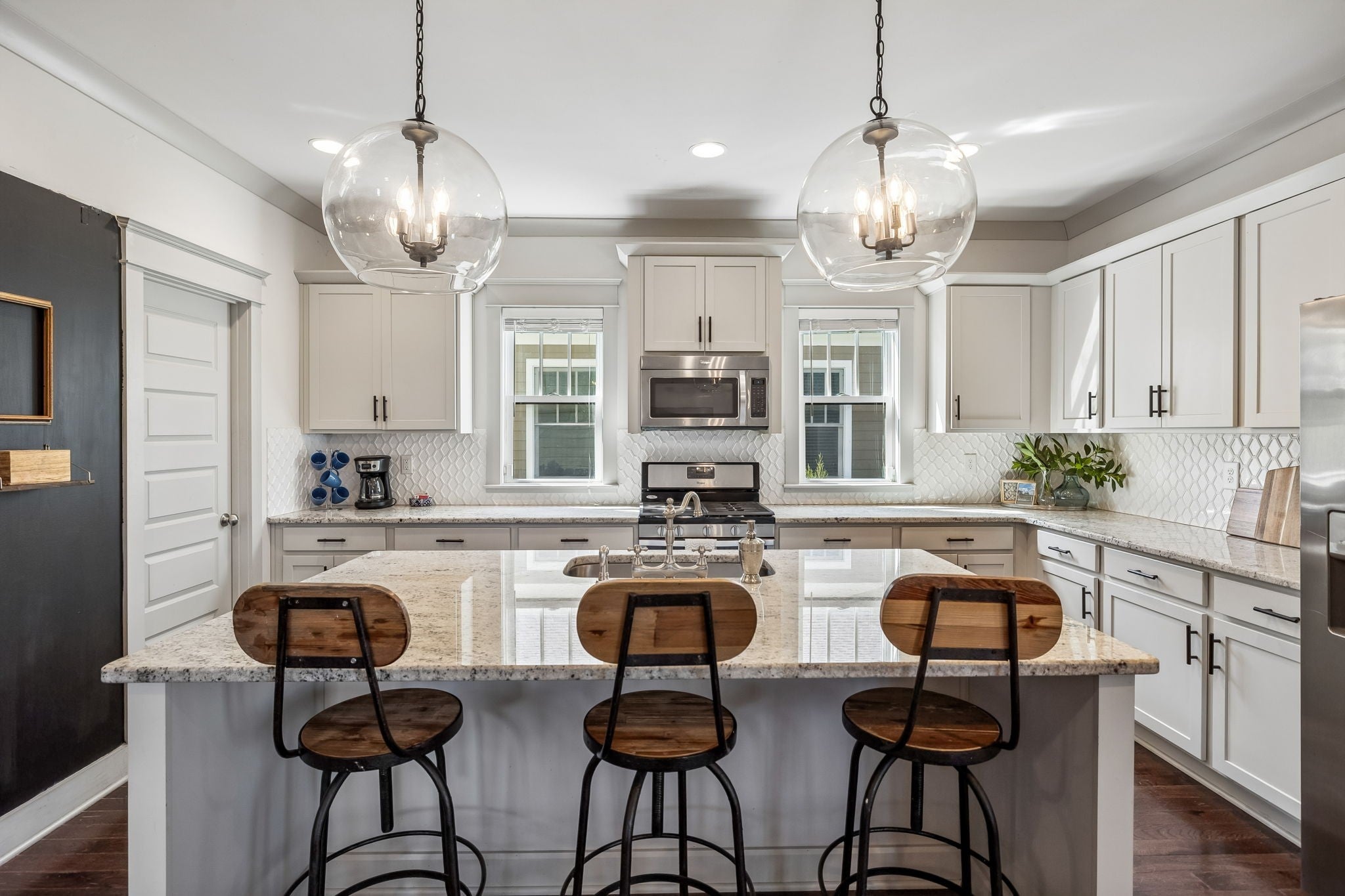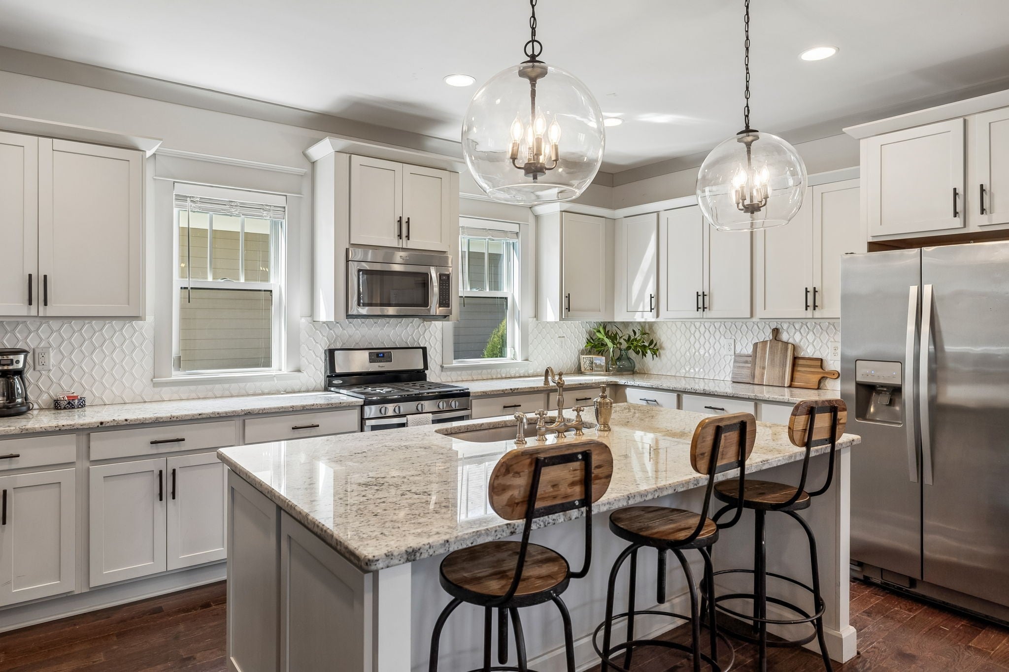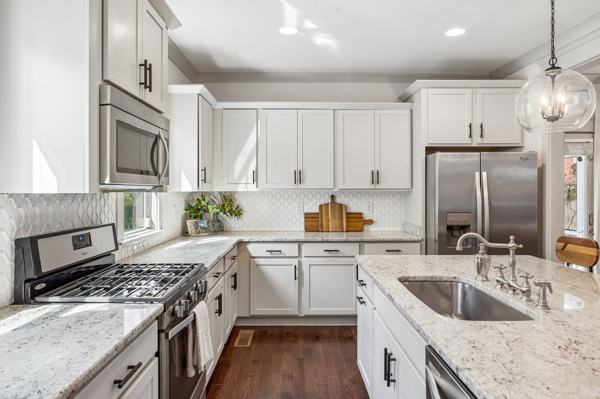 - Electric Oven, Gas Range, Dishwasher, Disposal, Dryer, Ice Maker, Microwave, Refrigerator, Stainless Steel Appliance(s), Washer