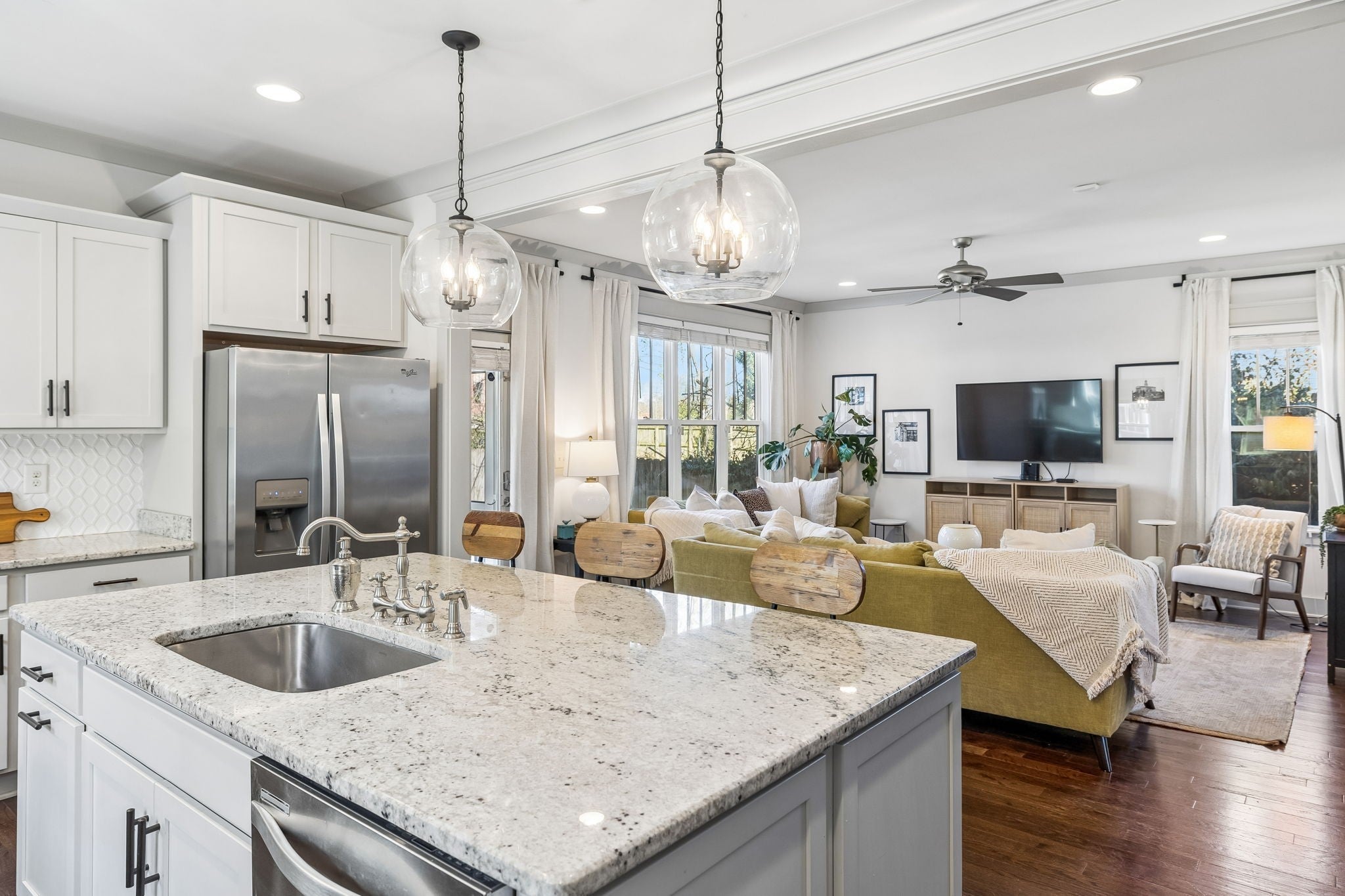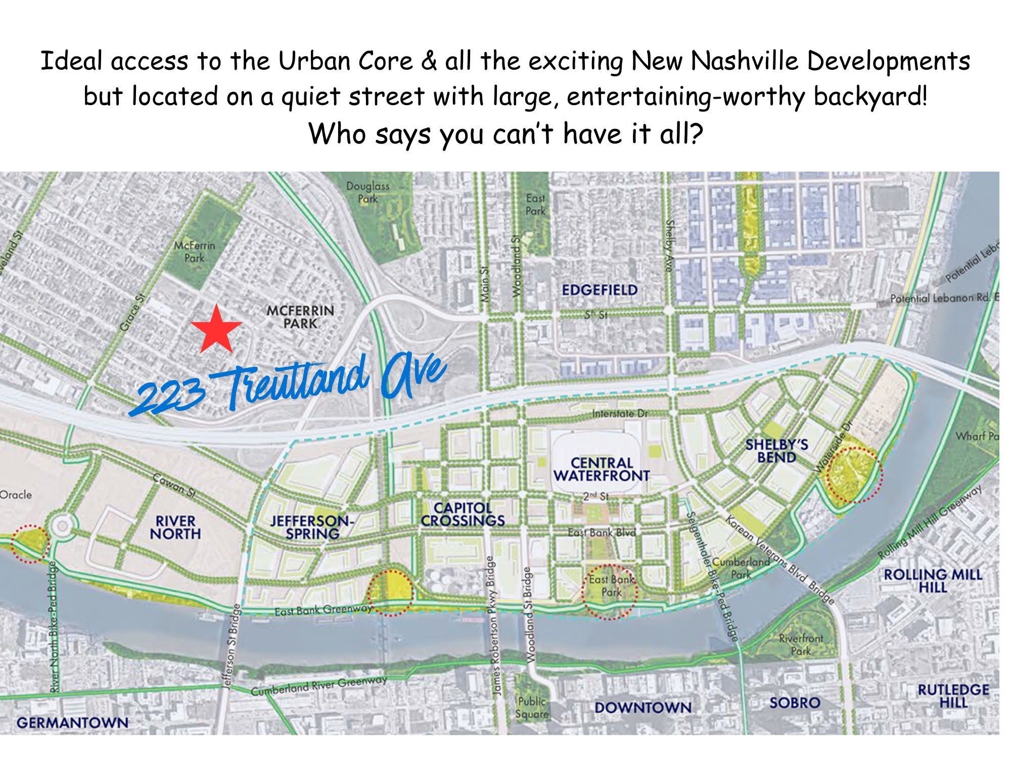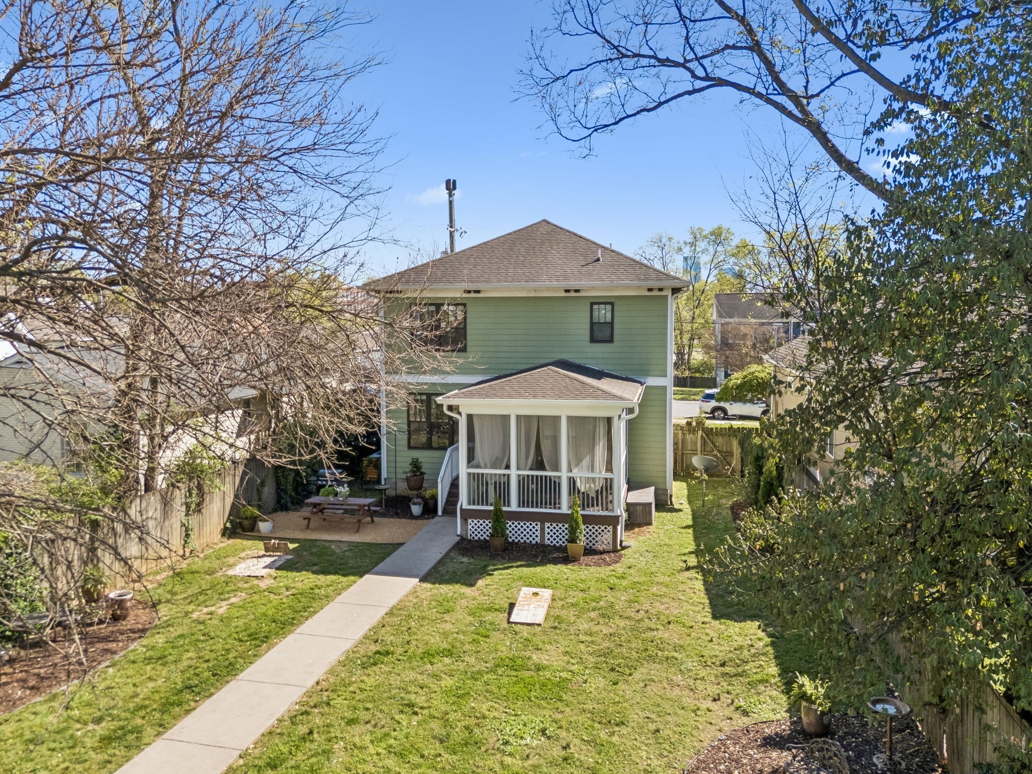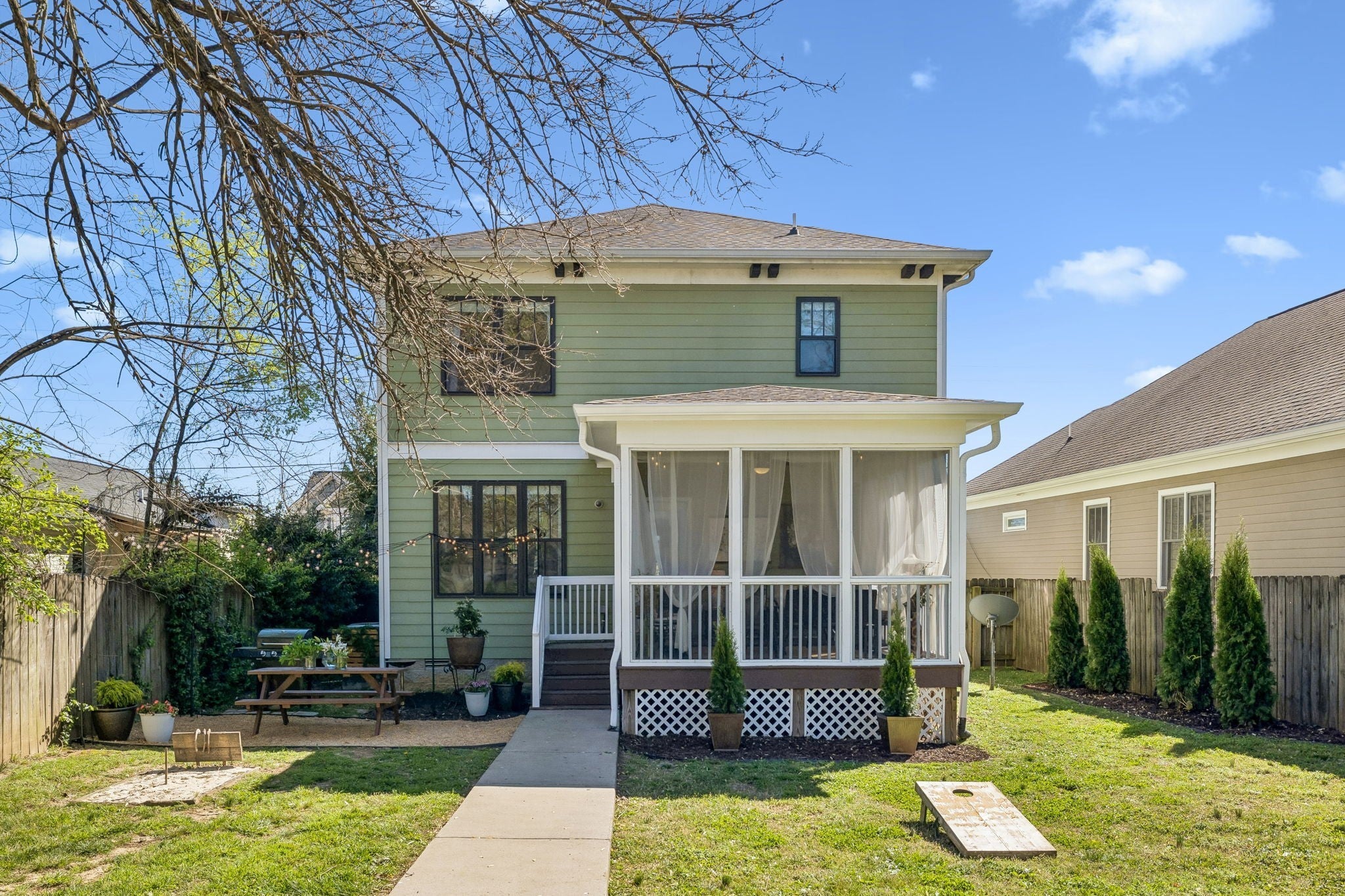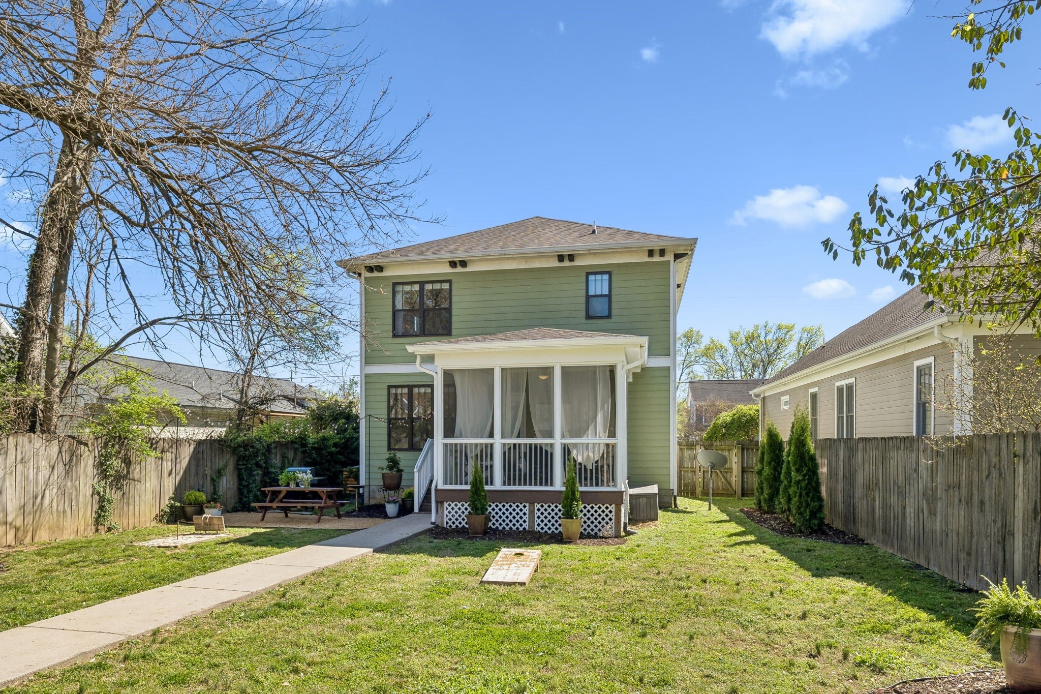 LOCATION + CHARM + FLEXIBILITY! ** Rare Craftsman Four Square just 1.5 miles to the East Bank development and 2 miles to downtown. Built in 2015, this home blends timeless historic character with modern construction and low-maintenance living. **4 bedrooms (all with quality constructed walk-in closets (no wire shelving) & 3 full baths- **Ensuite Bedrooms conveniently located on both main and second levels. Spacious 16’x14’ primary suite with oversized 14' walk-in closet and spa-like bathroom. Main-level flex room ideal for office or additional living space. **Open-concept kitchen and living area flows to a screened-in porch—perfect for entertaining. Hardwood floors and timeless finishes throughout. **Enjoy a fenced, park-like backyard with multiple gathering areas, fire pit, outdoor dining, and horseshoes. Large, paved parking pad. **Walk to neighborhood favorites like Redheaded Stranger, Folk, Xiao Bao, and Audrey- Only 1.3 miles to Nissan Stadium & less than 2 miles from East Bank Development/River North! **Zoned SP/OV-UZO and DADU eligible- Excellent potential for detached income-producing unit. **The home has been successfully utilized as a vacation rental during part of its ownership: with over 200 five-star guest stays on VRBO, this home has a proven track record of appeal and livability (vrbo.com/1040787). Furniture available for purchase via separate bill of sale. **Prime location, strong flexibility, and exceptional lifestyle opportunity!**