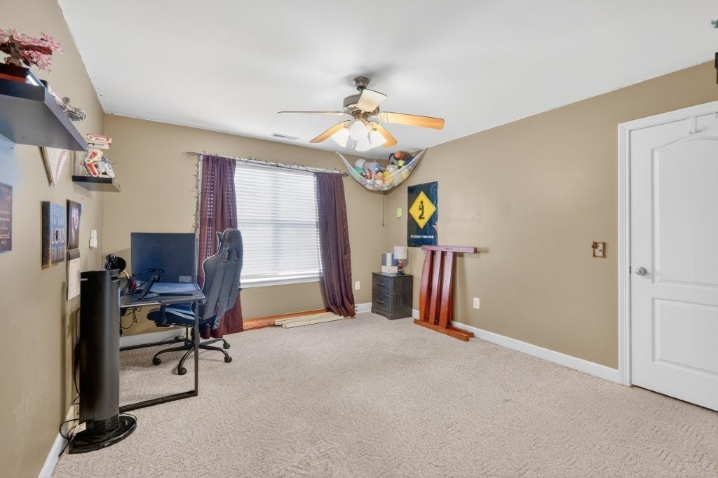 101 Hummingbird Lane Shelbyville - 3 BR 2.5 BA Brick home on +/- 1-acre lot in the lovely Union Heights development. On the main floor you will find the primary suite featuring tall ceiling, separate tub and shower, double vanities, large walk-in closet, Great room with tall ceiling and gas fireplace, all stainless appliances in the spacious kitchen with eating nook, separate dining room, home office and a functional laundry room. Upstairs, there are two more bedrooms, a bathroom plus a generously-appointed bonus room that could double as a 4th bedroom. 2-car attached garage, Concrete driveway, and spacious yard.