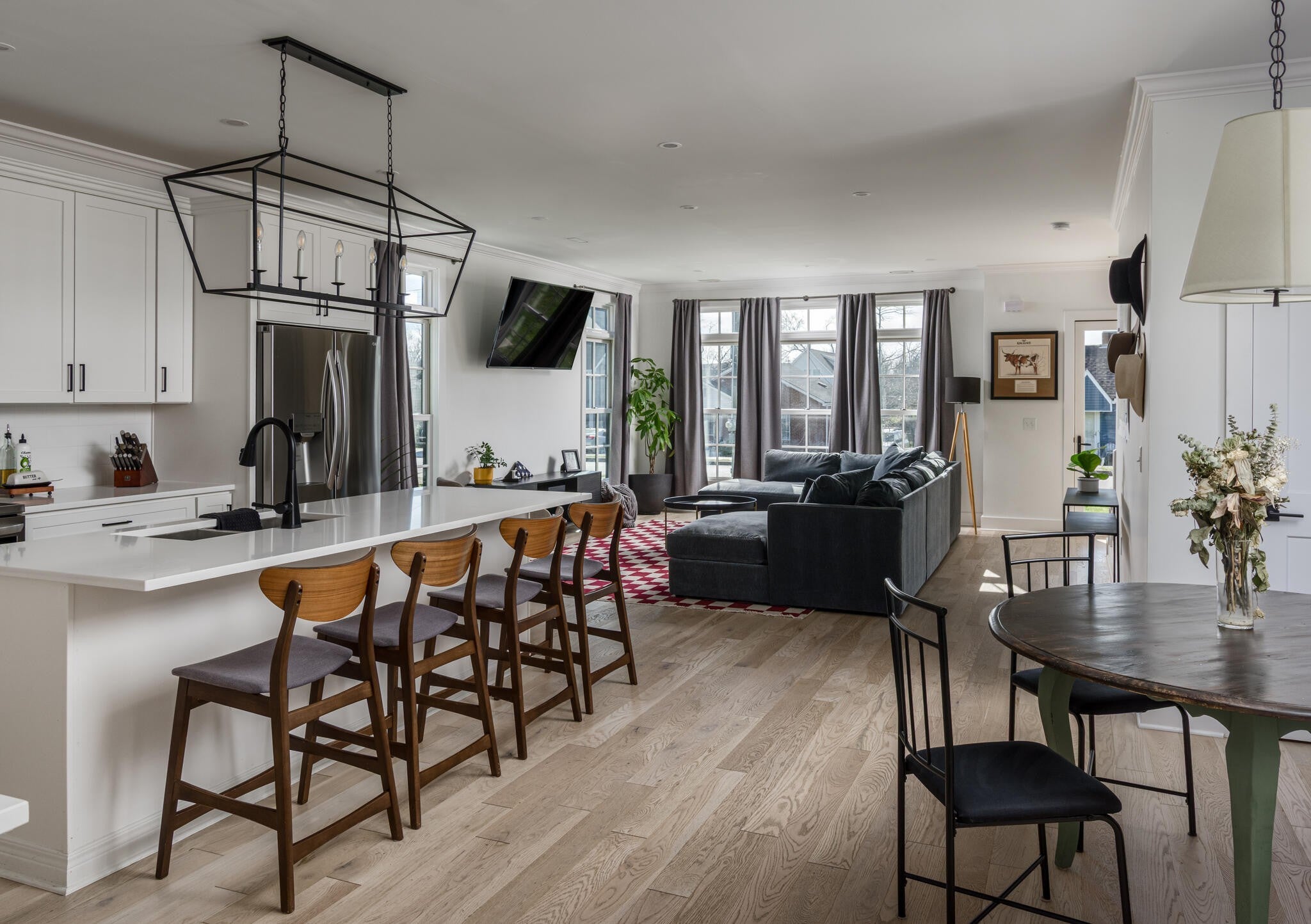 Minutes from Germantown and Downtown, this North Nashville home offers modern living. You’re close to city highlights and a short walk from a public park. Whether hosting around the kitchen island or relaxing in the breakfast nook, the layout fits everyday life. Durable flooring and tiled baths add low-maintenance style, while upstairs bedrooms offer flexible work-from-home space. Out back, a private patio overlooks the spacious nearly quarter-acre yard and private driveway.