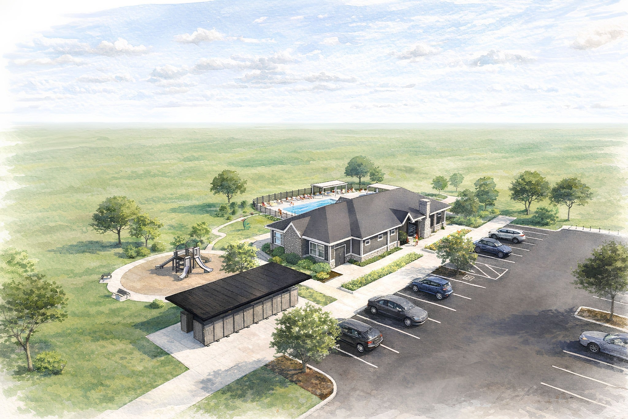 - Clubhouse, Dog Park, Playground, Pool, Sidewalks, Underground Utilities, Trail(s)