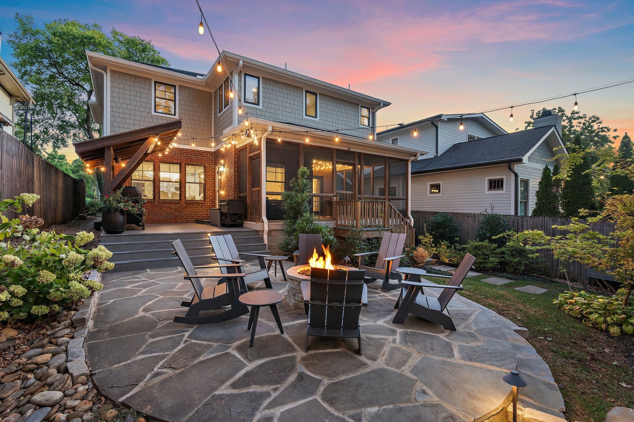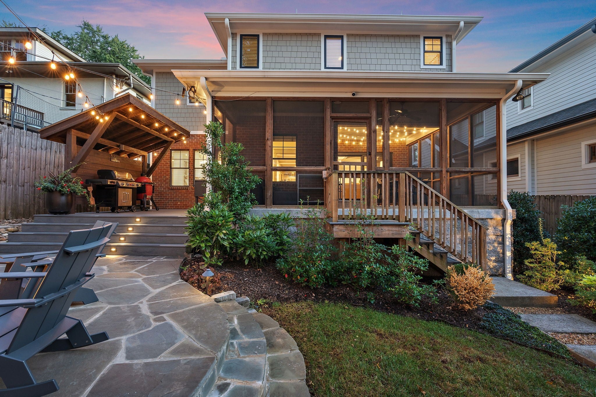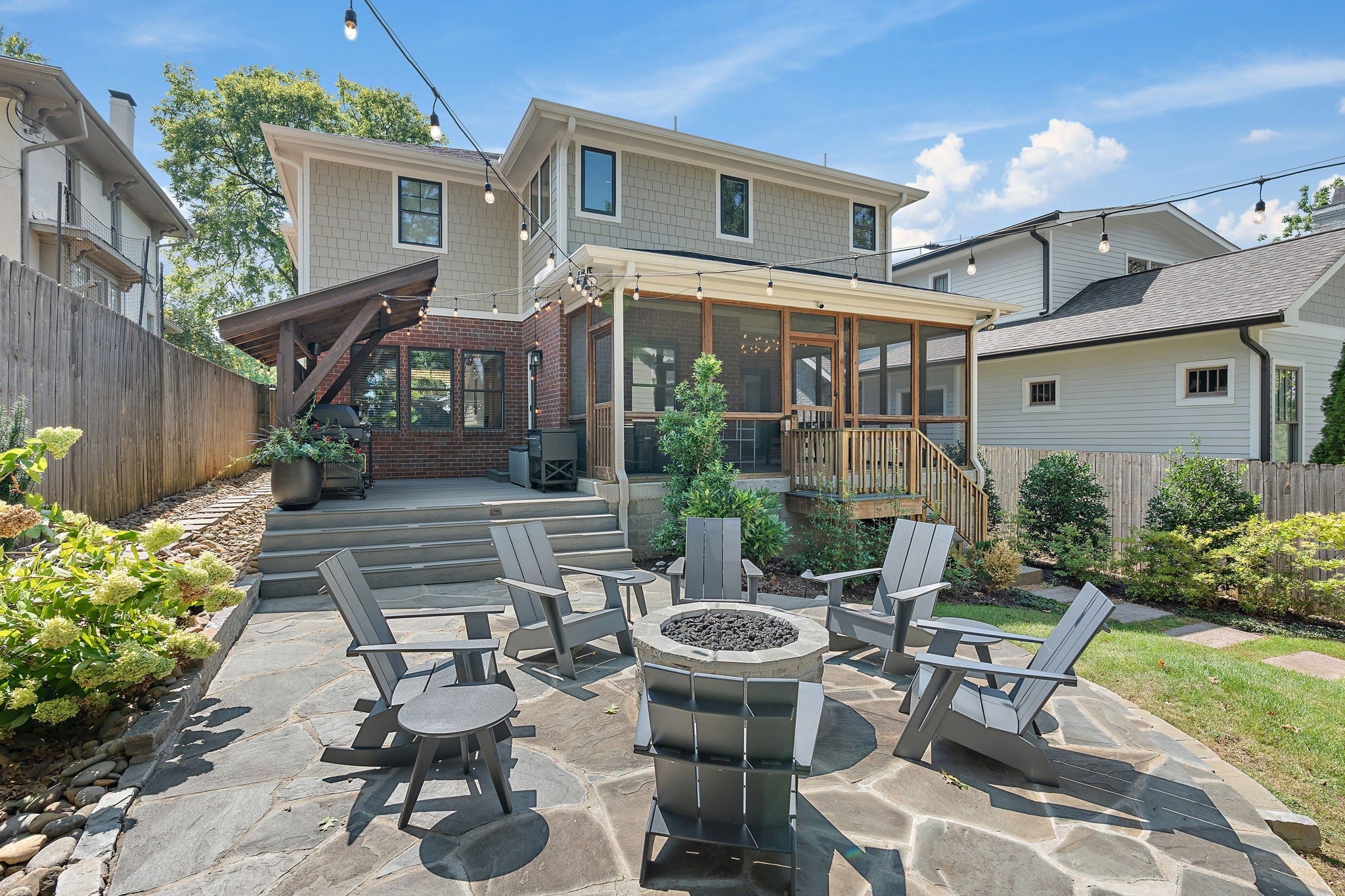 Timeless style meets Designer refinement! Nestled in the heart of the supremely walkable Belmont-Hillsboro neighborhood, this elegant home embodies the best of urban living -- classic architecture, elevated interiors, and modern functionality. A traditional Foursquare floorplan with a wide front porch, this home blends enduring character with over $300,000 in curated updates led by Slatton Interior Design. This home is 100% move-in ready and you won't have to touch a thing; the craftsmanship and immaculate care are unmistakable. Lush landscaping by Gardens of Babylon sets the tone, with stone patio and gas firepit, Trex decking, grill patio, and full front-and-back irrigation. Inside, light and texture play across every detail. The living room’s coffered ceiling and new fireplace with artisanal tile and gas logs create a warm focal point, while the chef’s kitchen offers both beauty and function with GE Monogram double ovens, Frigidaire Professional side-by-side fridge/freezer, and dual prep spaces including a butler’s pantry and walk-in pantry. Step into the Speakeasy Bar--an unforgettable statement of bespoke craftsmanship, complete with custom cabinetry, luxe wallpaper, velvet drapery, bar sink & more-truly an entertainer's dream space! Gathering spaces continue outdoors with a screened porch, covered outdoor grill area, multiple spots designed for relaxation & entertaining in any season. Completing the property is a rare, extra-large Detached Dwelling Unit (DADU) — ideal for guests, a private office, music studio, au pair/in-law suite or home fitness. Every element of this home has been thoughtfully considered, creating the perfect in-town oasis literally steps from dozens of restaurants, shops & parks, and minutes to Vanderbilt University/Vanderbilt University Medical Center, 12South, Green Hills & Downtown. Zoned Eakin Elementary! Home is 3,737 sft, DADU is 422 sft, total 4159=$601/sqft. **Be sure to see the Residence Portfolio Magazine in Links**