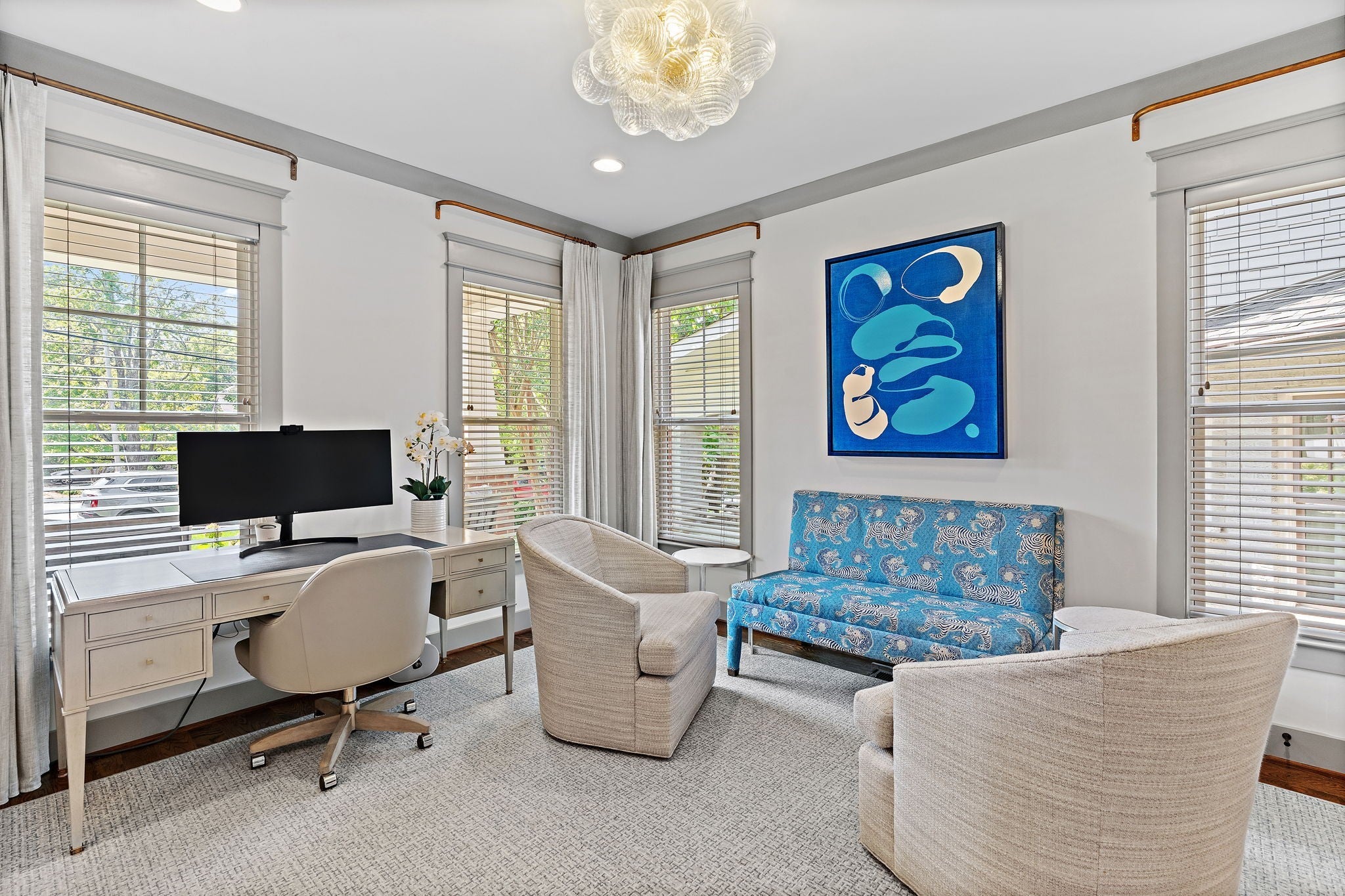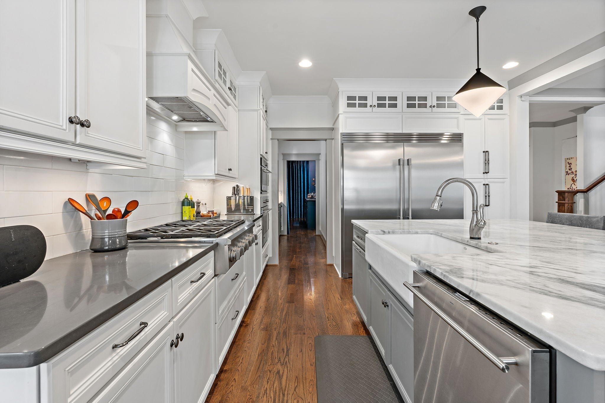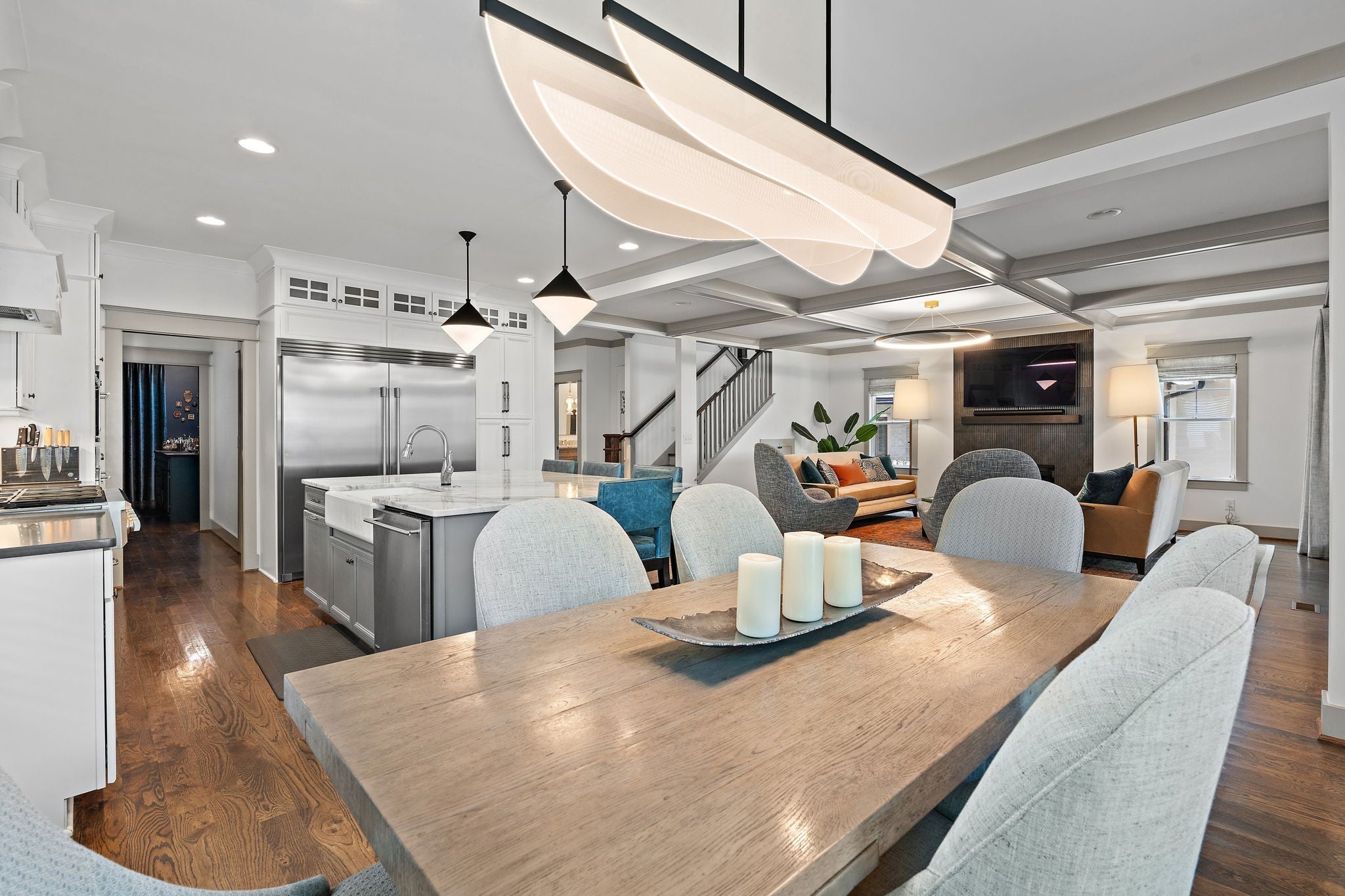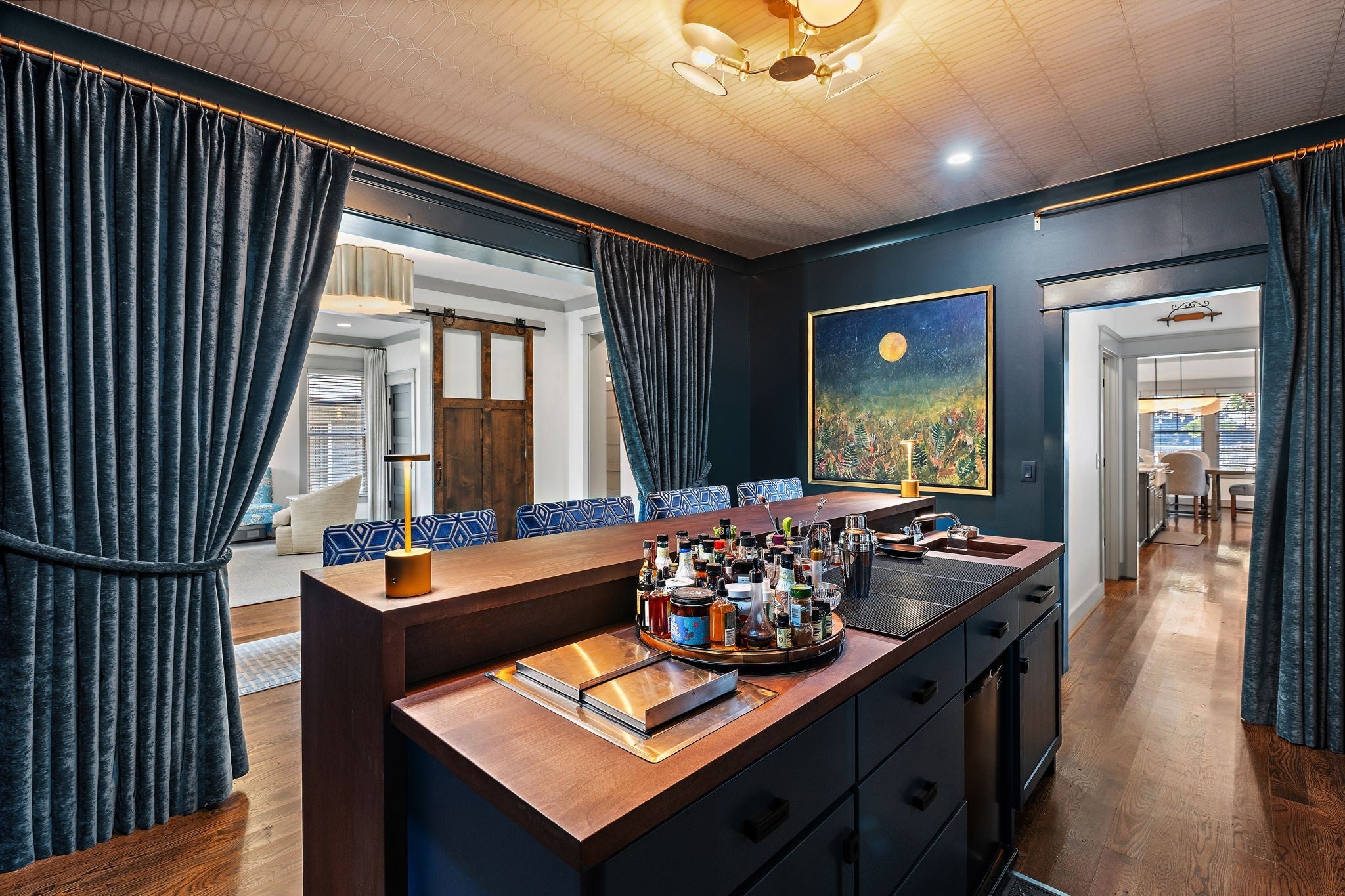 Timeless style meets Designer refinement! Nestled in the heart of the supremely walkable Belmont-Hillsboro neighborhood, this elegant home embodies the best of urban living -- classic architecture, elevated interiors, and modern functionality. A traditional Foursquare floorplan with a wide front porch, this home blends enduring character with over $300,000 in curated updates led by Slatton Interior Design. This home is 100% move-in ready and you won't have to touch a thing; the craftsmanship and immaculate care are unmistakable. Lush landscaping by Gardens of Babylon sets the tone, with stone patio and gas firepit, Trex decking, grill patio, and full front-and-back irrigation. Inside, light and texture play across every detail. The living room’s coffered ceiling and new fireplace with artisanal tile and gas logs create a warm focal point, while the chef’s kitchen offers both beauty and function with GE Monogram double ovens, Frigidaire Professional side-by-side fridge/freezer, and dual prep spaces including a butler’s pantry and walk-in pantry. Step into the Speakeasy Bar--an unforgettable statement of bespoke craftsmanship, complete with custom cabinetry, luxe wallpaper, velvet drapery, bar sink & more-truly an entertainer's dream space! Gathering spaces continue outdoors with a screened porch, covered outdoor grill area, multiple spots designed for relaxation & entertaining in any season. Completing the property is a rare, extra-large Detached Dwelling Unit (DADU) — ideal for guests, a private office, music studio, au pair/in-law suite or home fitness. Every element of this home has been thoughtfully considered, creating the perfect in-town oasis literally steps from dozens of restaurants, shops & parks, and minutes to Vanderbilt University/Vanderbilt University Medical Center, 12South, Green Hills & Downtown. Zoned Eakin Elementary! Home is 3,737 sft, DADU is 422 sft, total 4159=$601/sqft. **Be sure to see the Residence Portfolio Magazine in Links**