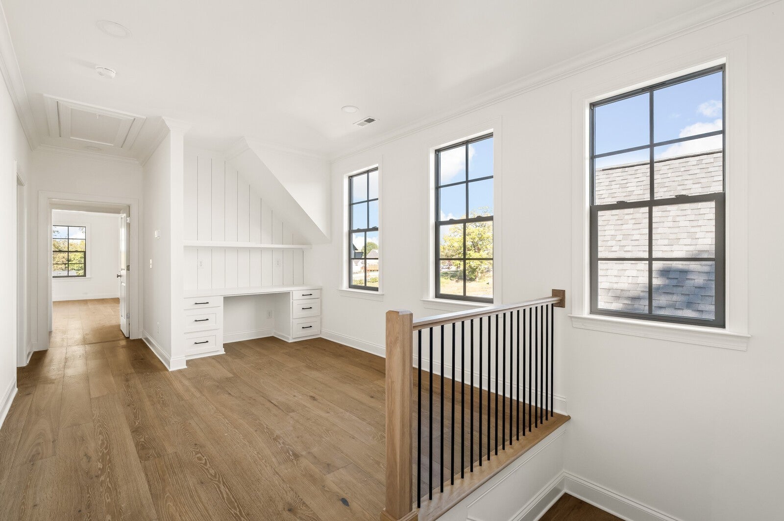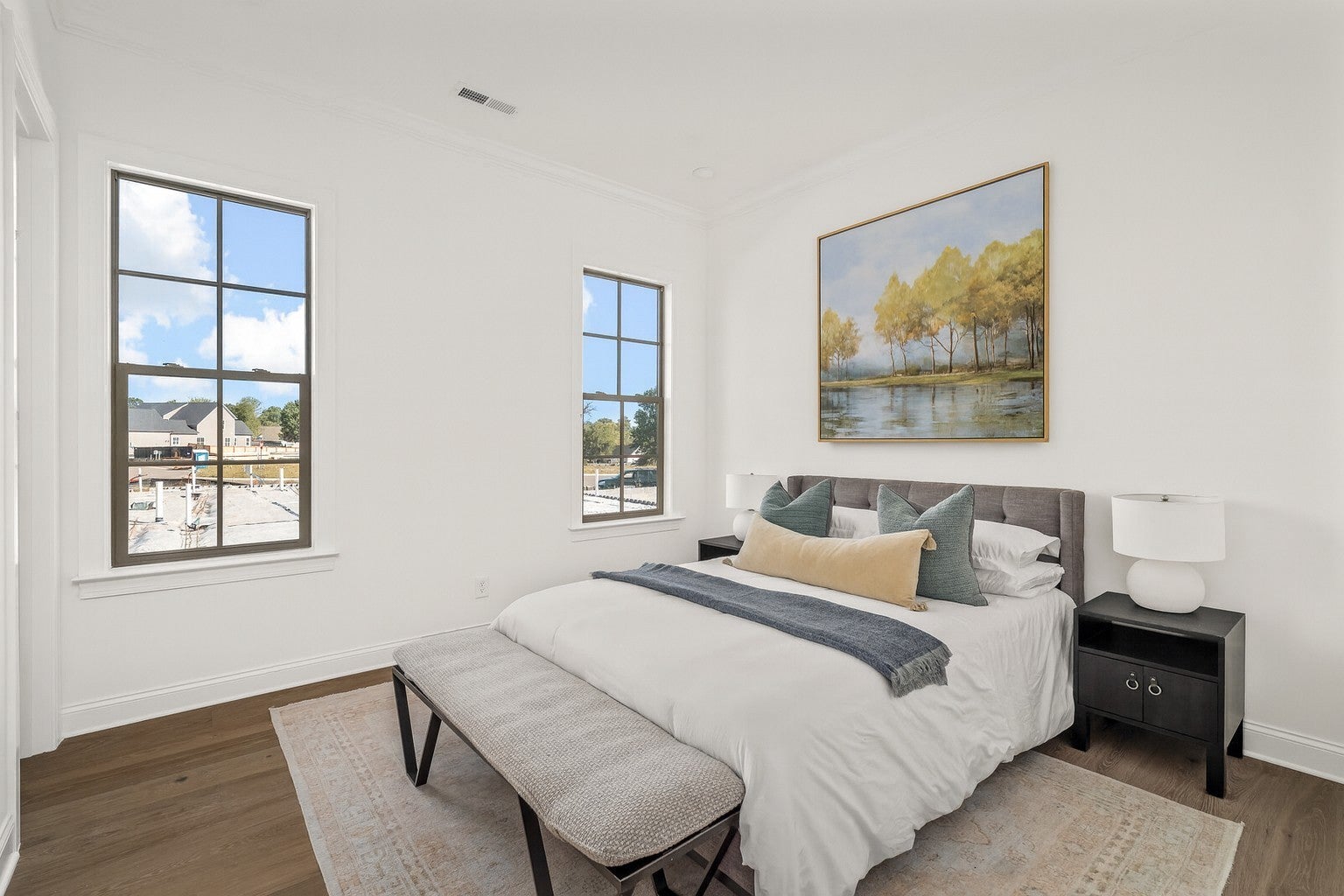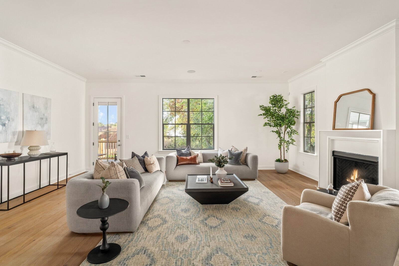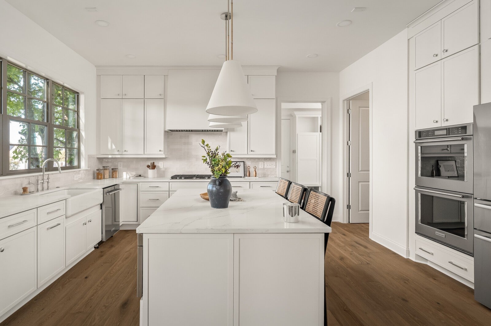Welcome home! This stunning new construction home is thoughtfully designed for luxury, comfort, everyday functionality and accessible living. Effortless step-free entry through the grand foyer that flows seamlessly into an expansive open-concept living, dining, and kitchen area—anchored by a striking fireplace and opening to a screened in porch and private backyard, ideal for year-round entertaining. The main level features two spacious bedrooms, including an elegant owner’s suite with vaulted ceilings, a large walk-in closet, and a soaking tub—your own private retreat at the end of the day. The kitchen showcases high-end KitchenAid appliances, double ovens, a 36” Kohler sink, and custom cabinetry complemented by quartz and stone countertops. A walk-in pantry provides ample storage and convenience. Nearby, the spacious laundry room includes additional cabinetry, while the mudroom offers built-in cubbies and cabinetry for effortless organization. The back yard is fully fenced in, flat with irrigation and sod. Upstairs, discover flexible living options with an additional office space and a large bonus space that can serve as a fifth bedroom, complete with a Jack-and-Jill bath. Custom built-ins and detailed craftsmanship continue throughout the home, enhancing both style and functionality. Additional features include European white oak flooring throughout the entire home, whole house woven blinds, designer lighting, and a spacious two-car garage with epoxy floors, all situated in one of Spring Hill’s most desirable communities—just minutes from June Lake and top-rated Williamson County schools.