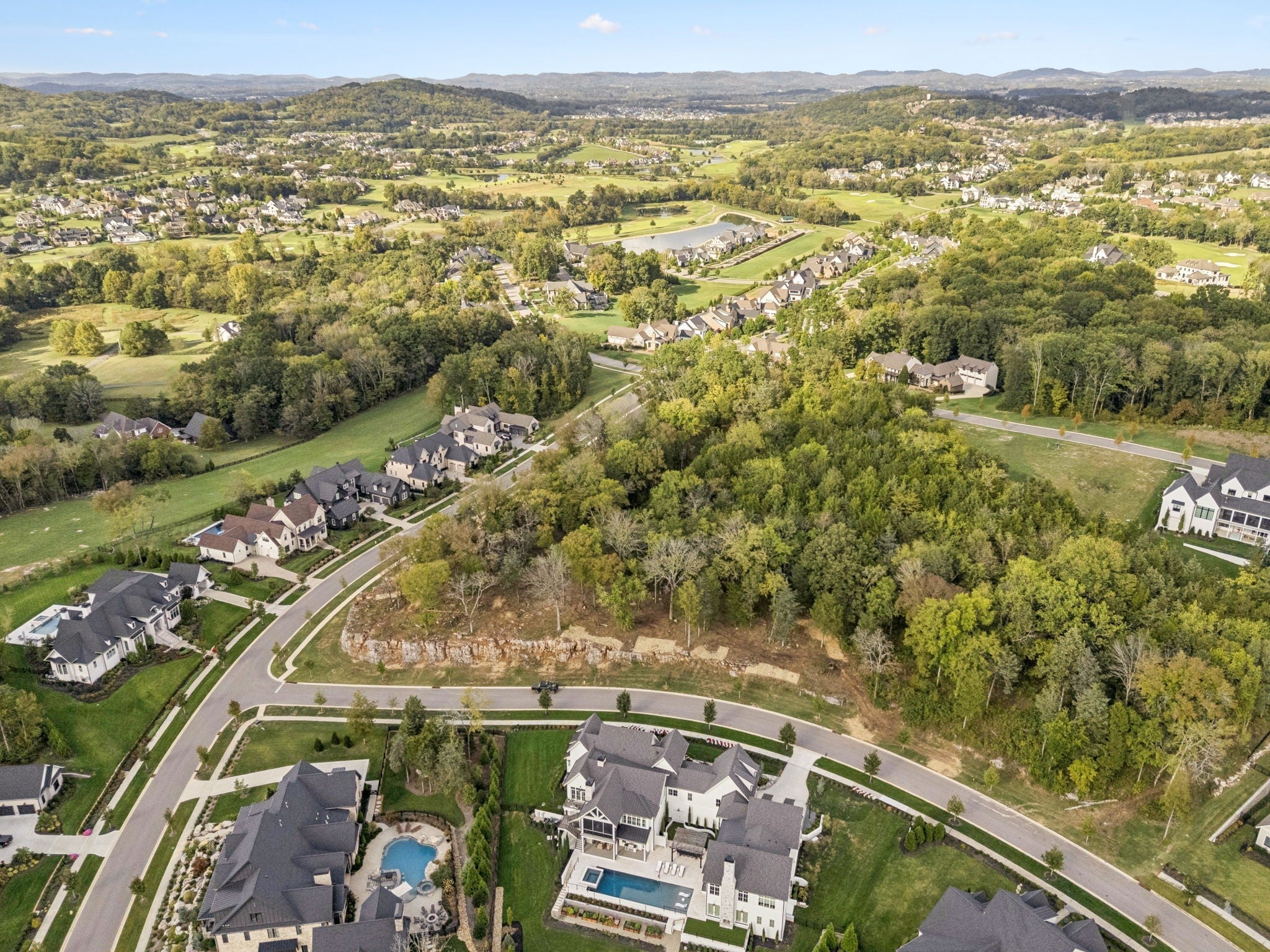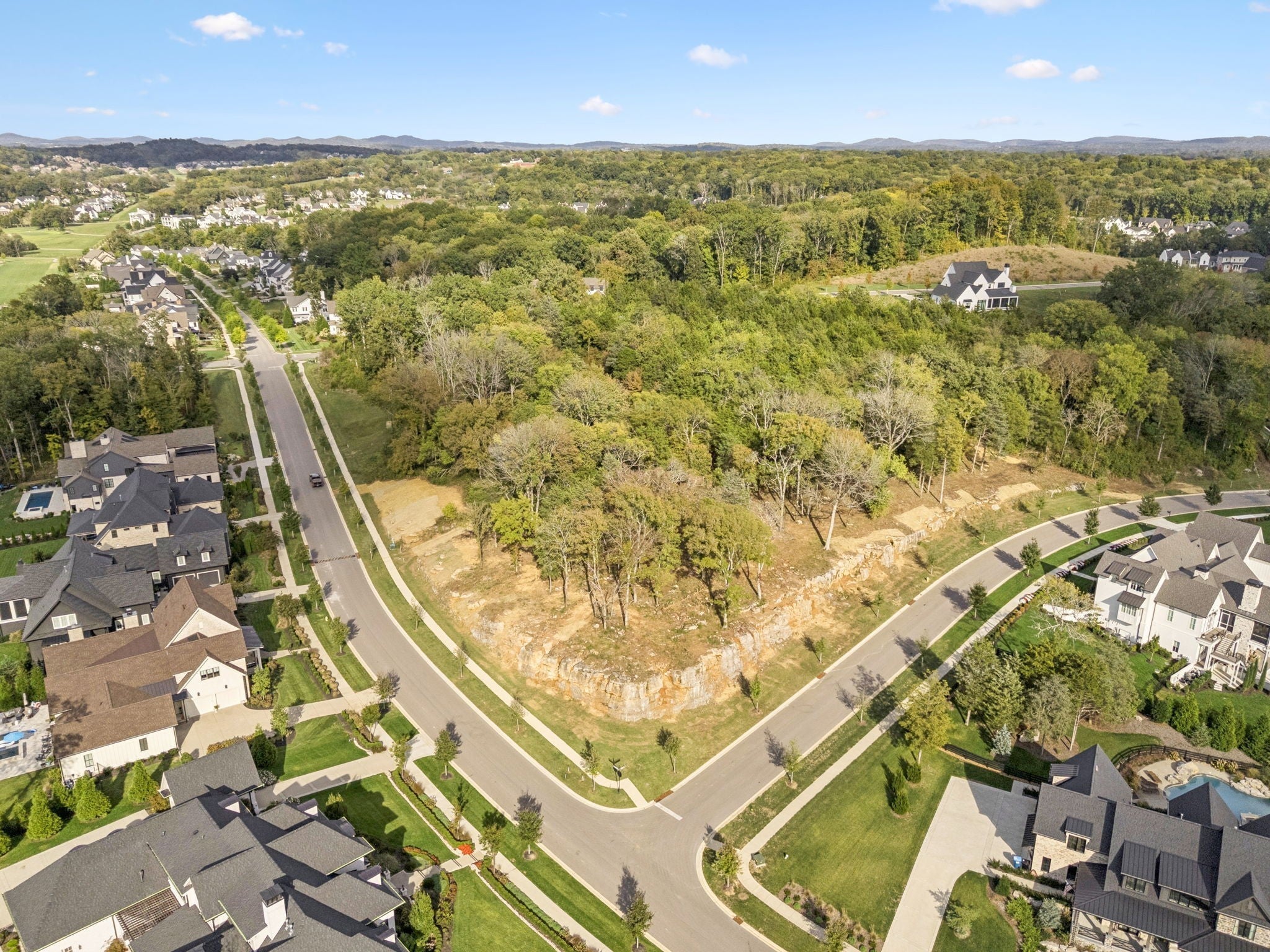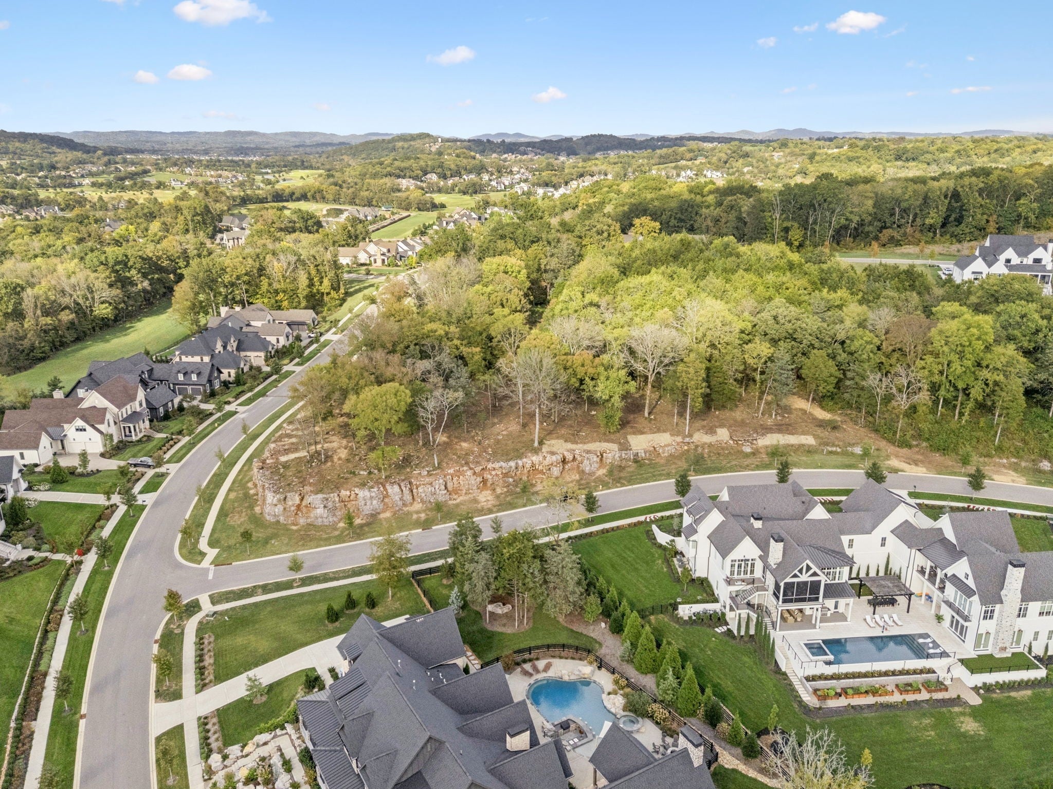 This one-of-a-kind 1.0-acre homesite offers unmatched privacy and panoramic views. Perched approximately 20 feet above the road, the property features a private driveway carved through the natural stone ledge, creating a dramatic and secluded entry. A dedicated green space easement behind the homesite provides a permanent buffer, ensuring additional privacy and separation from neighbors. From the homesite itself, enjoy nearly 270 degrees of breathtaking views — a rare opportunity to design a home that fully embraces its surroundings. Schedule your private tour today and experience this extraordinary property for yourself.