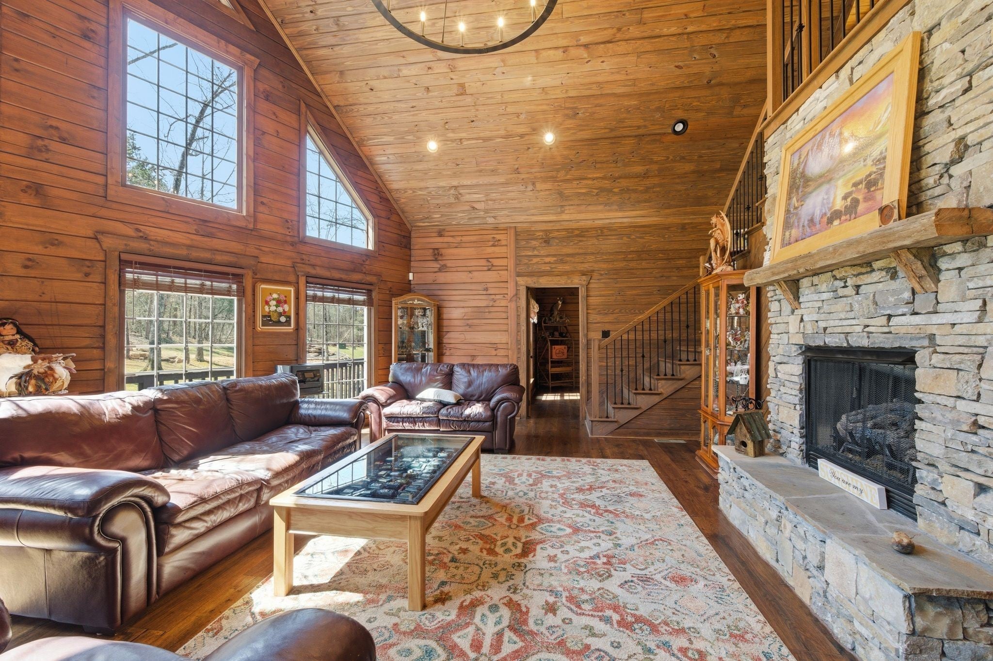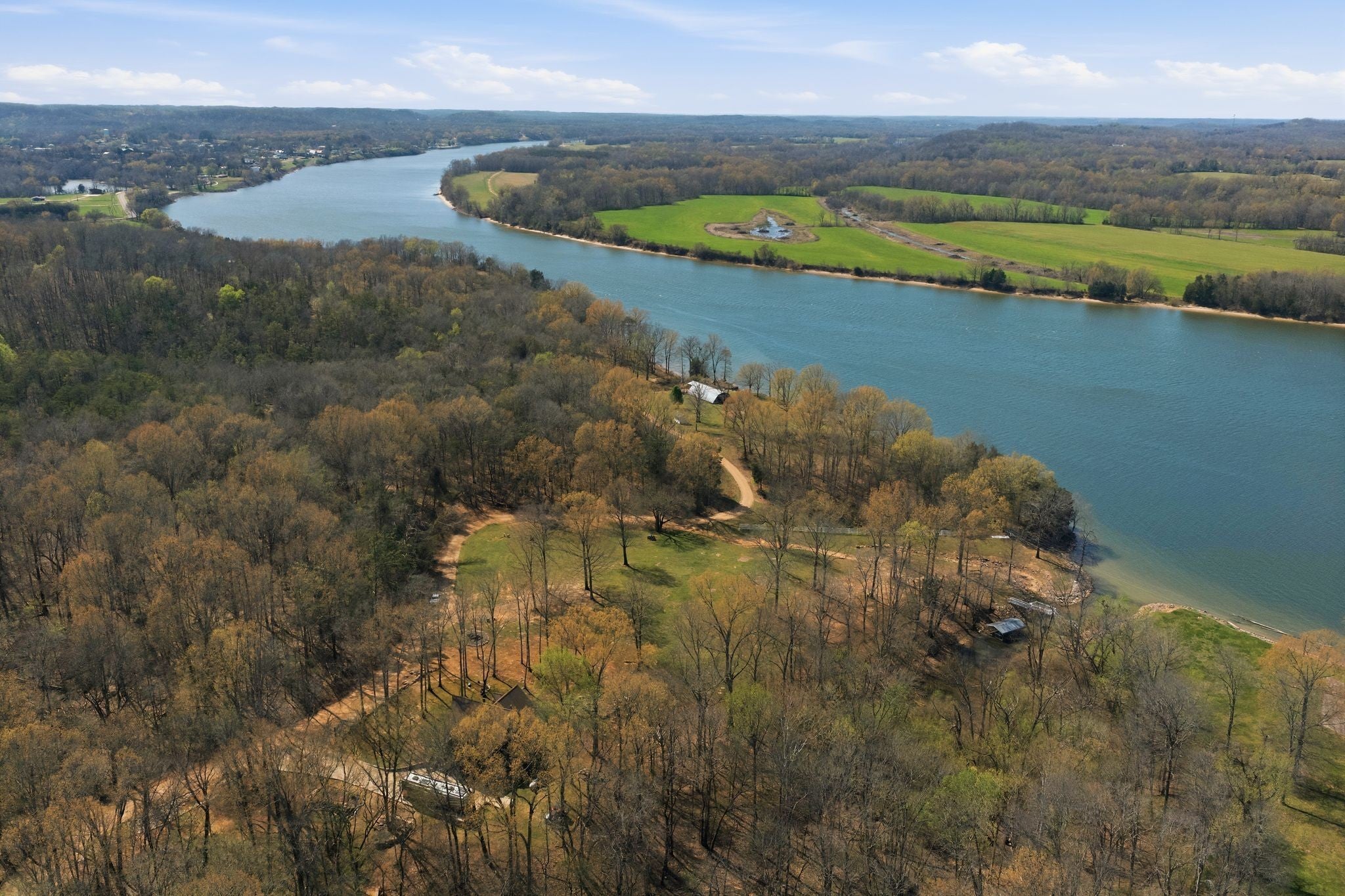 Discover a rare Tennessee Riverfront opportunity at 1118 Carrollville Landing Rd in Clifton, TN, featuring over 350 feet of river frontage (legendary fishing), multiple building sites, & a stunning log home designed for comfort & versatility. This property offers the perfect blend of natural beauty, functional land, & a spacious residence ideal for full-time living, a retreat, or investment potential. The property includes pastureland & a shop/barn with concrete slab & electric. Gorgeous landscaping showcases natural rock sourced from the area, complemented by a concrete driveway (50 amp RV hookup) and underground utilities for a clean, polished look. The impressive two-story log home w/ full finished basement features 6 bdrm 4 baths. The main level offers two master suites, each with full ba and walk-in closets, providing convenience and privacy. Cathedral ceilings and a gas fp create a warm and inviting living space, while the fully applianced kitchen includes an island and pantry for added functionality. Enjoy outdoor living with a front deck & covered back deck, perfect for taking in the peaceful surroundings. The upper level includes two bdrms, one with private full ba & walk-in closets, plus a sitting area with a door leading to a balcony overlooking the property. The finished basement expands the living space w/ a safe room, exercise room (weight machine remains), one full ba, utility room, and additional rooms that can serve as bdrms or flex spaces. A two-car attached garage adds convenience. Add'l features include three separate HVAC units for each level, a newer roof (approximately 2 years old), gutters with underground drainage, city water, city sewer, & high-speed internet. Property consists of two tracts (Map 032 Parcel 001.26 & 001.30). The additional parcel, located in Carrollville Estates, adjoins the community boat ramp, adding even more value and accessibility to river life.Close to Clifton Marina, Eagle Creek WMA, Ross Creek Landing Golf Course