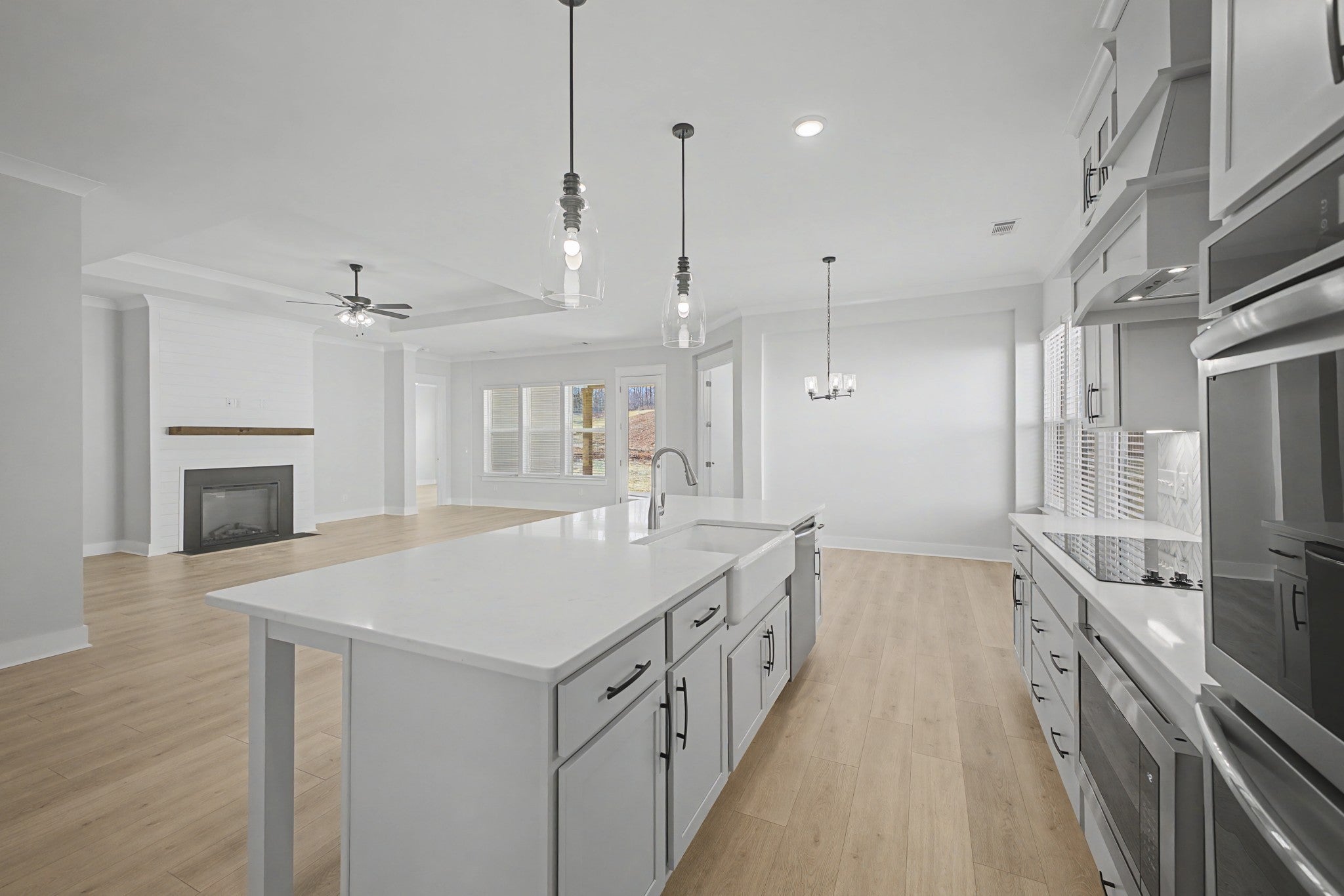 - Built-In Electric Oven, Cooktop, Dishwasher, Disposal, Microwave, Stainless Steel Appliance(s)