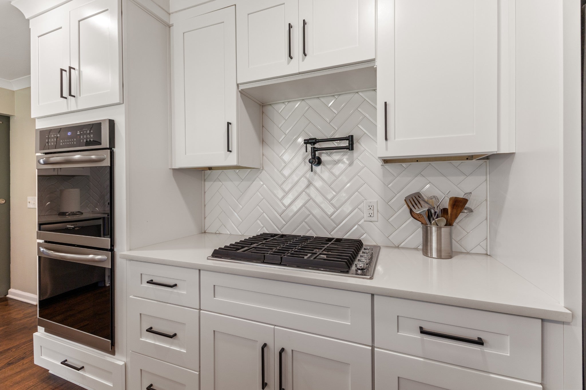 - Double Oven, Cooktop, Dishwasher, Disposal, Microwave
