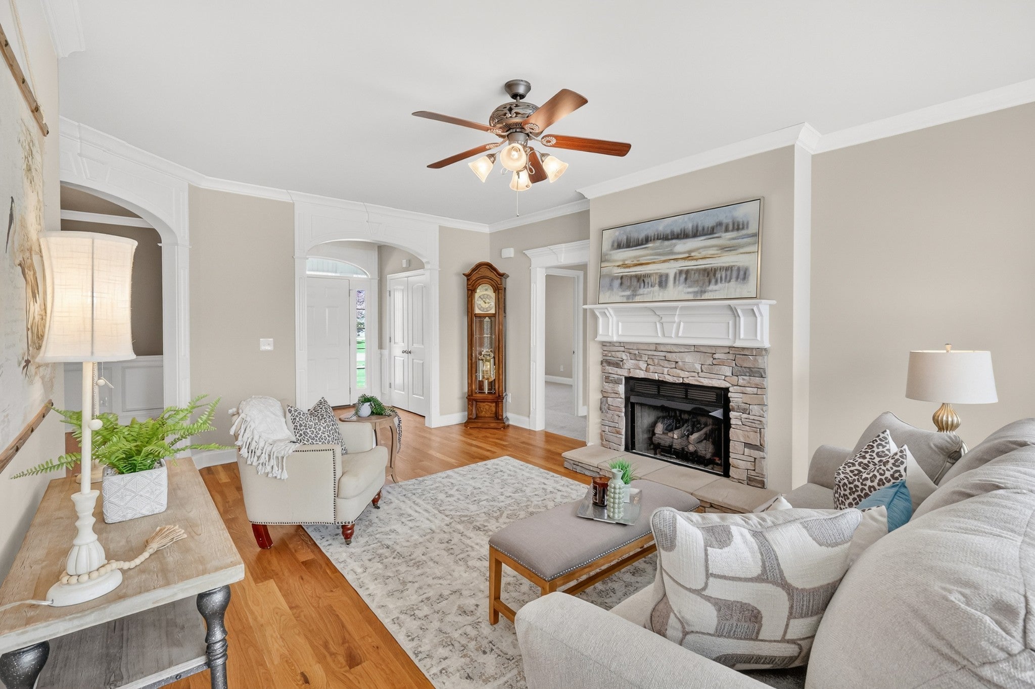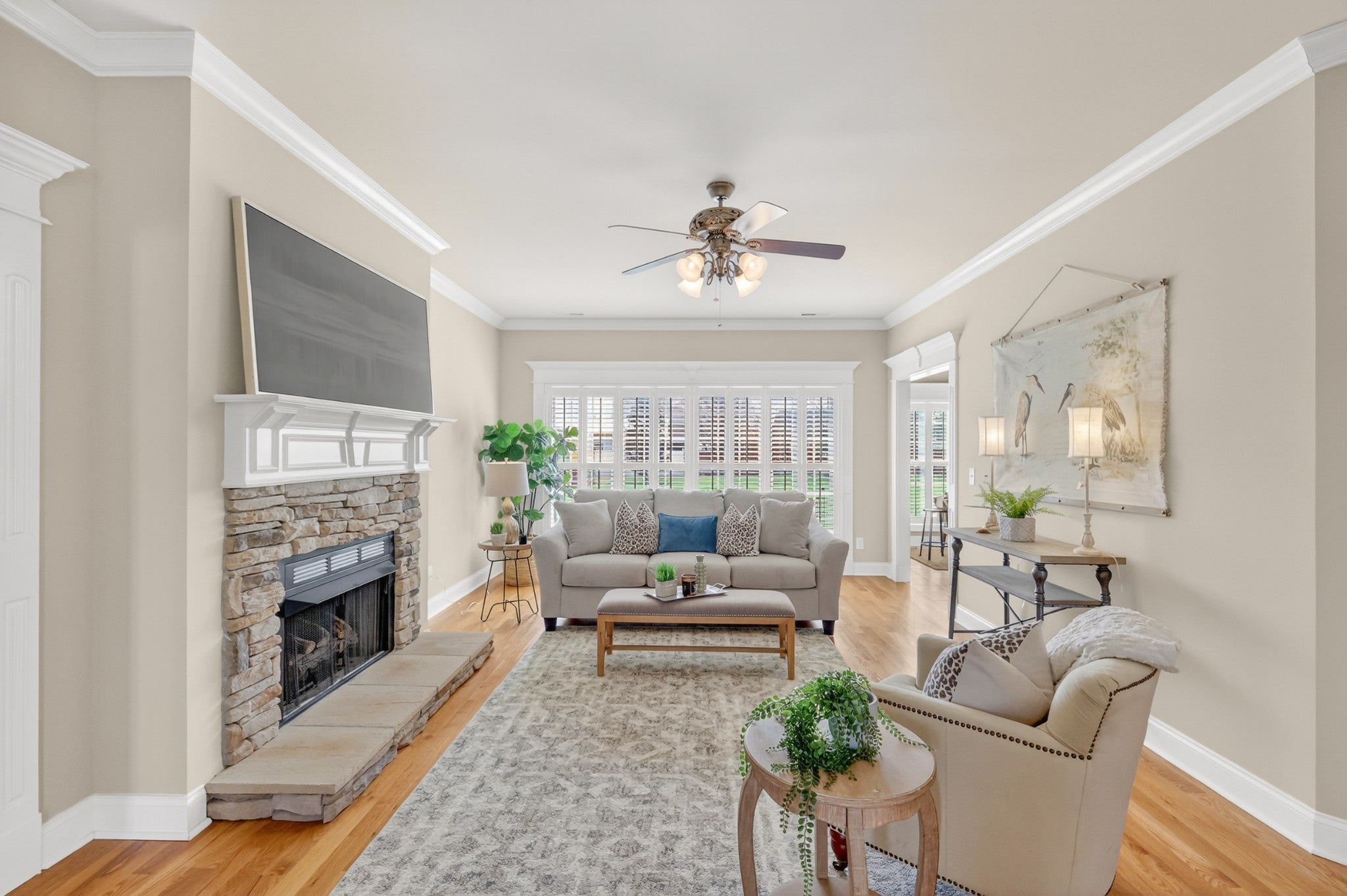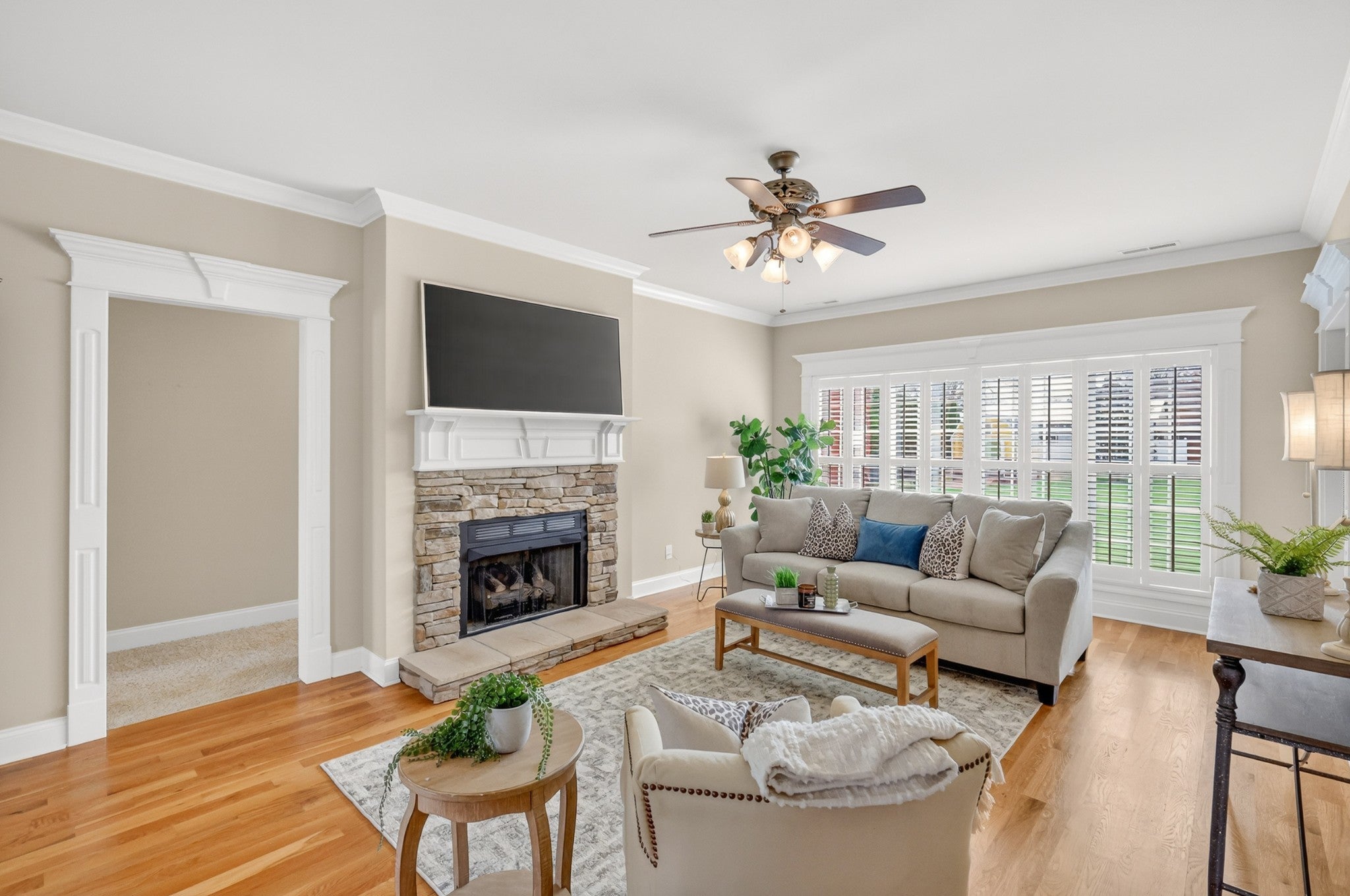This well-maintained home offers the ease of one-level living with the added flexibility of an upstairs bonus room. Thoughtfully designed with a split-bedroom layout, two bedrooms are positioned off the main living area while the primary suite is tucked privately on the opposite side. The inviting living room features a window wall that fills the space with natural light, anchored by a stacked stone fireplace. The kitchen blends style and function with two-toned cabinetry—cream perimeter cabinets paired with a black painted island—along with a hanging pot rack and stainless steel appliances, all of which convey. Extensive trim work, detailed door casings, and plantation shutters throughout add a refined touch, while the bonus room just off the kitchen provides the perfect space for a home office, playroom, or additional living area. Enjoy outdoor living on the charming front porch with swing, and take advantage of the spacious lot complete with mature landscaping, front and back irrigation, and a storage shed. HVAC replaced in August of 2021. Conveniently located just 4 miles from I-24, offering easy access to shopping, dining, and commuting routes. This home has received multiple offers. Seller has requested all offers to be submitted by 6 pm on Monday, March 30th.