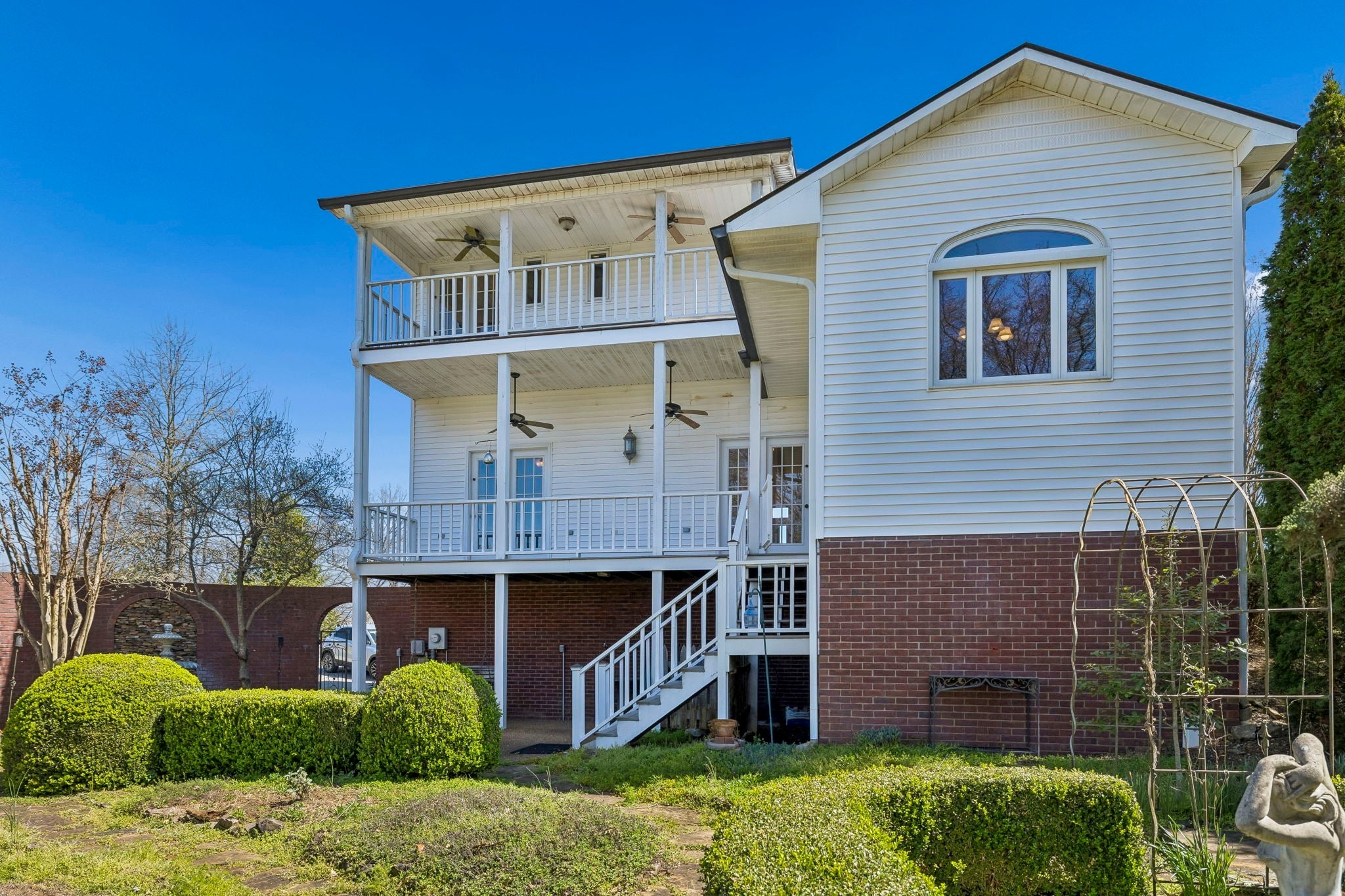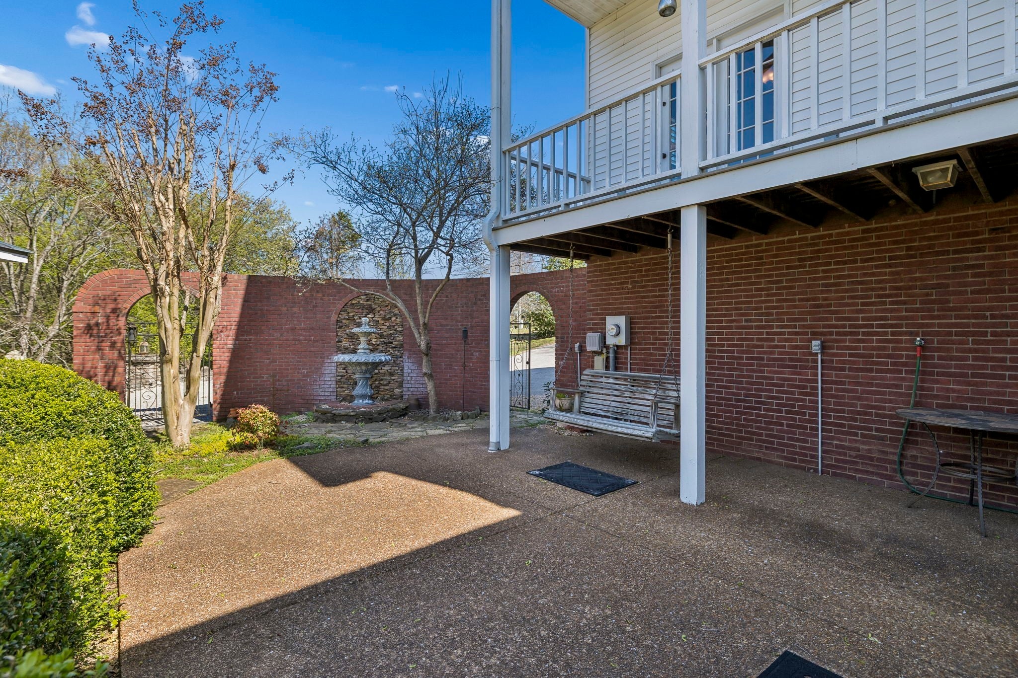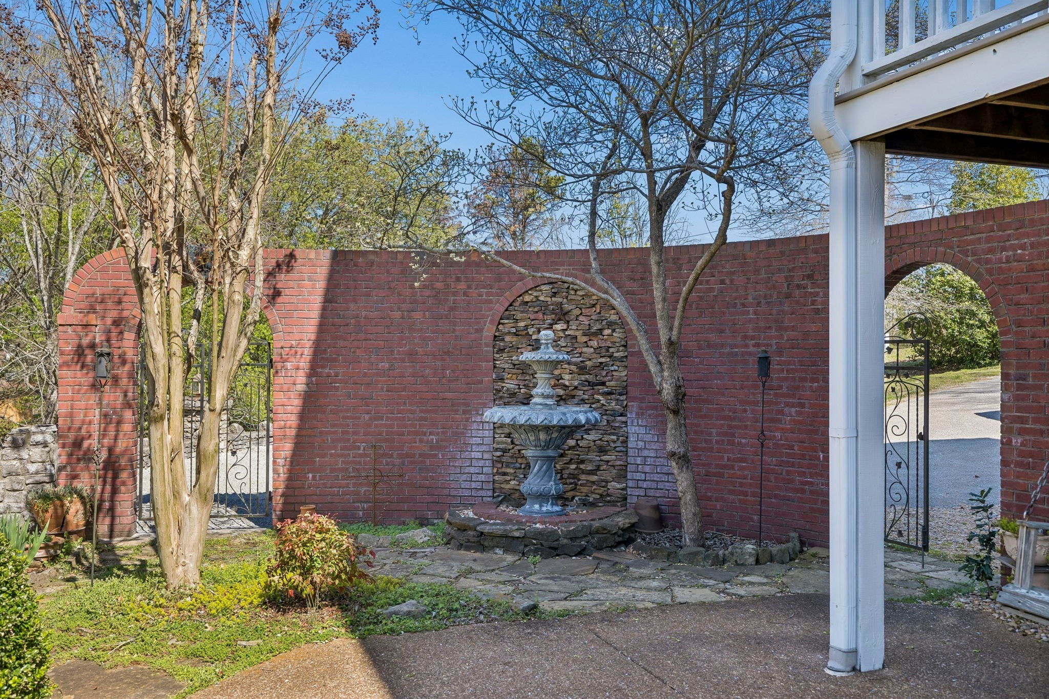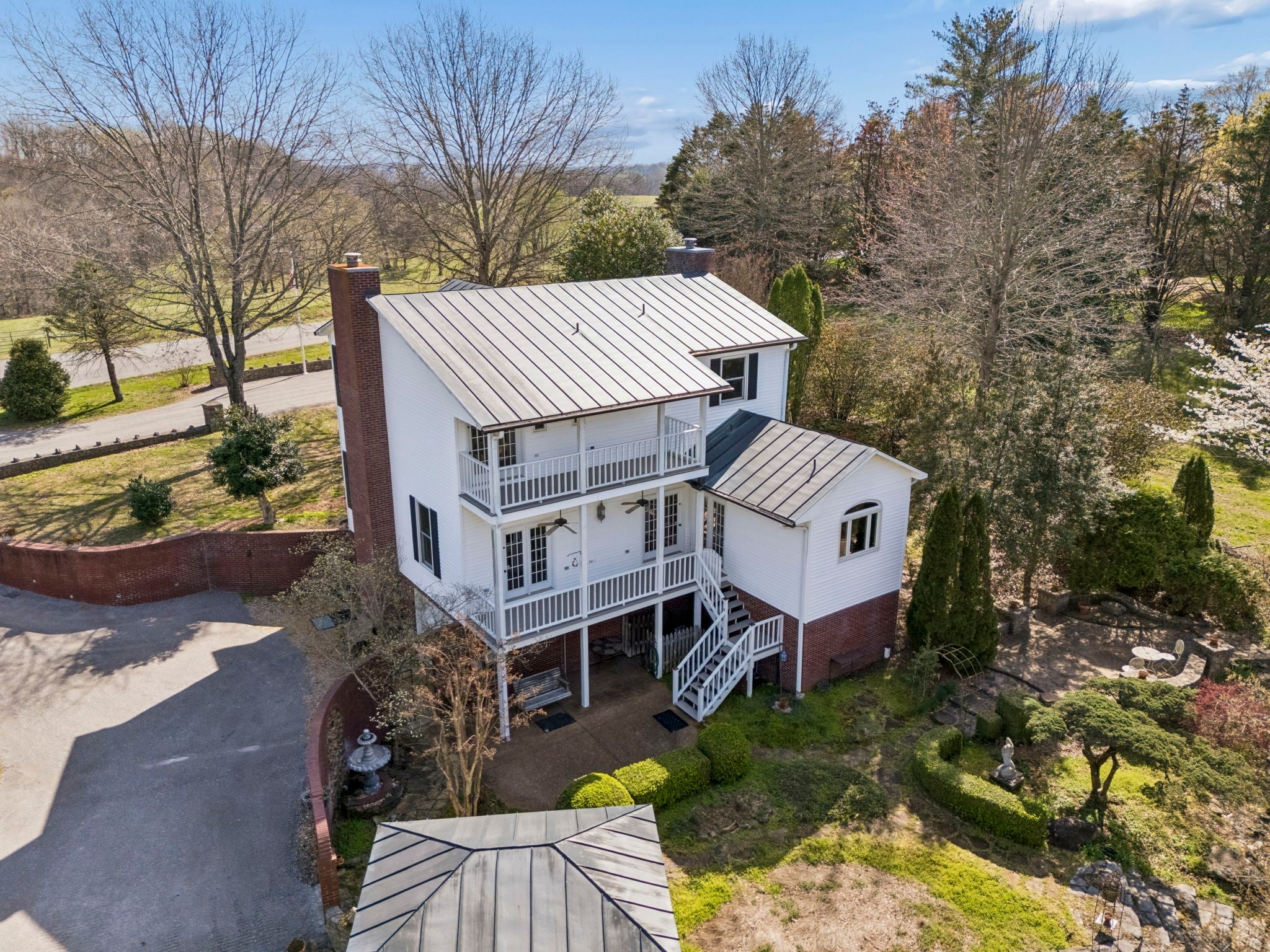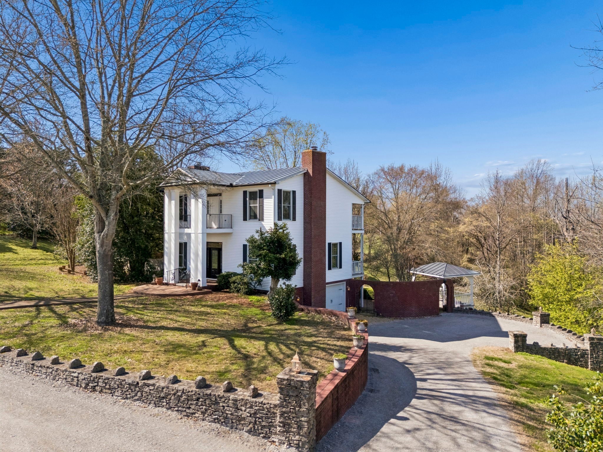 Set on 3.56 private acres bordering the 12,800-acre Yanahli Wildlife Management Area, this custom-built residence offers the rare charm of a country estate—thoughtfully designed in 1992 with inspiration drawn from local historic homes. The result is a striking neoclassical property that captures timeless Southern architecture while delivering modern construction and livability. A Class 4 impact-resistant copper roof, hand-laid and soldered, crowns the home, while wrought iron railings, a private primary balcony, and an expansive veranda accessed by multiple French doors create an elegant and inviting exterior. The grounds are equally impressive, featuring Italianate gardens, mature landscaping, curved brick and stone walls, crab orchard stone walkways, and a stunning two-tiered fountain framed by an iron-gated garden. Inside, 2,208 square feet of living space showcases exceptional craftsmanship, including custom-milled solid oak floors, extensive trim work, plantation shutters, and 10’ ceilings on the main level. The family room features a restored antique tiger-striped oak mantel from historic Columbia, while the office/media room is highlighted by a carved antique mantel and custom stained glass pocket doors. The custom kitchen blends function and artistry with solid maple cabinetry, seeded glass, a hand-built copper range hood, dual farmhouse sink, and high-end appliances including a Kucht gas range and Asko systems. French doors throughout the main living spaces create seamless indoor-outdoor flow to the veranda. The home offers three bedrooms and three full baths, including a primary suite with a private balcony, custom wardrobe system, and spa-like bath with soaking tub and granite finishes. A 1,200 sq ft climate-controlled basement with tandem garage provides additional flexibility, while features like Renewal by Andersen windows, a professional fire alarm system, and upgraded mechanicals ensure peace of mind.