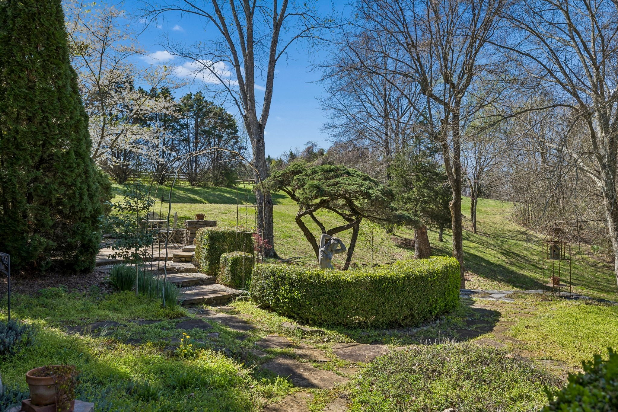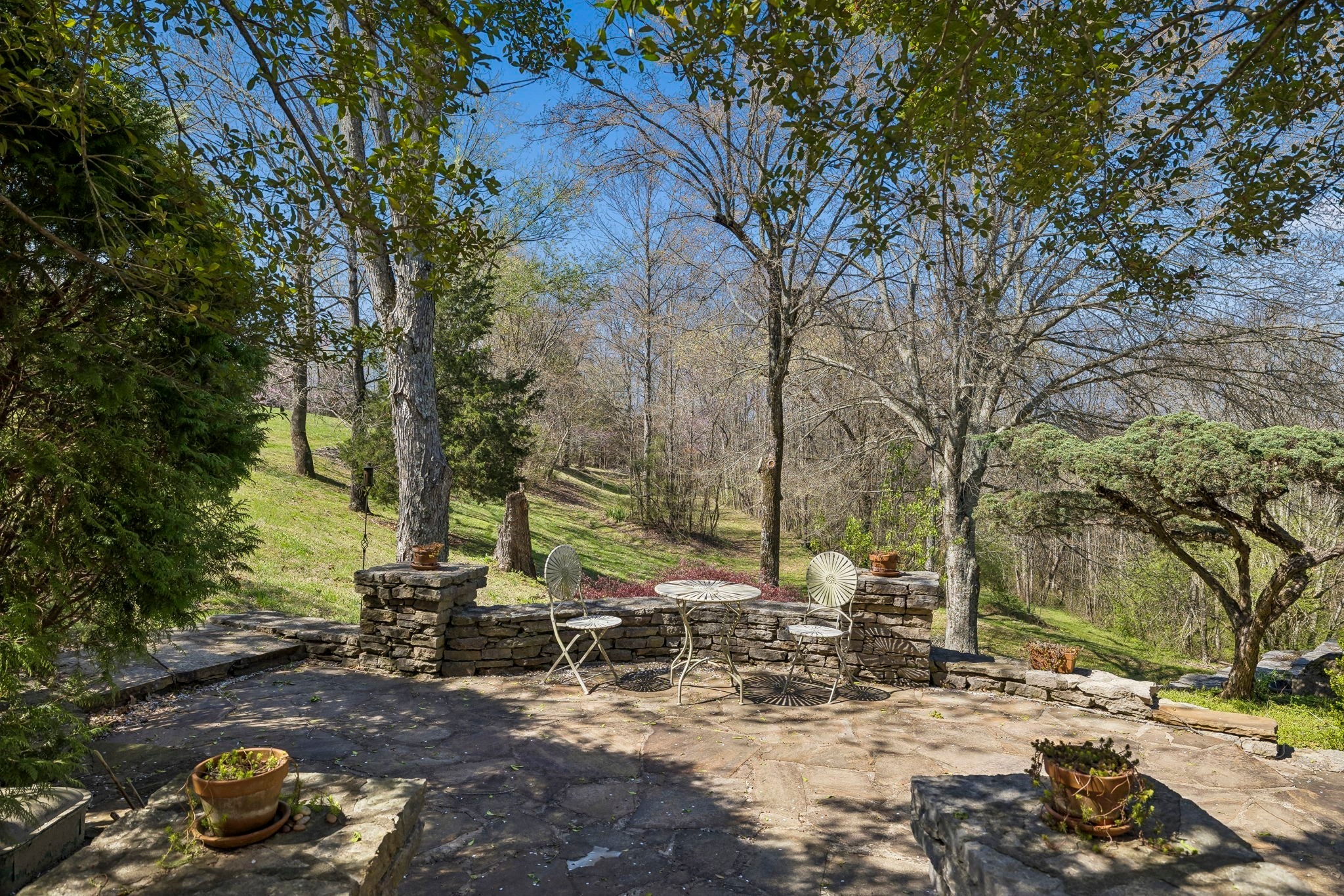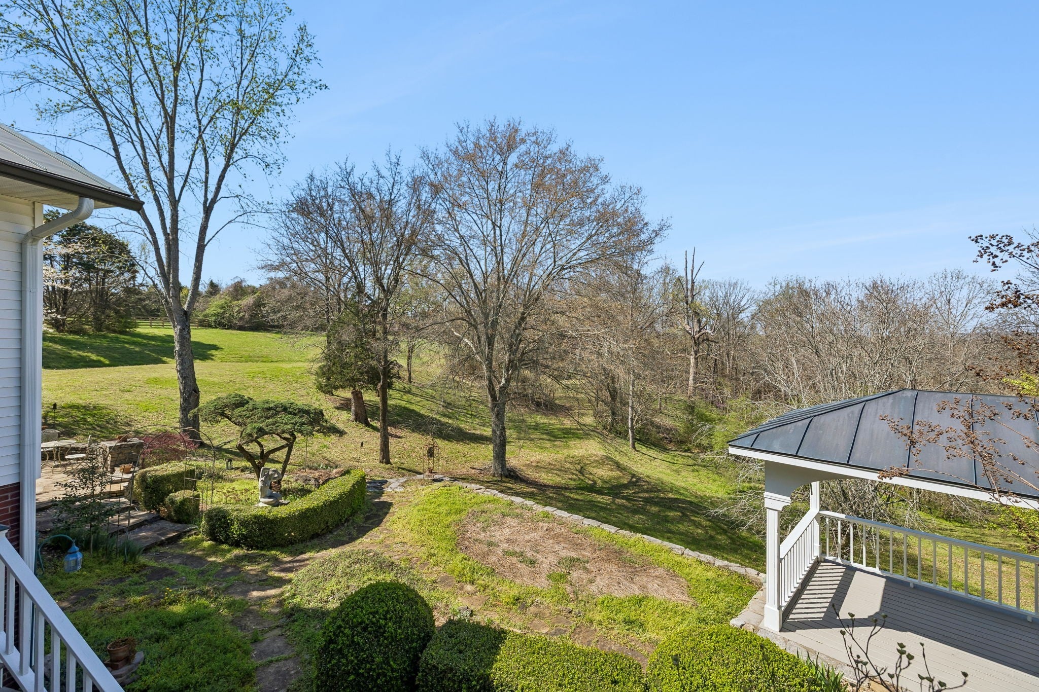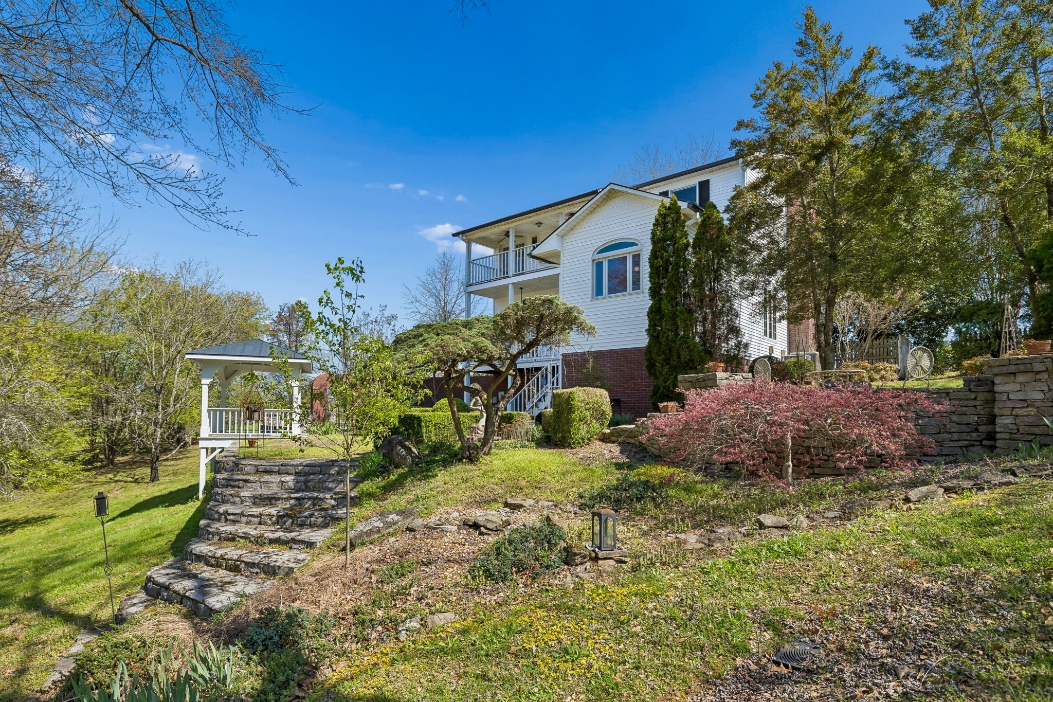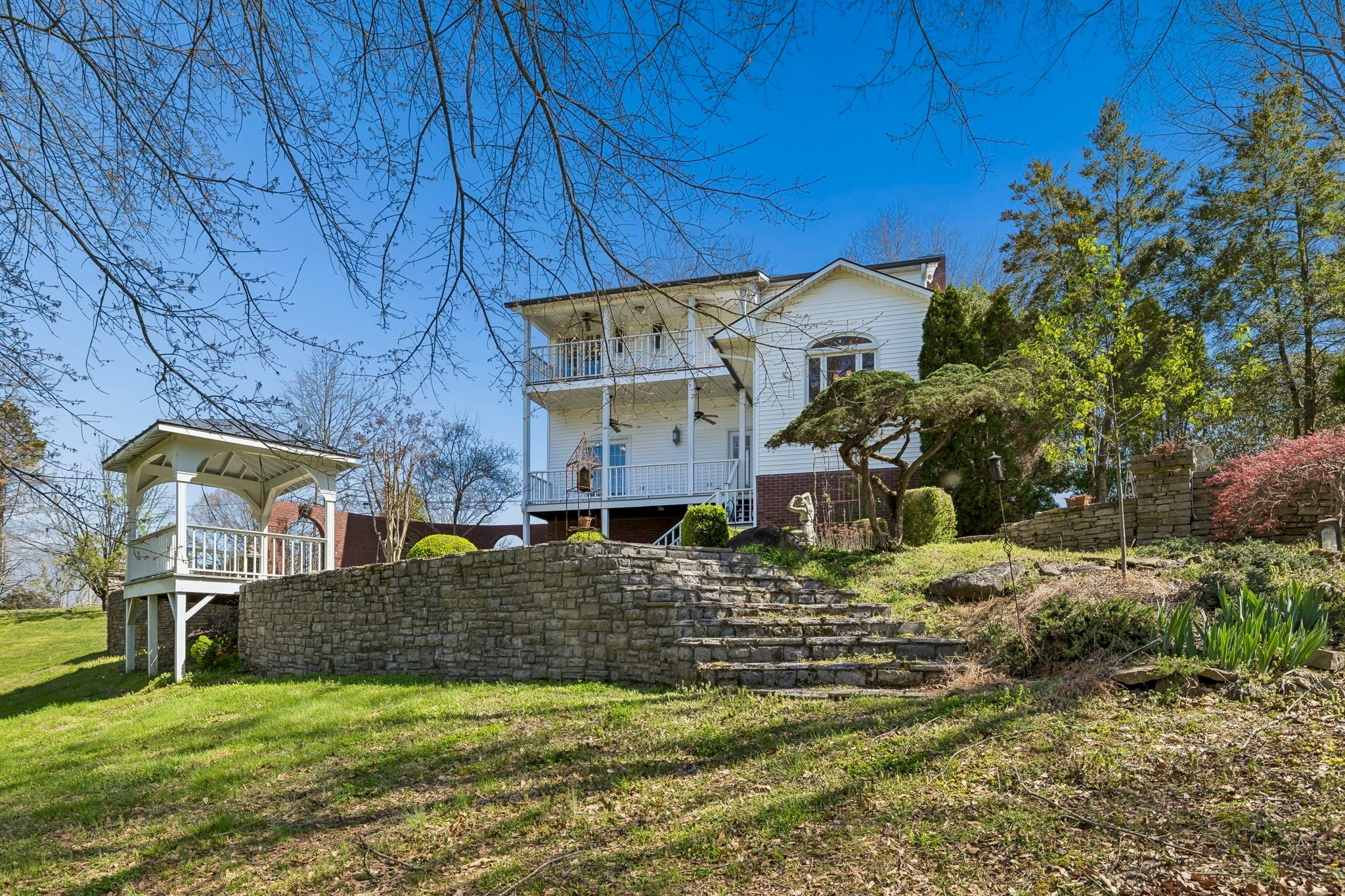 Set on 3.56 private acres bordering the 12,800-acre Yanahli Wildlife Management Area, this custom-built residence offers the rare charm of a country estate—thoughtfully designed in 1992 with inspiration drawn from local historic homes. The result is a striking neoclassical property that captures timeless Southern architecture while delivering modern construction and livability. A Class 4 impact-resistant copper roof, hand-laid and soldered, crowns the home, while wrought iron railings, a private primary balcony, and an expansive veranda accessed by multiple French doors create an elegant and inviting exterior. The grounds are equally impressive, featuring Italianate gardens, mature landscaping, curved brick and stone walls, crab orchard stone walkways, and a stunning two-tiered fountain framed by an iron-gated garden. Inside, 2,208 square feet of living space showcases exceptional craftsmanship, including custom-milled solid oak floors, extensive trim work, plantation shutters, and 10’ ceilings on the main level. The family room features a restored antique tiger-striped oak mantel from historic Columbia, while the office/media room is highlighted by a carved antique mantel and custom stained glass pocket doors. The custom kitchen blends function and artistry with solid maple cabinetry, seeded glass, a hand-built copper range hood, dual farmhouse sink, and high-end appliances including a Kucht gas range and Asko systems. French doors throughout the main living spaces create seamless indoor-outdoor flow to the veranda. The home offers three bedrooms and three full baths, including a primary suite with a private balcony, custom wardrobe system, and spa-like bath with soaking tub and granite finishes. A 1,200 sq ft climate-controlled basement with tandem garage provides additional flexibility, while features like Renewal by Andersen windows, a professional fire alarm system, and upgraded mechanicals ensure peace of mind.