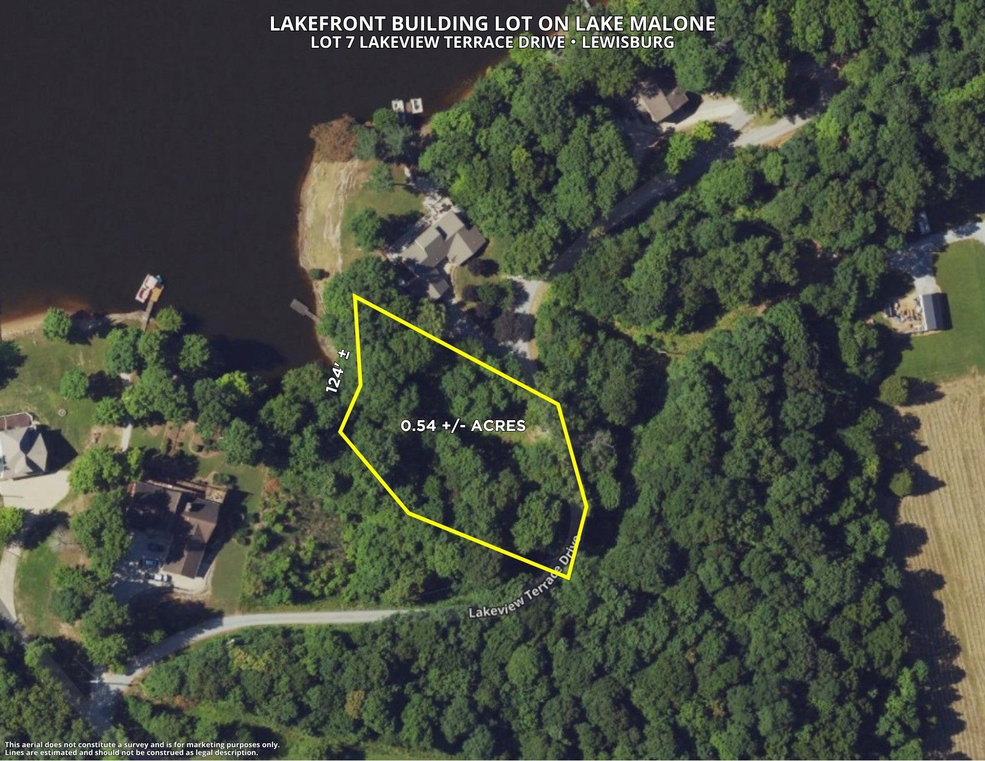 Don't miss this stunning lakefront lot on Lake Malone. This lot sits on a small cove and features a gradual slope to the water with 124 +/- feet of water frontage. Start planning your lakefront getaway today! Lake Malone is a 788 +/- acre Kentucky lake located in Logan, Muhlenberg and Todd Counties. Considered a hidden gem, this lake is one of the most scenic lakes in the state of Kentucky. The lake is accessible year round and features so many amenities including hiking, fishing, water sports and camping. Lake Malone features a state park, hiking trails, coves, Shady Cliff Marina and beautiful views of bluffs and hardwood forests. This area is perfect for a vacation getaway or a permanent lake home!