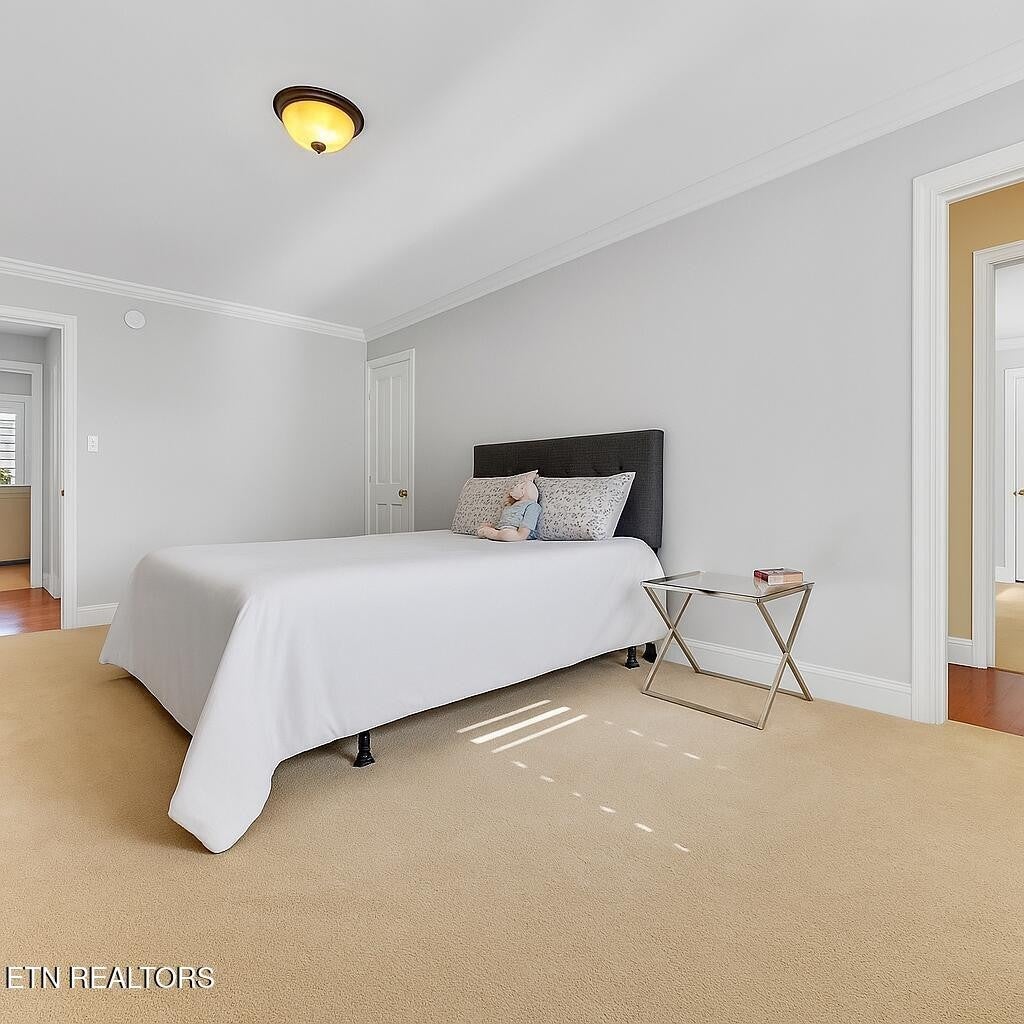 Welcome to 142 Center Park Lane, located in the prestigious Park Mead neighborhood along the scenic Centennial Golf Course. This stately brick home blends timeless elegance with modern comfort, featuring soaring ceilings, crown molding, hardwood floors, and abundant natural light throughout the main level. The open family room with gas fireplace flows to a covered deck overlooking a spacious, private backyard ideal for entertaining, relaxing, or outdoor living. The main level primary suite offers a sitting area and a beautifully appointed bath with soaking tub, walk-in shower, and large closet. The fully finished walk-out basement adds exceptional versatility with a second living area, theater room, office, gym, playroom, and guest bedroom perfect for multigenerational living or entertaining. Upstairs includes five bedrooms, two baths, a bonus room, plus a 382 sq ft third-floor loft for added flexibility. With over $150,000 in updates including a renovated kitchen with new appliances, expanded laundry, wet bar, new roof, and extended deck this home is move-in ready. A three-car garage and widened driveway provide ample parking. Conveniently located minutes from Melton Hill Greenway and just 15 minutes to Hardin Valley, Turkey Creek, and West Knoxville, this home offers refined living with space, privacy, and accessibility.