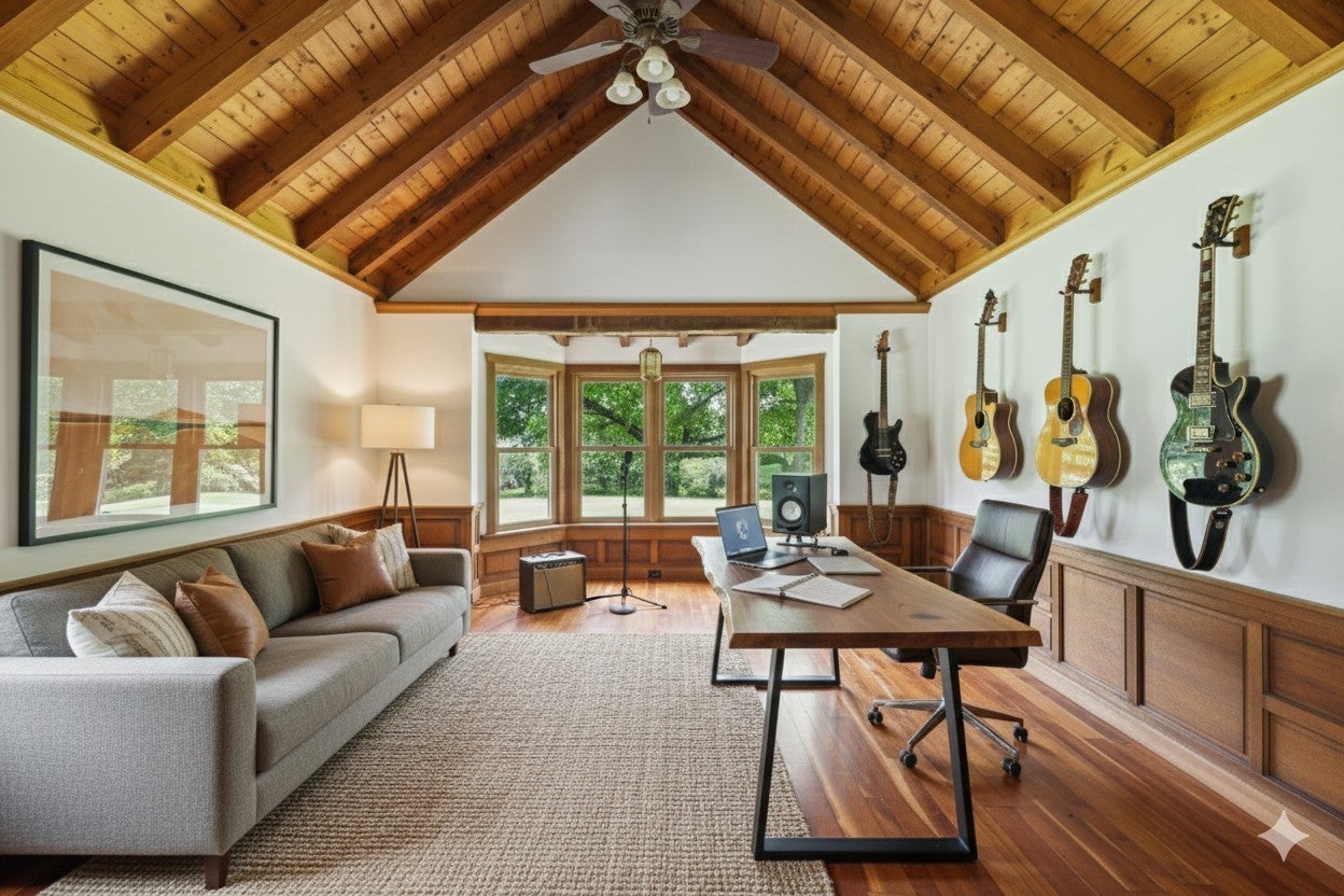 Every home has a story, a history etched into its walls, and this one is no exception. This isn't just a house; it's a stage for memories, a canvas for celebration, creativity, and inspiration. This home has also been a sanctuary for creativity. Its very walls have hummed with the rhythm of music, serving as the backdrop for countless albums and songs written in the home studio. The echoes of legendary artists like Alabama, Bad Company, and Lynyrd Skynyrd, along with the incredible talent of so many more, are forever a part of this home’s soul. The cabins on the property, built with over 200-year-old timbers, stand as a testament to the timeless beauty and history that define this land. And then there's the quiet magic, the moments of peace that remind you you're a part of something bigger. As the seasons change, the landscape transforms into a living theater of nature. Enjoy watching deer gracefully graze at dawn and listen to the rustle of wild turkeys at dusk. The vibrant bird life, a symphony of songs and colors, has been a constant source of wonder. The soft light of very early mornings and the tranquil beauty of a fading sunset, when you can fully appreciate the serene harmony of this natural world. This 11-acre wooded estate features a blend of cleared, grassy land and a magical grove of towering walnut trees. There are four buildings in total, including two charming log cabins and a spacious creativity studio perfect for artists and musicians. Another building is a blank canvas, ready to be transformed to suit your needs. This is a unique opportunity to own a peaceful retreat. This house is ready for its next chapter. It's ready to host new gatherings, inspire new songs, and witness new stories. It's not just a place to live; it's a place to be—a place where life unfolds in the most beautiful and unexpected ways. **THIRD FLOOR SQUARE FOOTAGE represents total of 3 additional buildings**