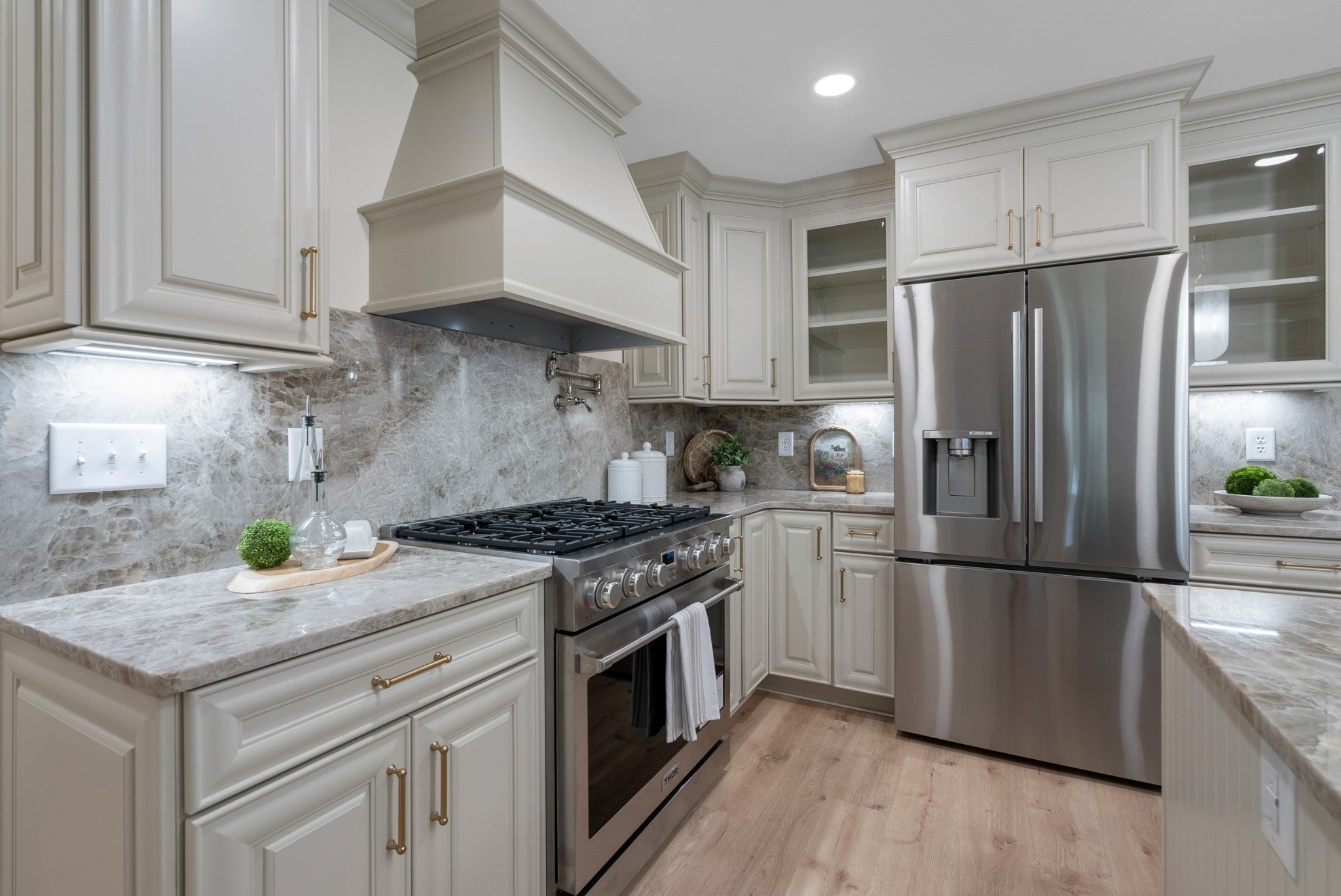 - Gas Oven, Gas Range, Dishwasher, Ice Maker, Microwave, Refrigerator, Stainless Steel Appliance(s)