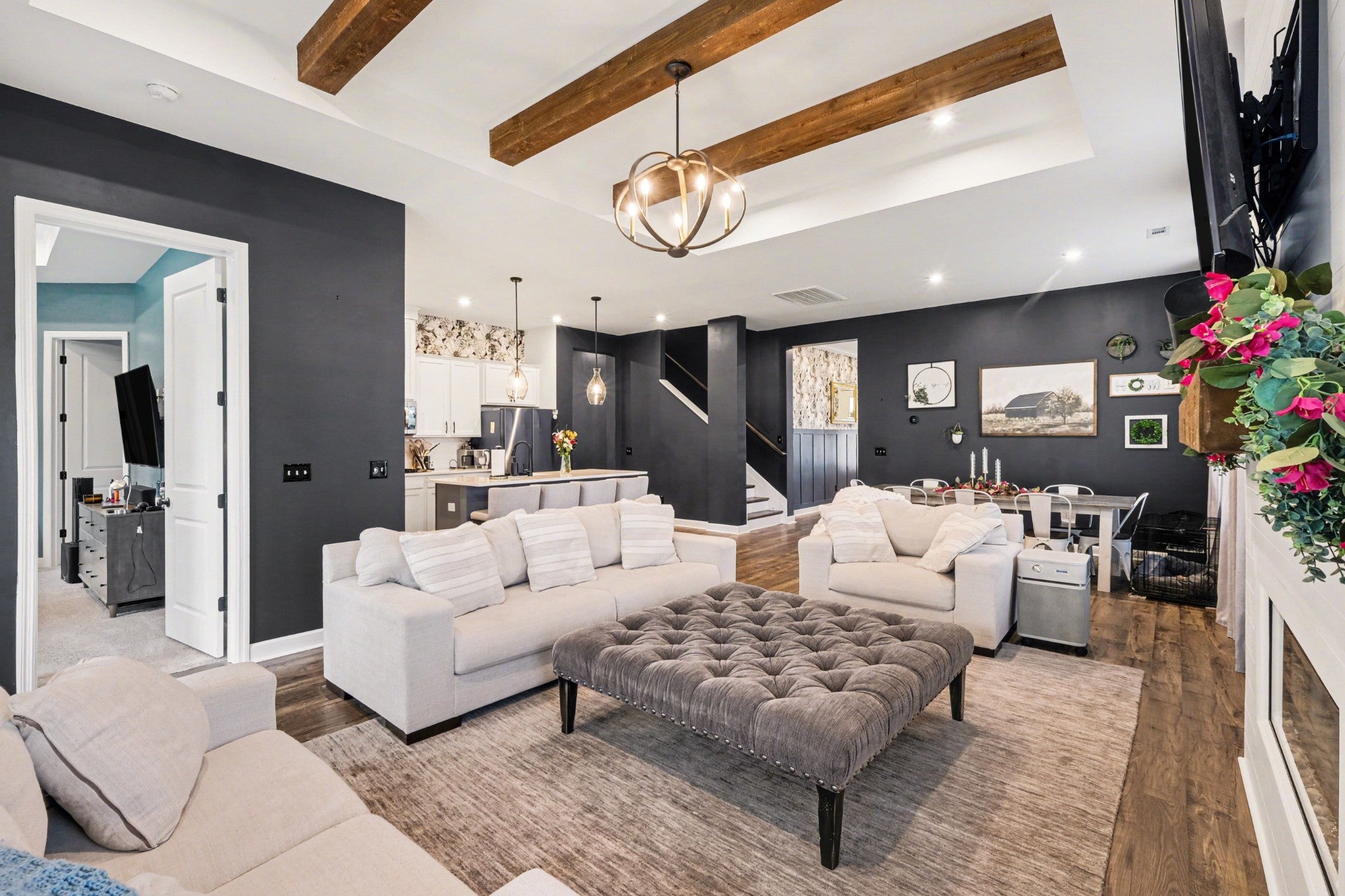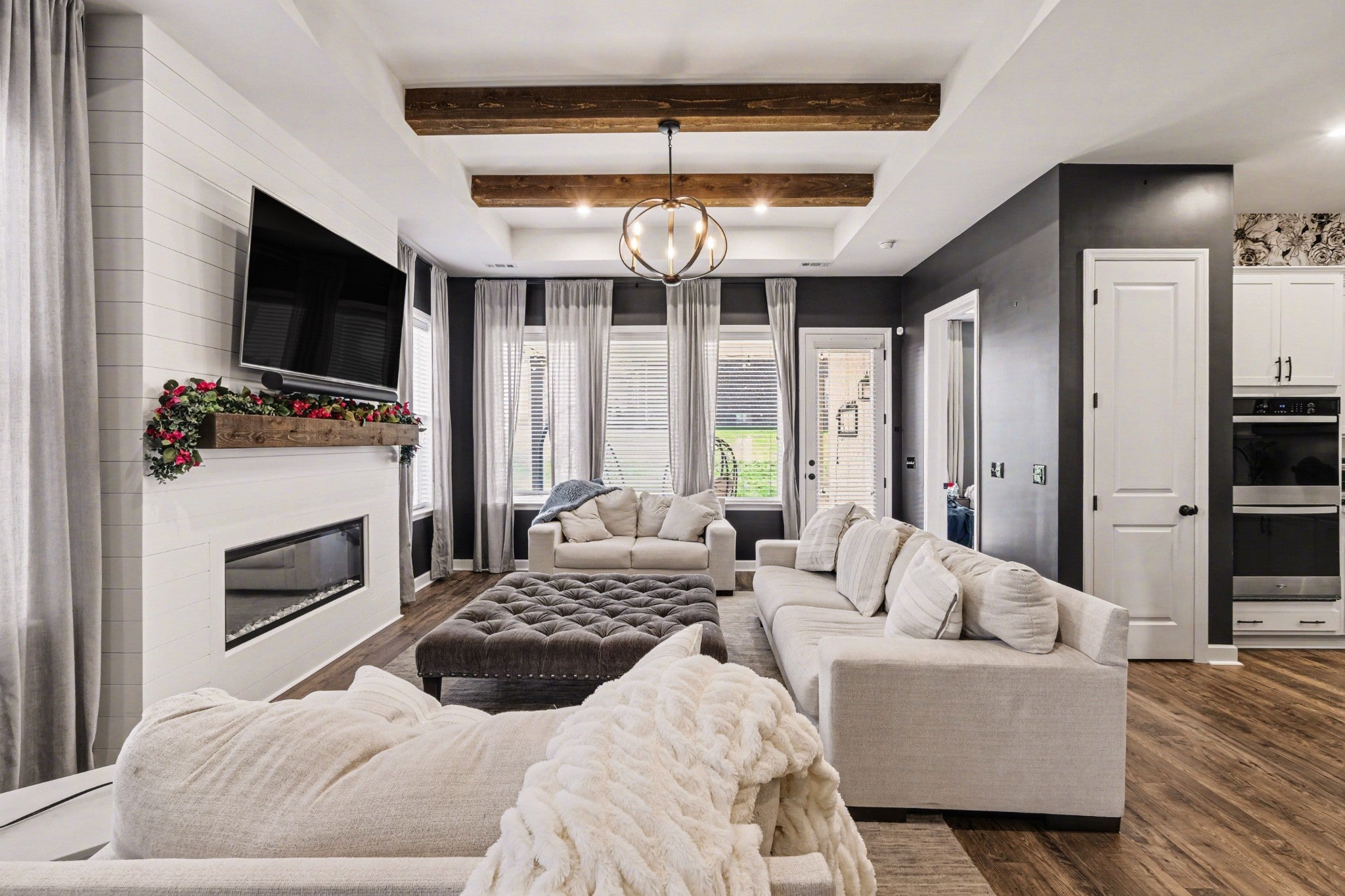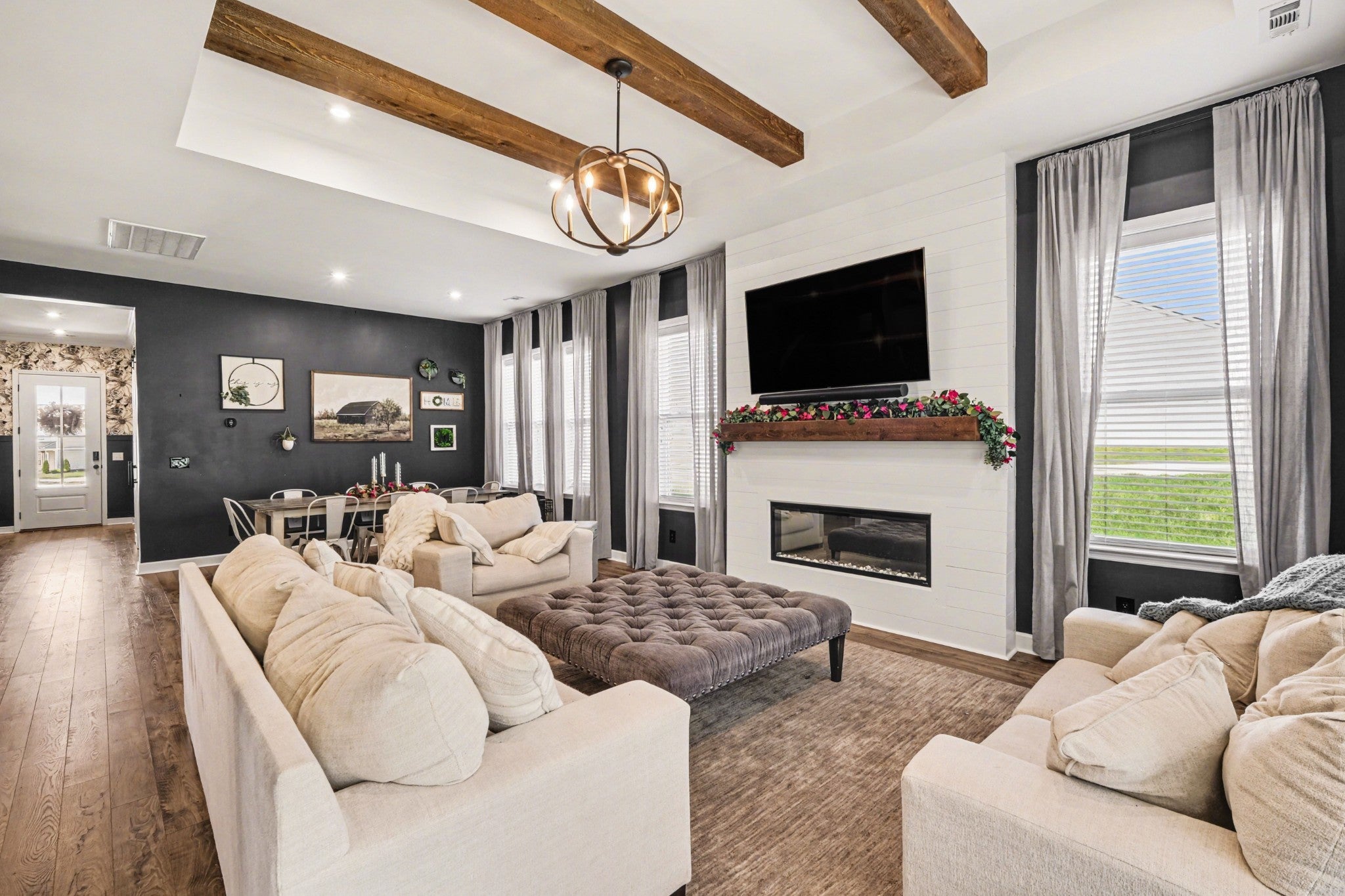 Welcome to modern luxury in Columbia’s sought-after Bear Creek Overlook! Built in 2023, this pristine, energy-efficient new construction home offers 3,521 sq. ft. of thoughtfully designed living space featuring 4 bedrooms and 3 full baths. The main level greets you with an inviting entrance foyer leading to a spacious 16x18 living room that is equipped with built-in sound and anchored by a sleek electric fireplace. The chef-inspired kitchen is a true standout, boasting ENERGY STAR qualified appliances, double ovens, a pantry, and a generous 14x18 layout that flows seamlessly into the dining area. Rare and highly functional, the primary suite and a second bedroom are both located on the main floor, providing maximum convenience. Upstairs, you'll find two additional bedrooms—each with spacious walk-in closet, a bonus room and media room complete with surround sound! This smart home is equipped with professional air-sealed ducts, high-efficiency HVAC and smart lighting. The alarm, lighting, thermostats and audio are able to be controlled with your smartphone! Step outside to your covered patio that is already prewired for sound and an outdoor television.While outside, you can take advantage of the nice level lot or the premium community amenities, including a clubhouse, pool, playground, and park. With brick and fiber cement siding, a 2-car front-entry garage, and a location that blends quiet suburban life with easy access to everything, this home is move-in ready.