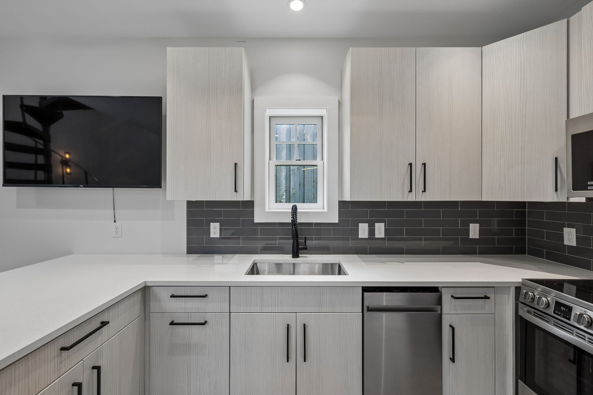- Double Oven, Cooktop, Electric Range, Dryer, Microwave, Refrigerator, Washer